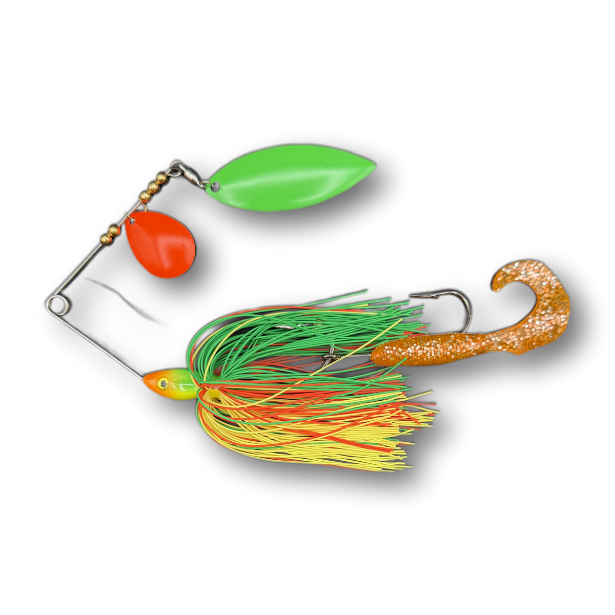 AceBaits Small Ace Tandem Spinnerbait – Guide's Choice Pro ShopConquer the musky game with the AceBaits Small Ace Tandem Spinnerbait, a compact powerhouse designed for aggressive strikes! Handcrafted in the USA, this 7" long, 1.5 oz lure is perfect for precision fishing in heavy cover or weed beds. Its single hook and trailer hook combo glides effortlessly through vegetation, ensuring you target elusive muskies with ease. The lively rubber skirt and twister tail teaser deliver dynamic movement, while the Colorado/Willow blade tandem creates intense vibration and flash to provoke explosive hits.