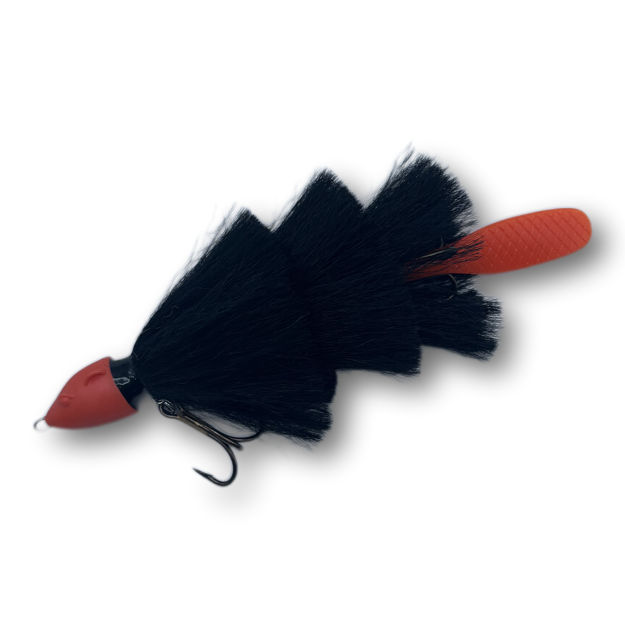 The Beaver is a truly revolutionary bait that can be used as a swimbait, jerkbait, or you can burn it in. It is tough to work it the wrong way! It has the lifelike appearance of a fly combined with the toughness of a conventional bait. This is a bait that every musky angler needs to have in their arsenal! Built on hard plastic as a base with synthetic fibers and flash tied on to give it moment and action that no other bait can replicate.