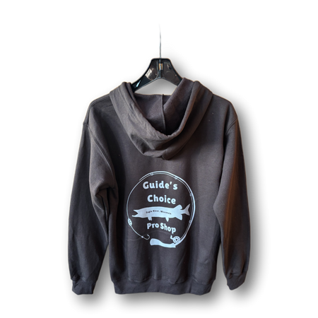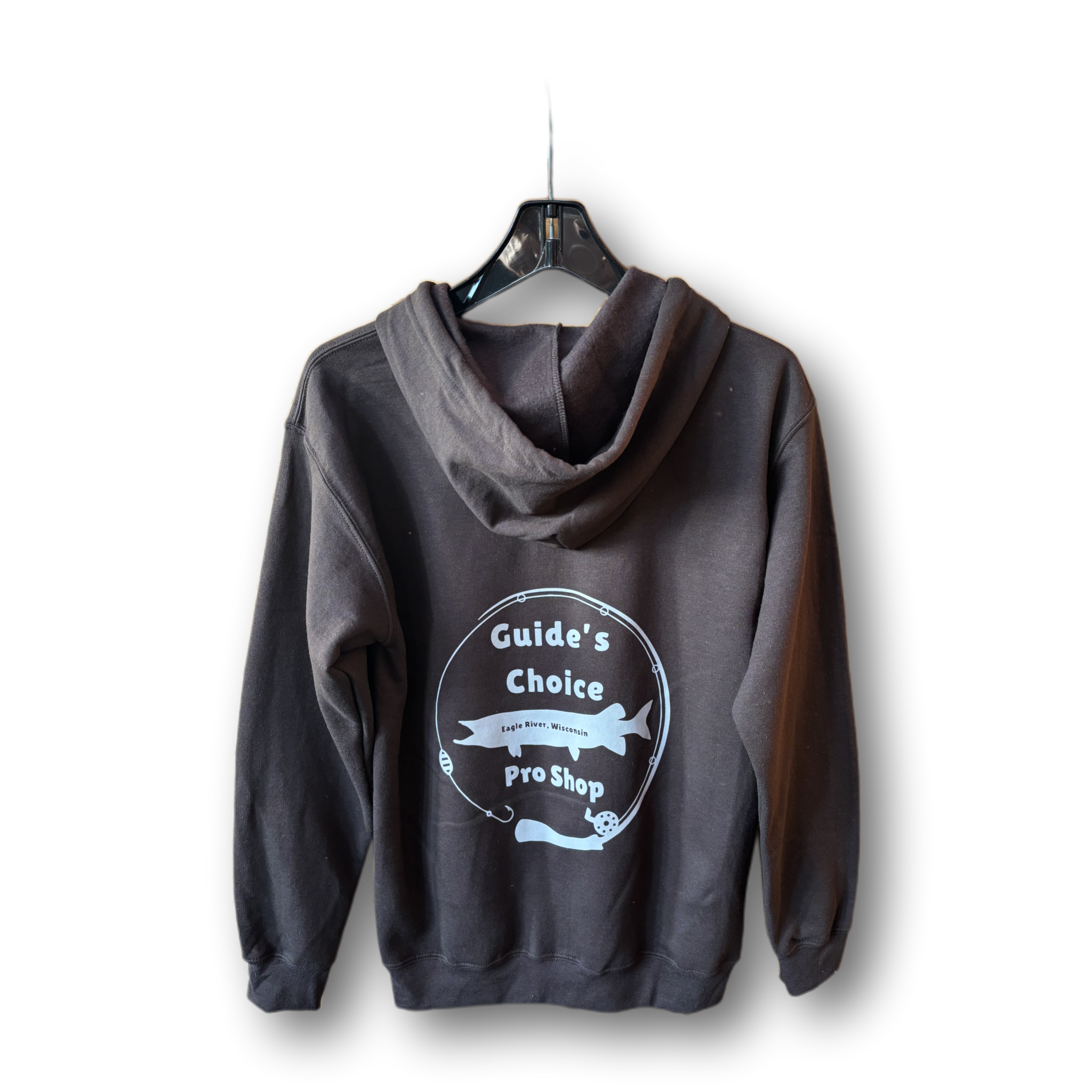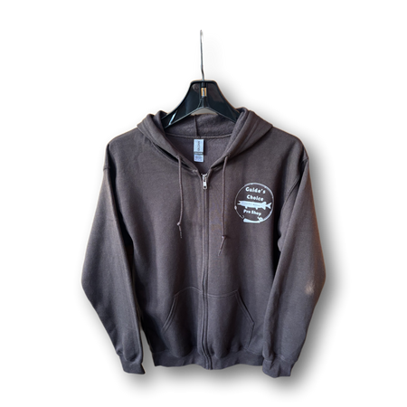 Gildan brand full-zip hoodie with Guide's Choice Pro Shop logo on front and back.