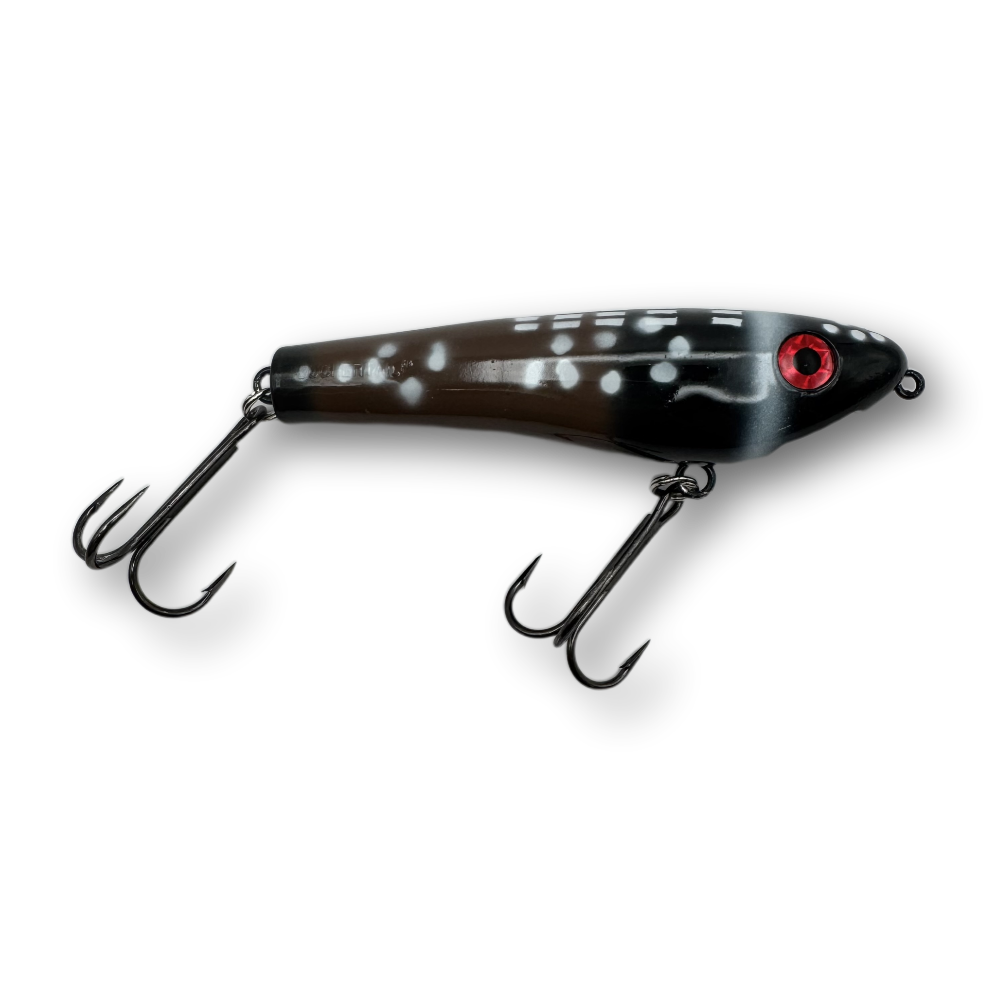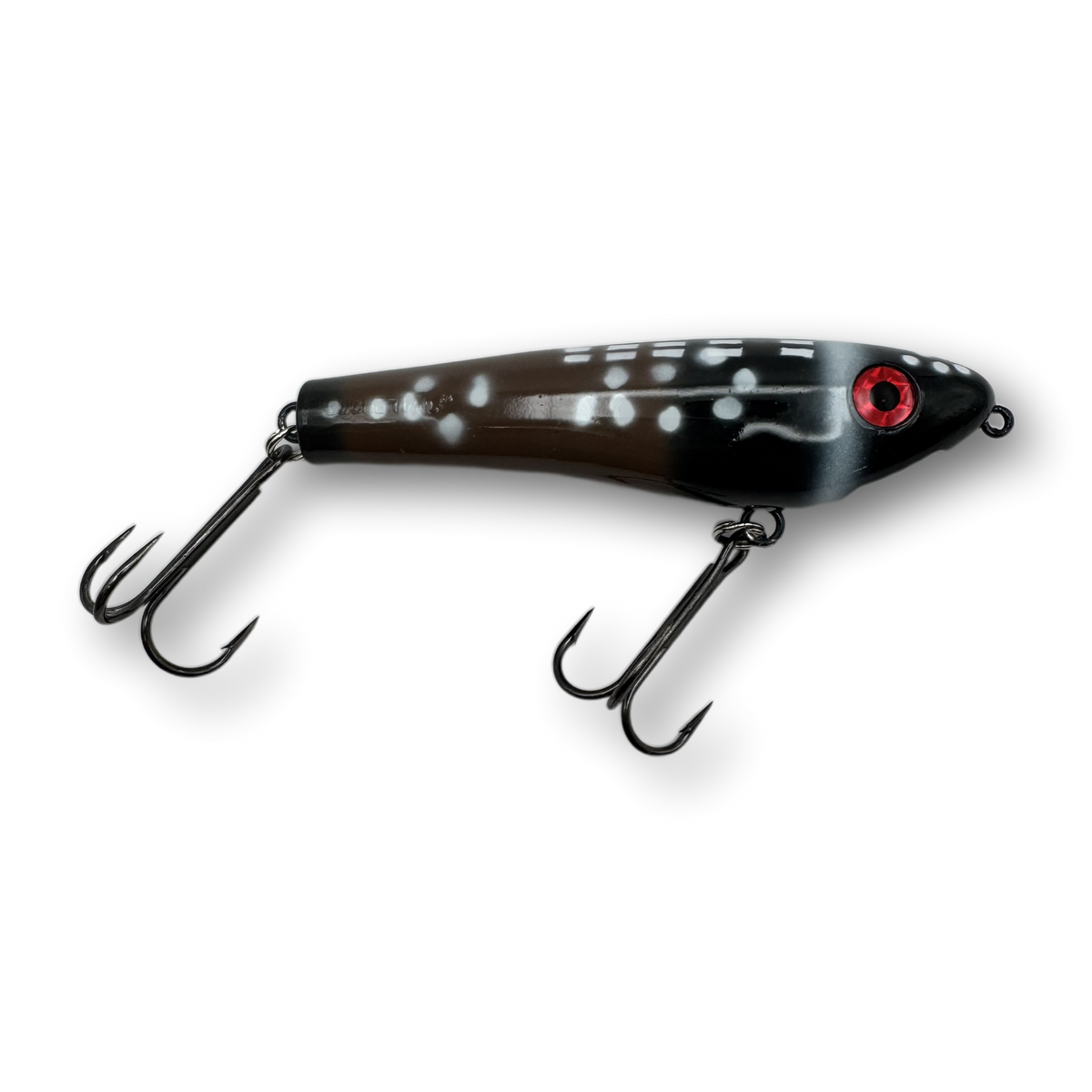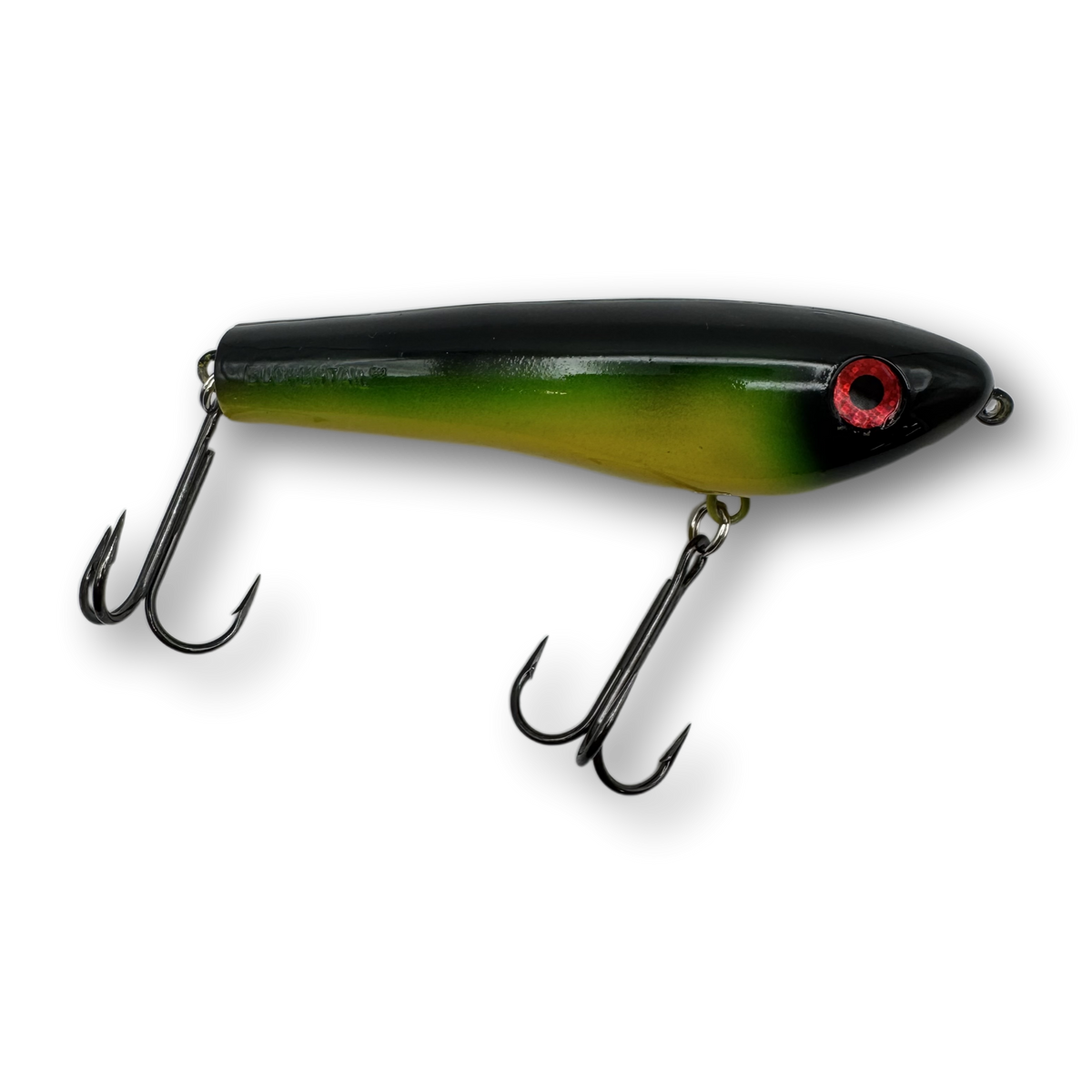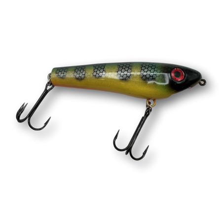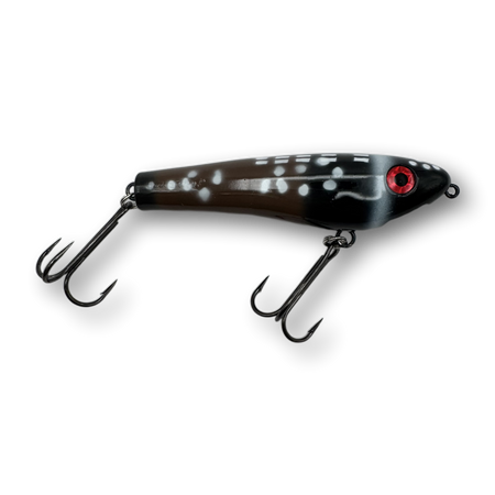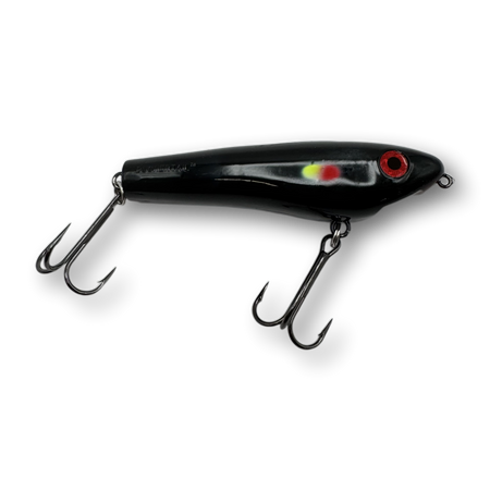 The Dancin’ Raider is a uniquely designed topwater lure that has a pronounced zig-zag action commonly referred to as “walkin’ the dog”. When worked properly this lure will zig-zag back and forth at both fast or slow speeds enabling you to trigger fish in a wide range of water temperatures and weather conditions. Unlike most larger zig-zag style topwater lures, the Dancin' Raider does not require a hard pull from a stiff action rod in order to initiate a pronounced zig-zag action. Instead, nearly any all-purpose musky style rod will do the job and the lure works amazingly well with nothing more than a short downward wrist flick rod manipulation.