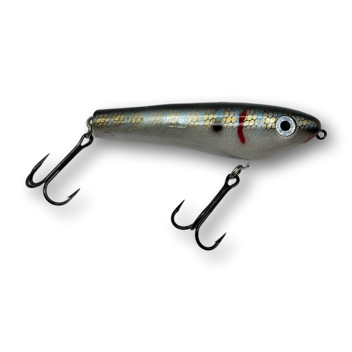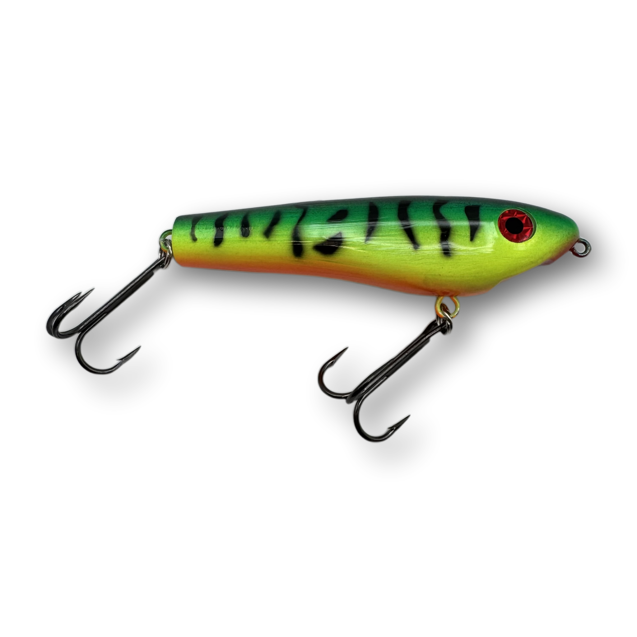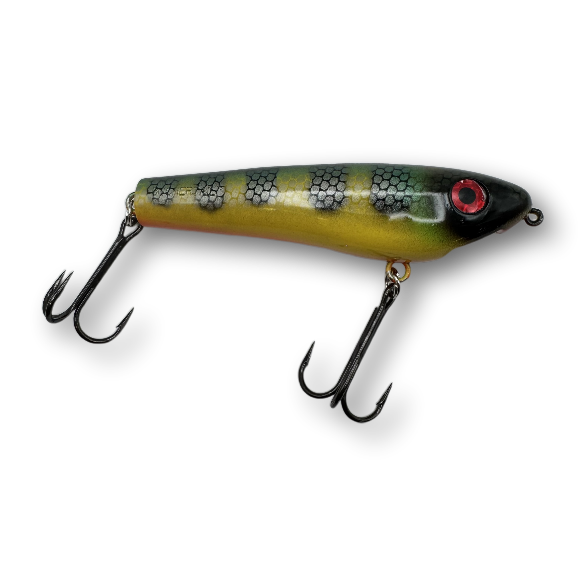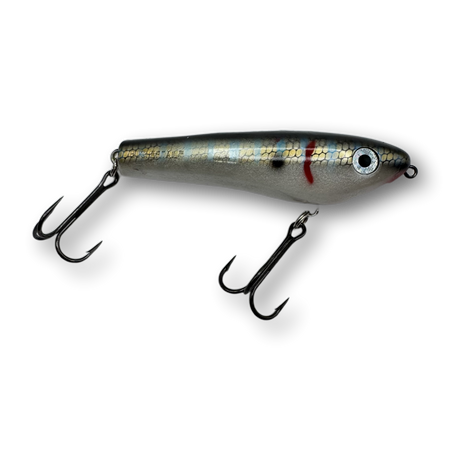 The Dancin’ Raider is a uniquely designed topwater lure that has a pronounced zig-zag action commonly referred to as “walkin’ the dog”. When worked properly this lure will zig-zag back and forth at both fast or slow speeds enabling you to trigger fish in a wide range of water temperatures and weather conditions. Unlike most larger zig-zag style topwater lures, the Dancin' Raider does not require a hard pull from a stiff action rod in order to initiate a pronounced zig-zag action. Instead, nearly any all-purpose musky style rod will do the job and the lure works amazingly well with nothing more than a short downward wrist flick rod manipulation.