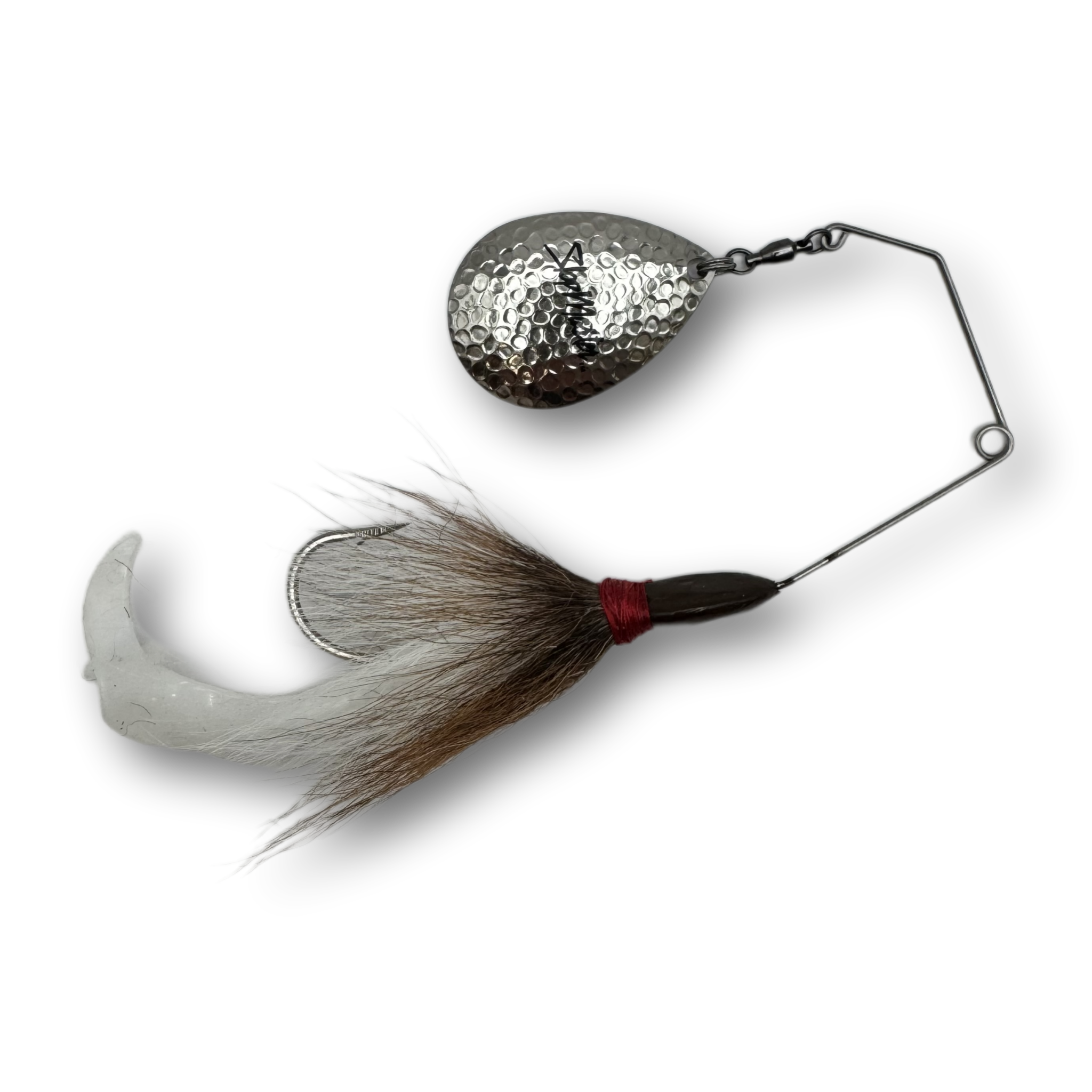 Designed to lure muskies and big pike out of heavy weed cover. The unique design of the hydroplaning head allows the fisherman to fish the thick heavy slop without getting hung up.