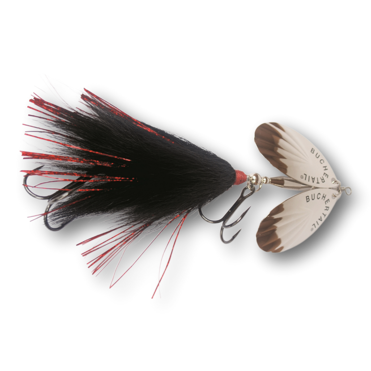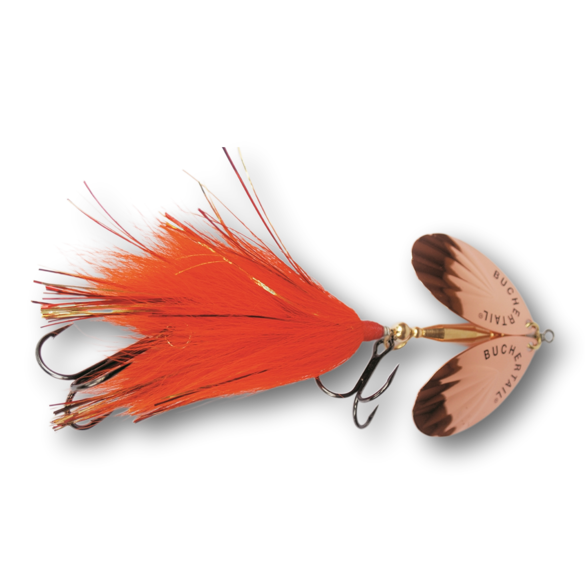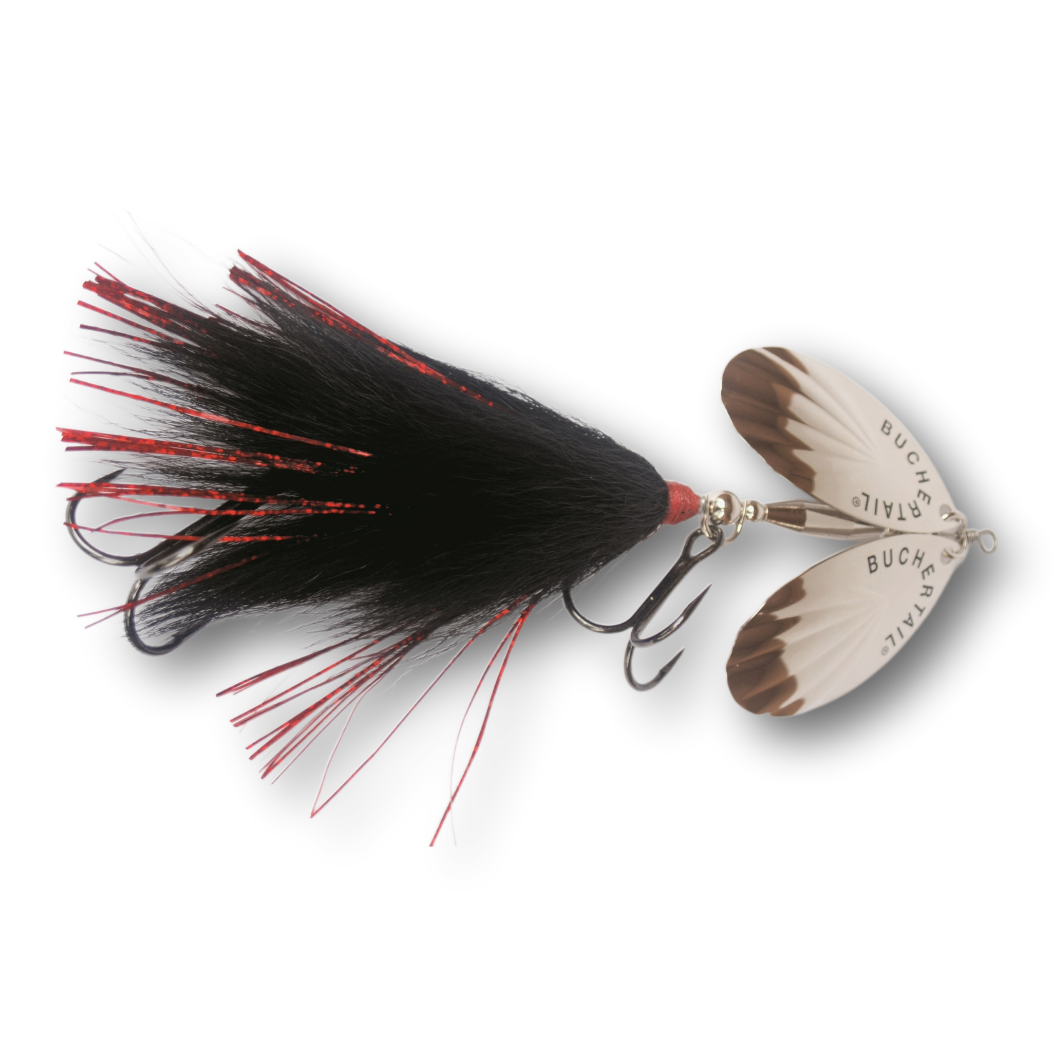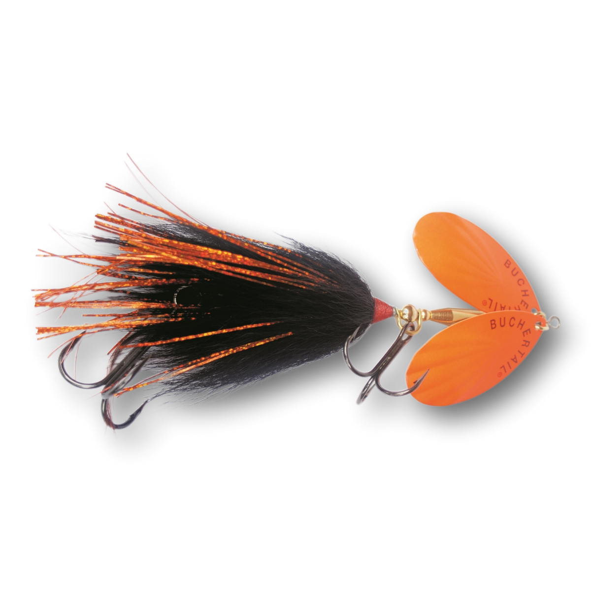 Joe Bucher successfully hybridized the original Buchertail 700 by blending the flash of tinsel Flashabou to natural bucktail – creating the TinBuck. In fact, the TinBuck has now become the go-to lure of many professional guides. This successful hybridization created a demand for a larger version sporting twin blades for those situations where muskies and other large gamefish seem to prefer a larger lure profile. Thus, the creation of the new TinBuck 2.