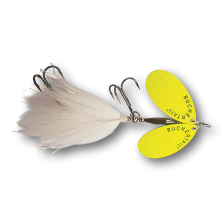 A new 8 ½” long twin treble, twin #8 fluted blade version of the TinBuck sporting both natural bucktail and Flashabou. Initial field tests proved this could be Joe’s best in-line spinner design to-date! In fact, it was the #1 TV segment producer for Fishing With Joe Bucher this past season. You definitely wanna stock up on these!
