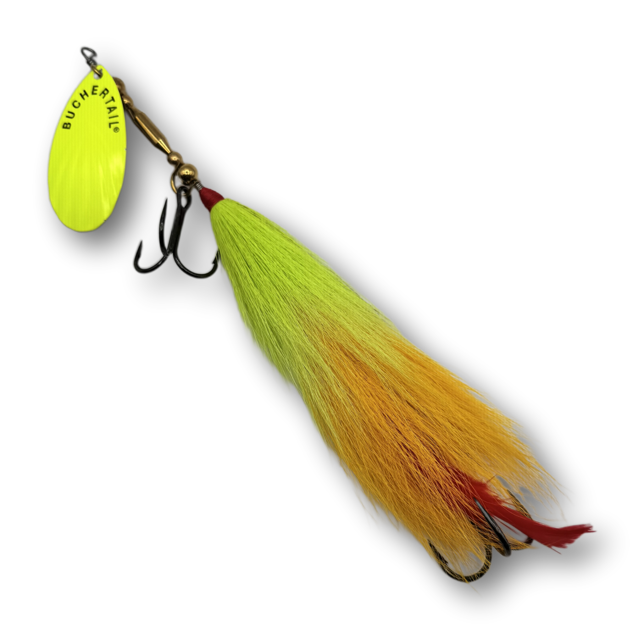 Bucher’s Magnum Buchertail has a 2 treble hook design with a #8 blade for added vibration. This is a big fish bait that anglers must have in their collection.