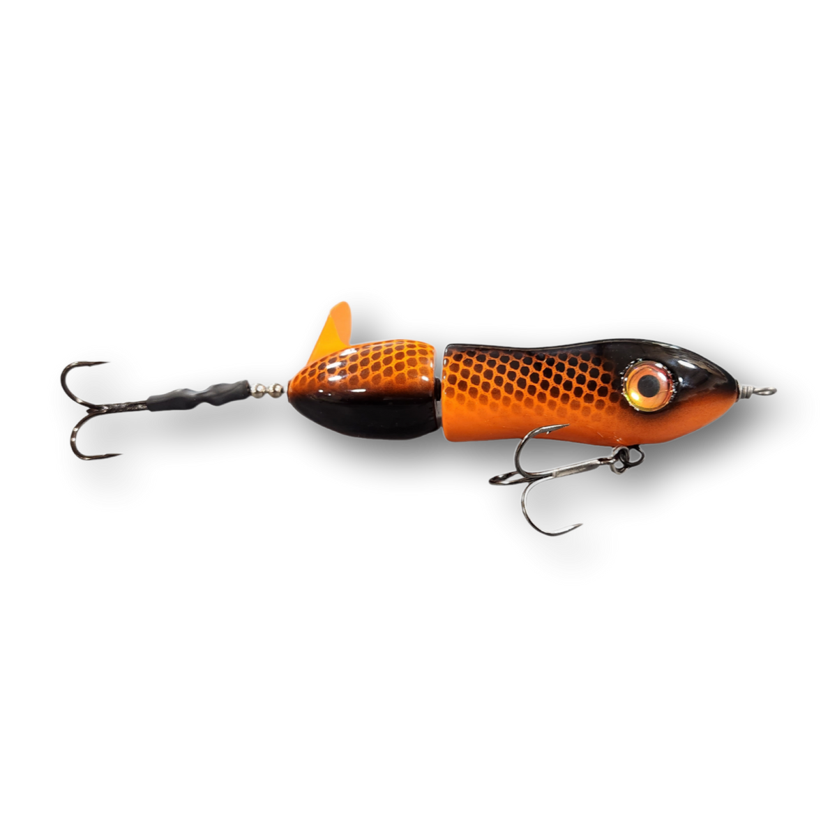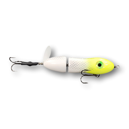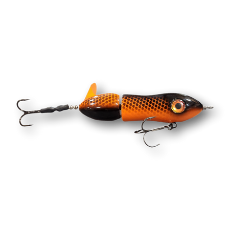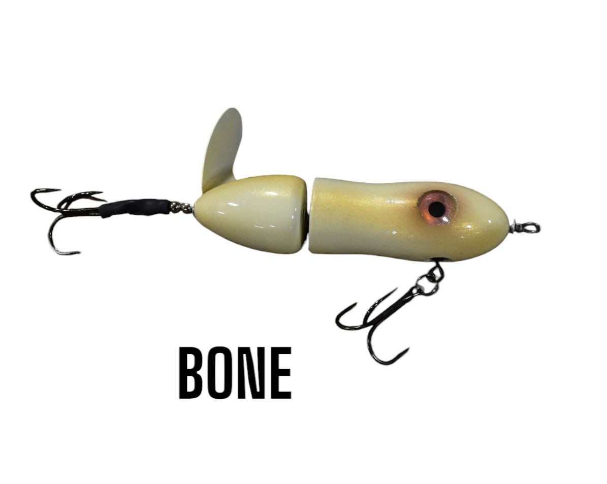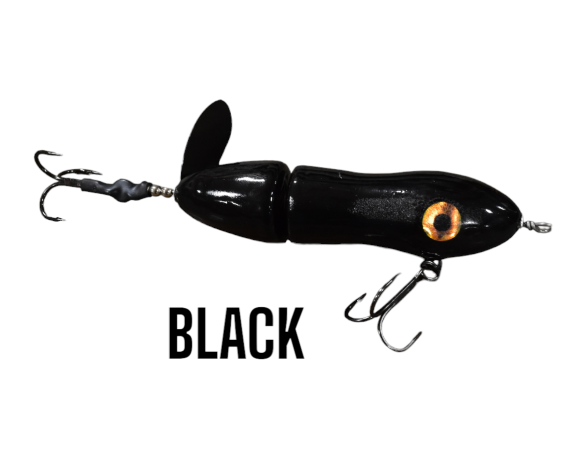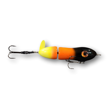 The Lit'tl Sis'tr with it's distinctive slow rotation with deep plops has been a consistent producing tail bait since day one. The Lit'tl Sis'tr is the smallest of the Sis'trs. She is quickly getting the reputation as a big fish lure. Hand made out of cedar you will find a thru wire construction, a swiveled front hook and a stainless steel blade that you can tune and stays tuned. The back hook is shrink tubed to hold it in the perfect hooking position. Twis'td Sis'tr comes standard with a 4/0 Premium Black Trident Treble Hook on the front and a 3/0 on the back.