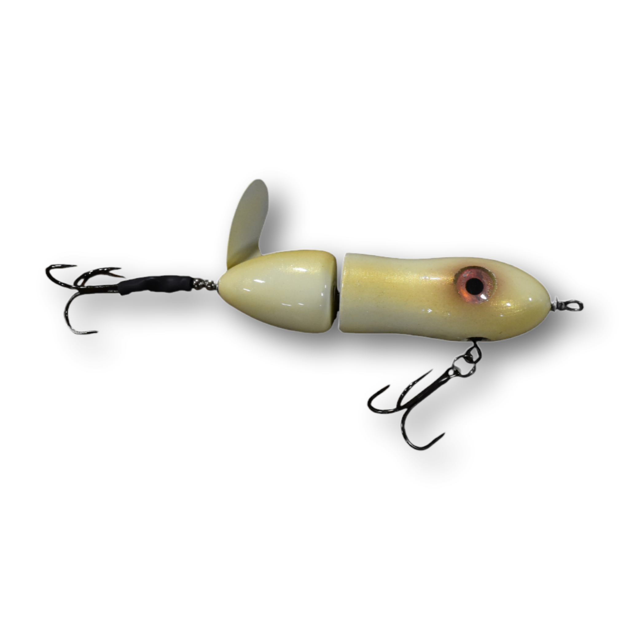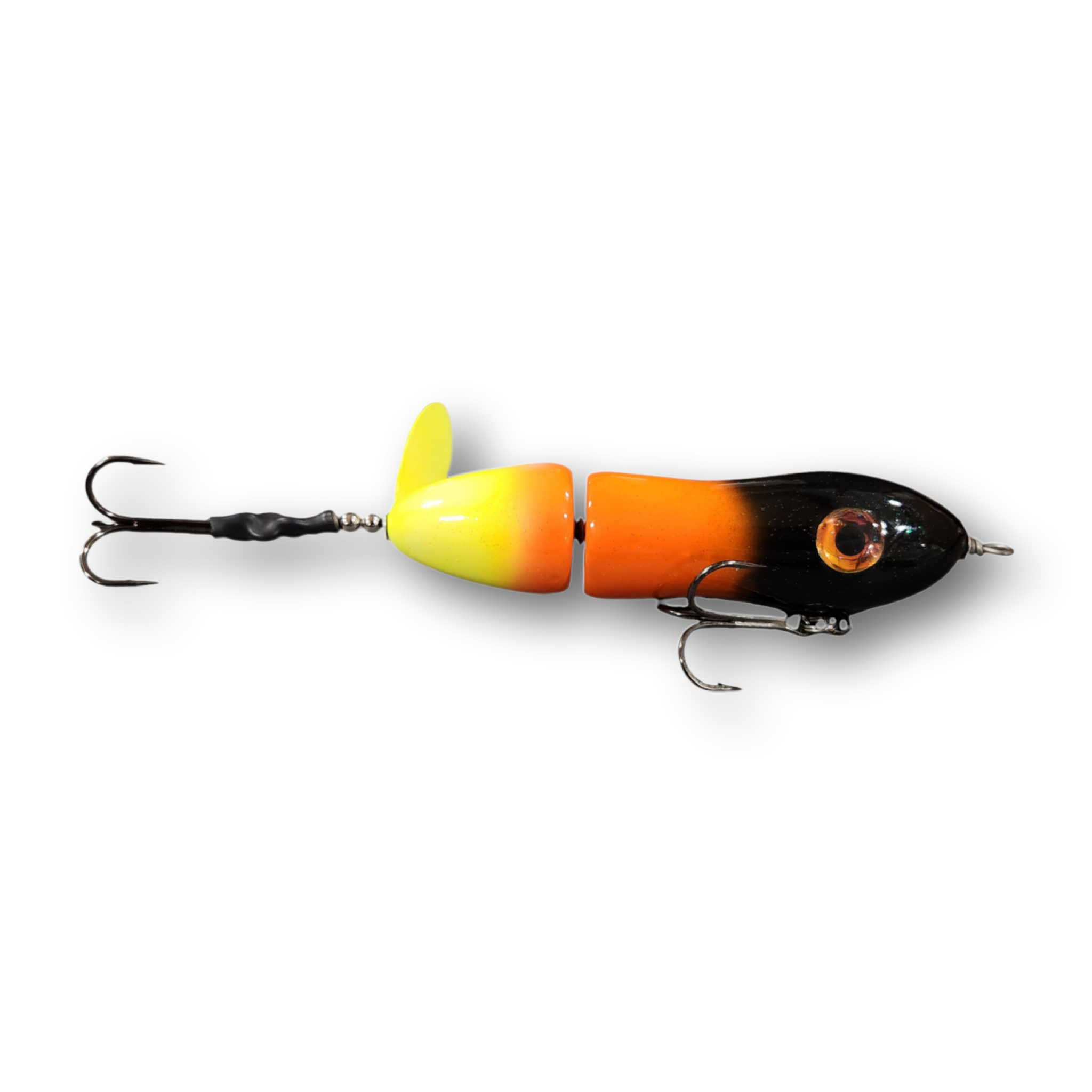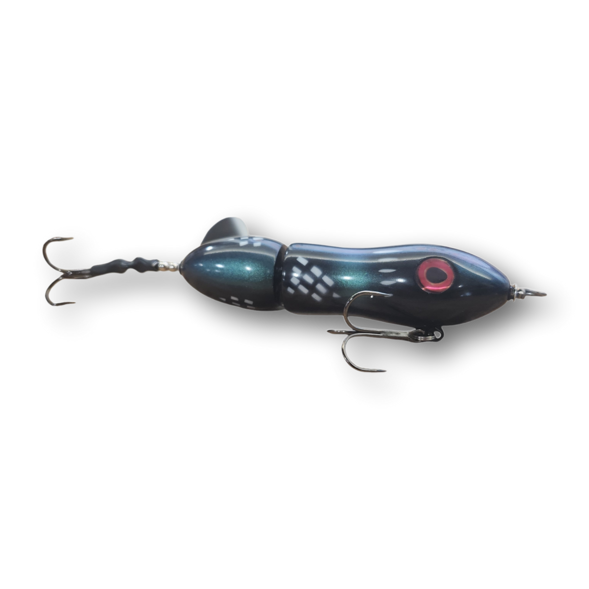 The Lit'tl Sis'tr with it's distinctive slow rotation with deep plops has been a consistent producing tail bait since day one. The Lit'tl Sis'tr is the smallest of the Sis'trs. She is quickly getting the reputation as a big fish lure. Hand made out of cedar you will find a thru wire construction, a swiveled front hook and a stainless steel blade that you can tune and stays tuned. The back hook is shrink tubed to hold it in the perfect hooking position. Twis'td Sis'tr comes standard with a 4/0 Premium Black Trident Treble Hook on the front and a 3/0 on the back.