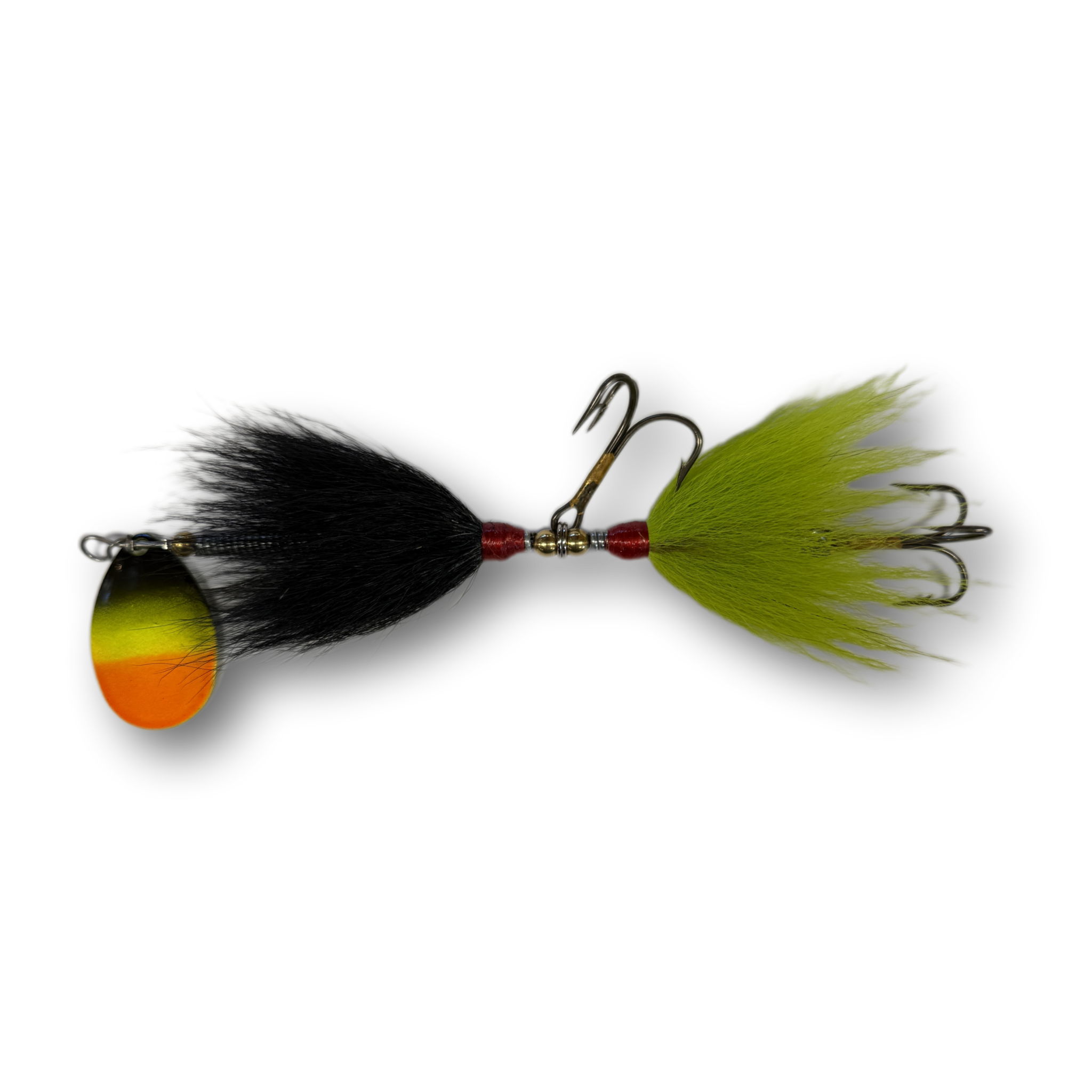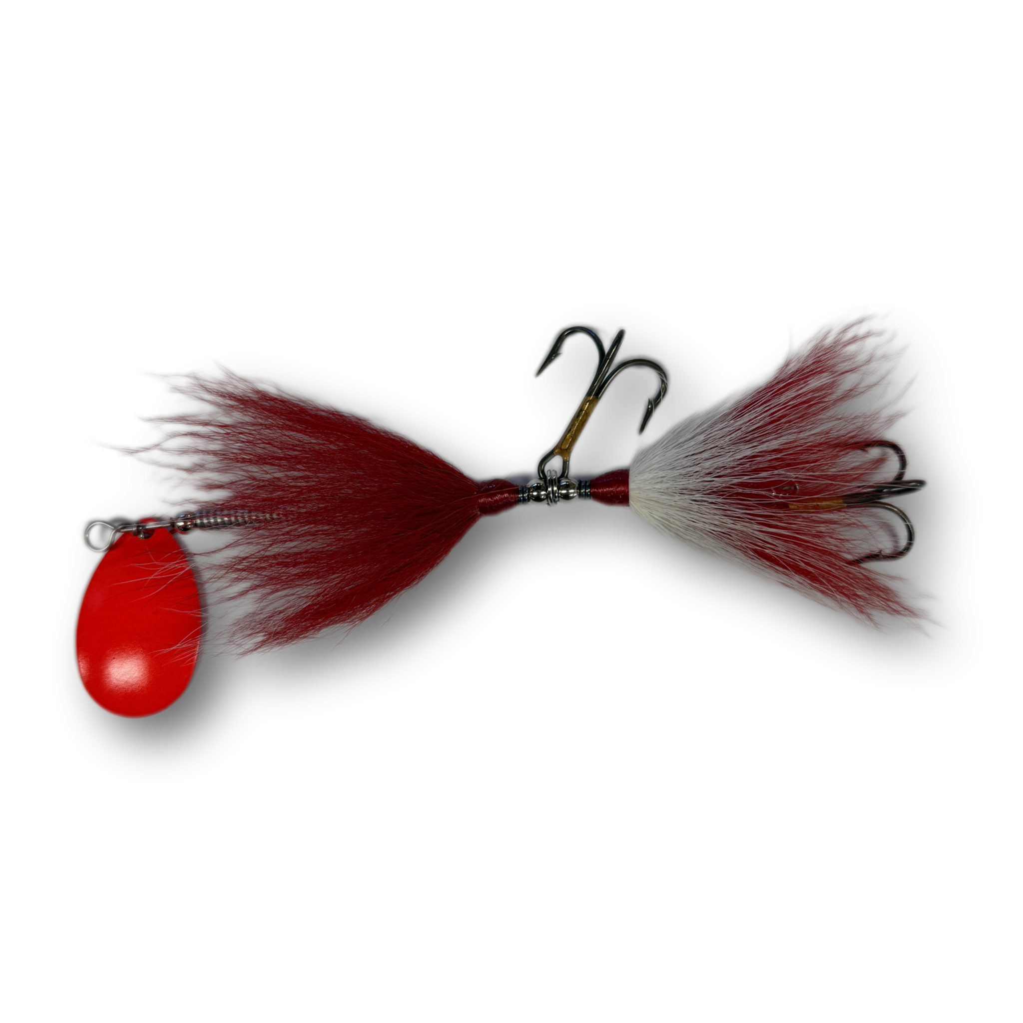 In the last two years of testing, numerous muskies in the 50 inch class have been caught on the "Dreamcatcher". The design of the bucktail and the #7, #8, #9 Indiana blades produce a tremendous amount of sound and vibration coming through the water.