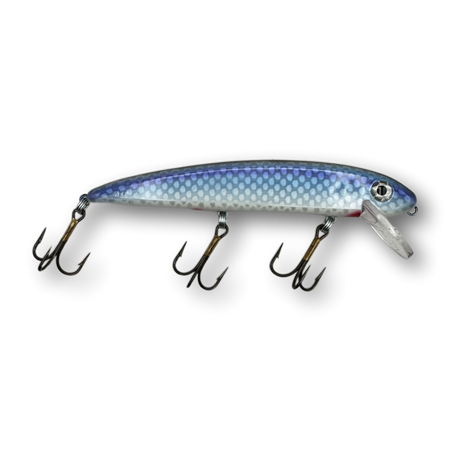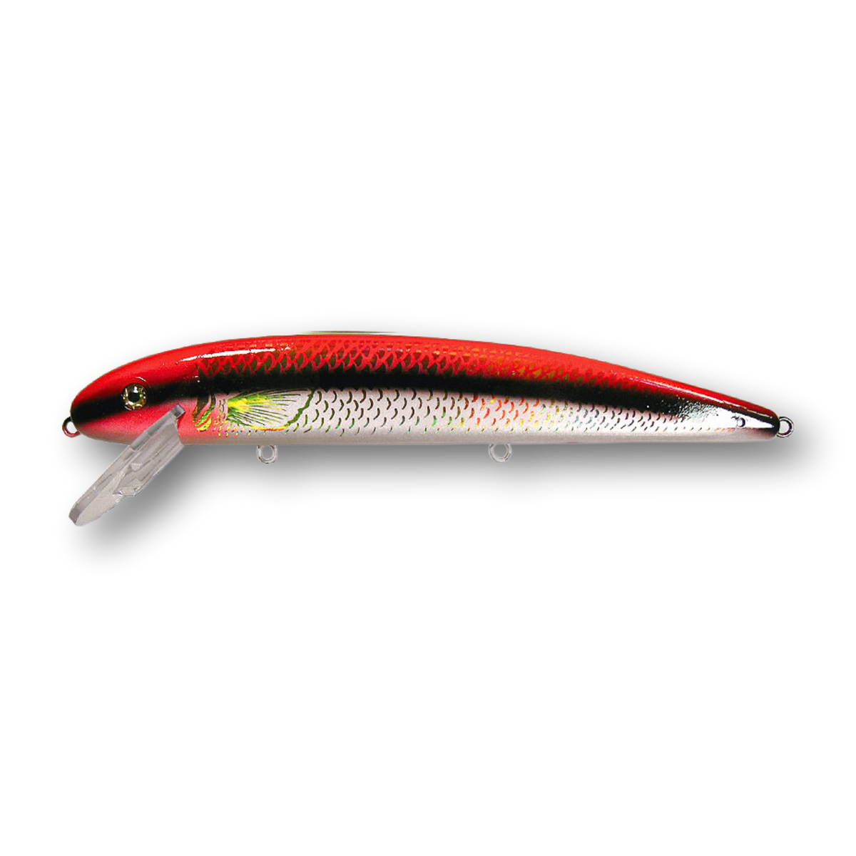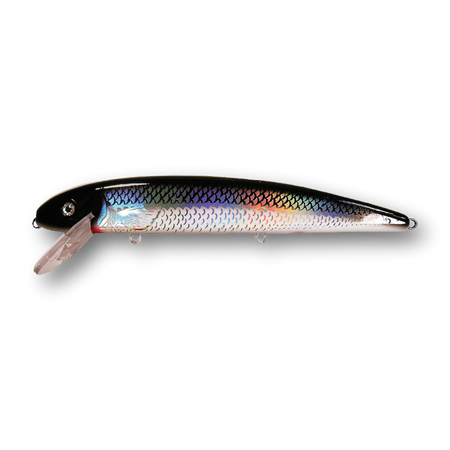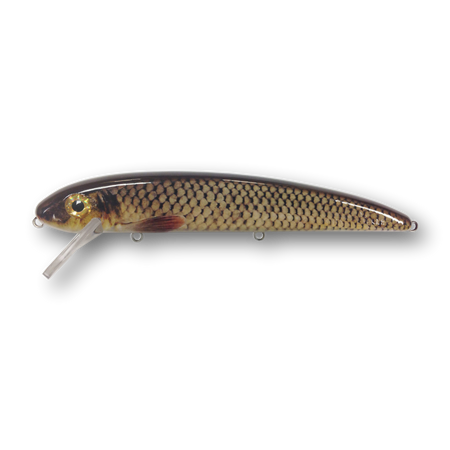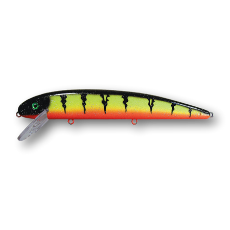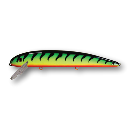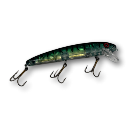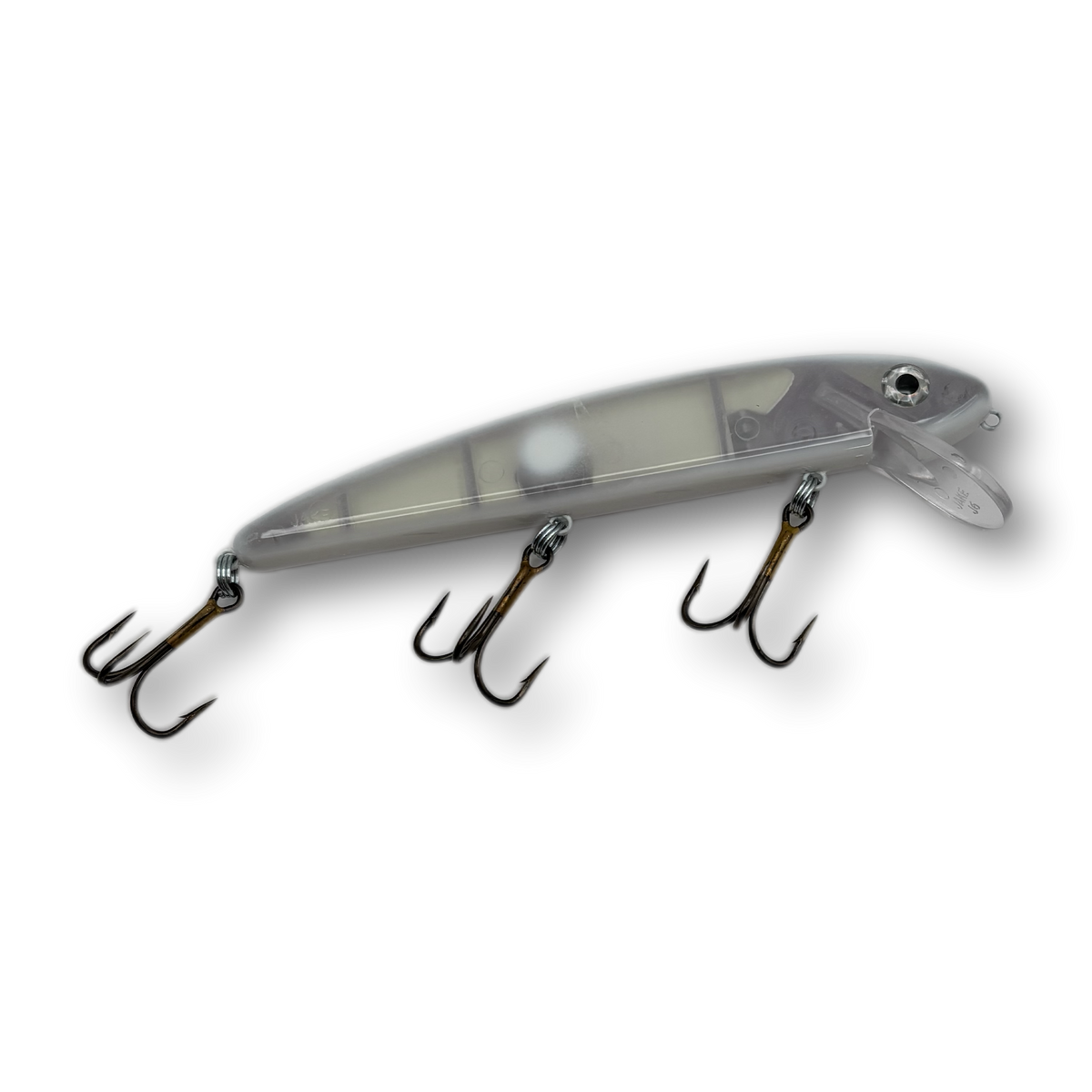 The 6" Jake is a compact version of the legendary big fish bait—perfect when muskies and pike are keying in on smaller forage but still packing a punch. Its narrow, flat-sided body and signature lip design produce an aggressive wobble and flash, even at higher speeds. This action mimics a struggling baitfish trying to right itself—exactly what triggers predatory instincts.