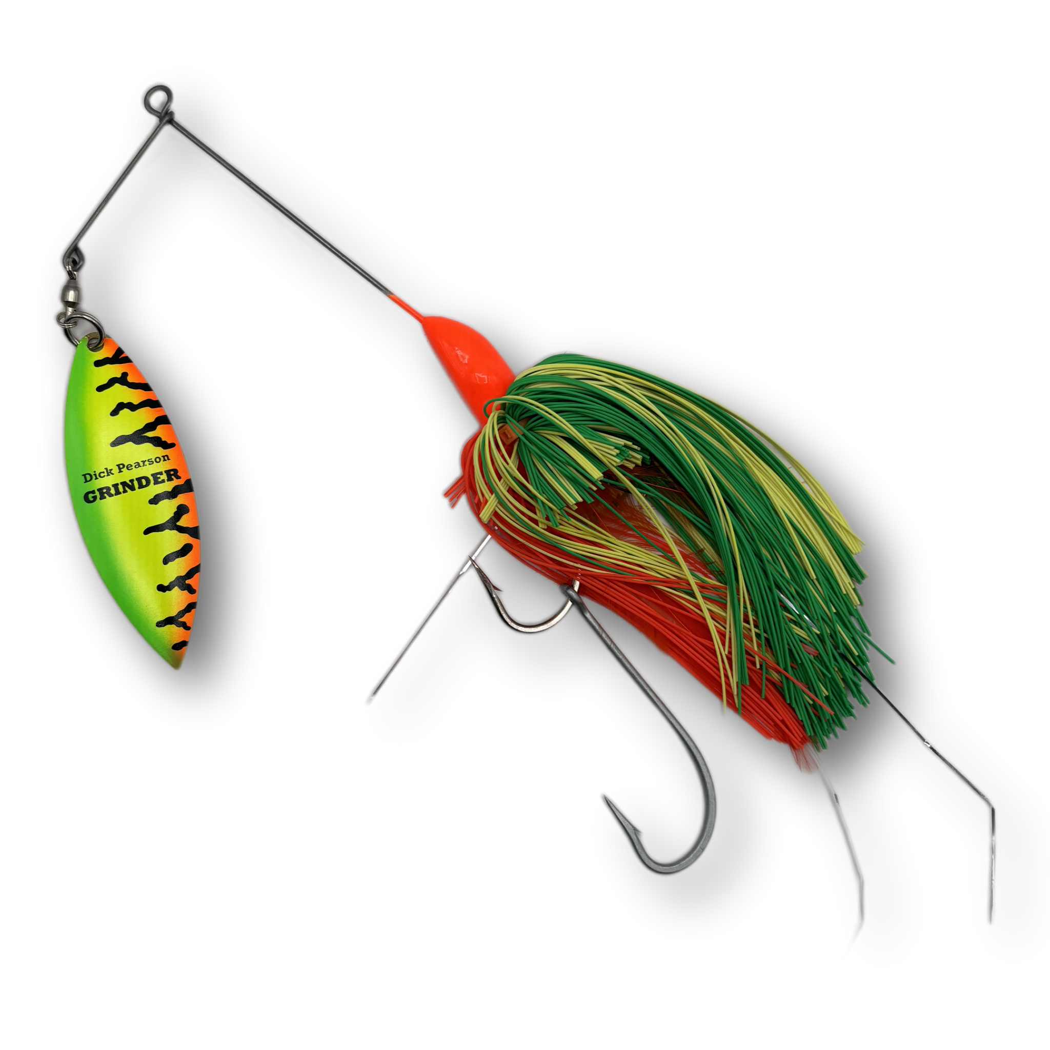 Designed by Dick Pearson himself, the Pearson’s Grinders, like many other spinner baits are versatile and can be used in many applications, but these, unlike others, are specifically designed to GRIND through the weeds. Features such as the length of the arms, unique head design, body material and every other component were carefully designed, selected and assembled with that purpose in mind.
