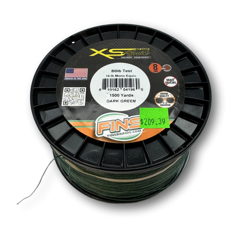 FINS XS Big Game Braid is a high tenacity 8-end braid post processed to be firm and round while providing the greatest abrasion, abuse and shock resistance found in a braided line. XS is a great choice for trolling in freshwater/saltwater, bottom fishing, punching or any application requiring extreme durability.