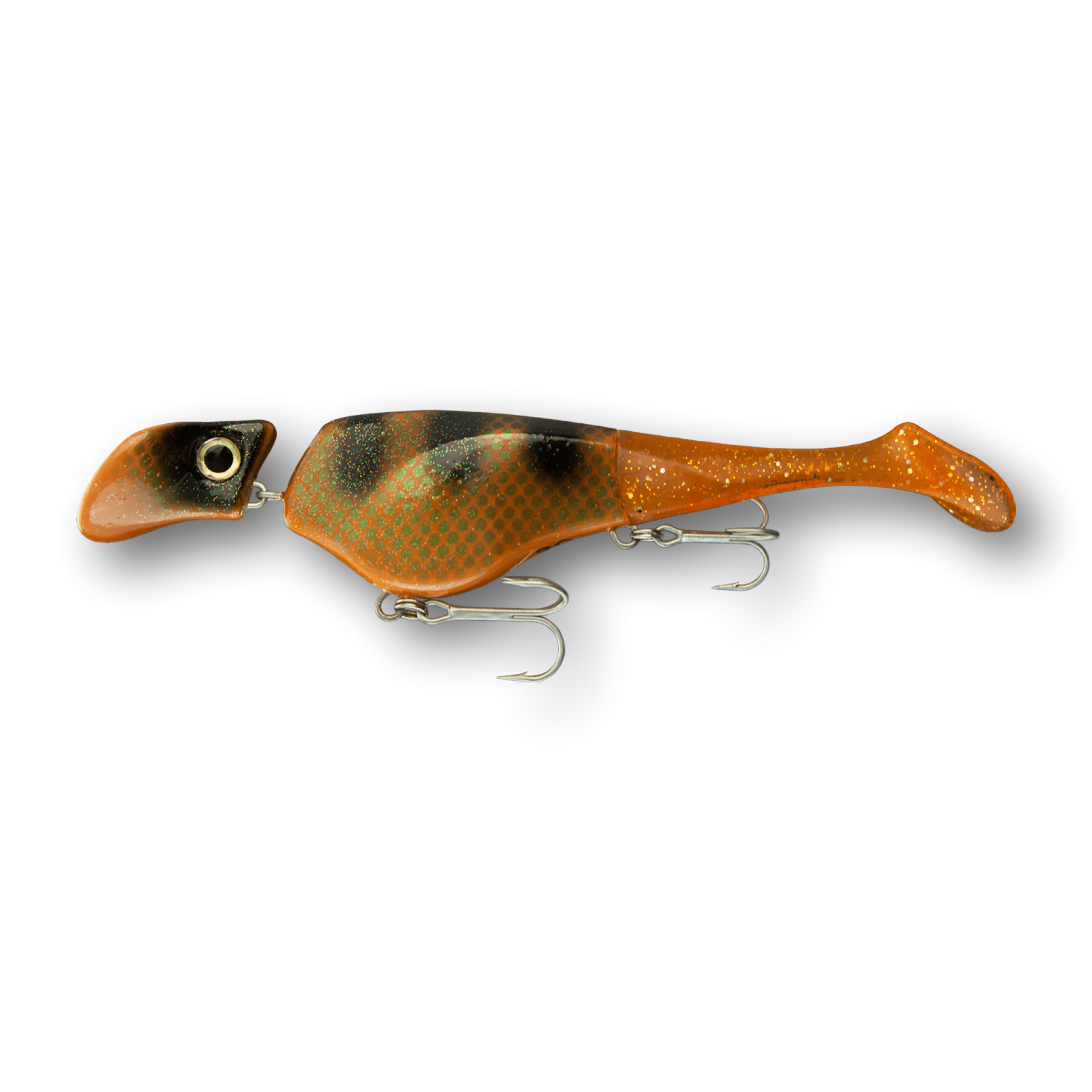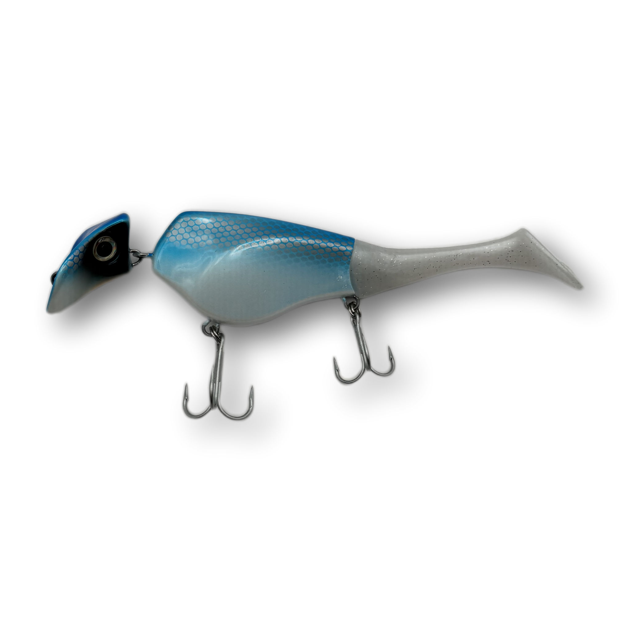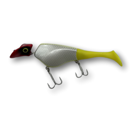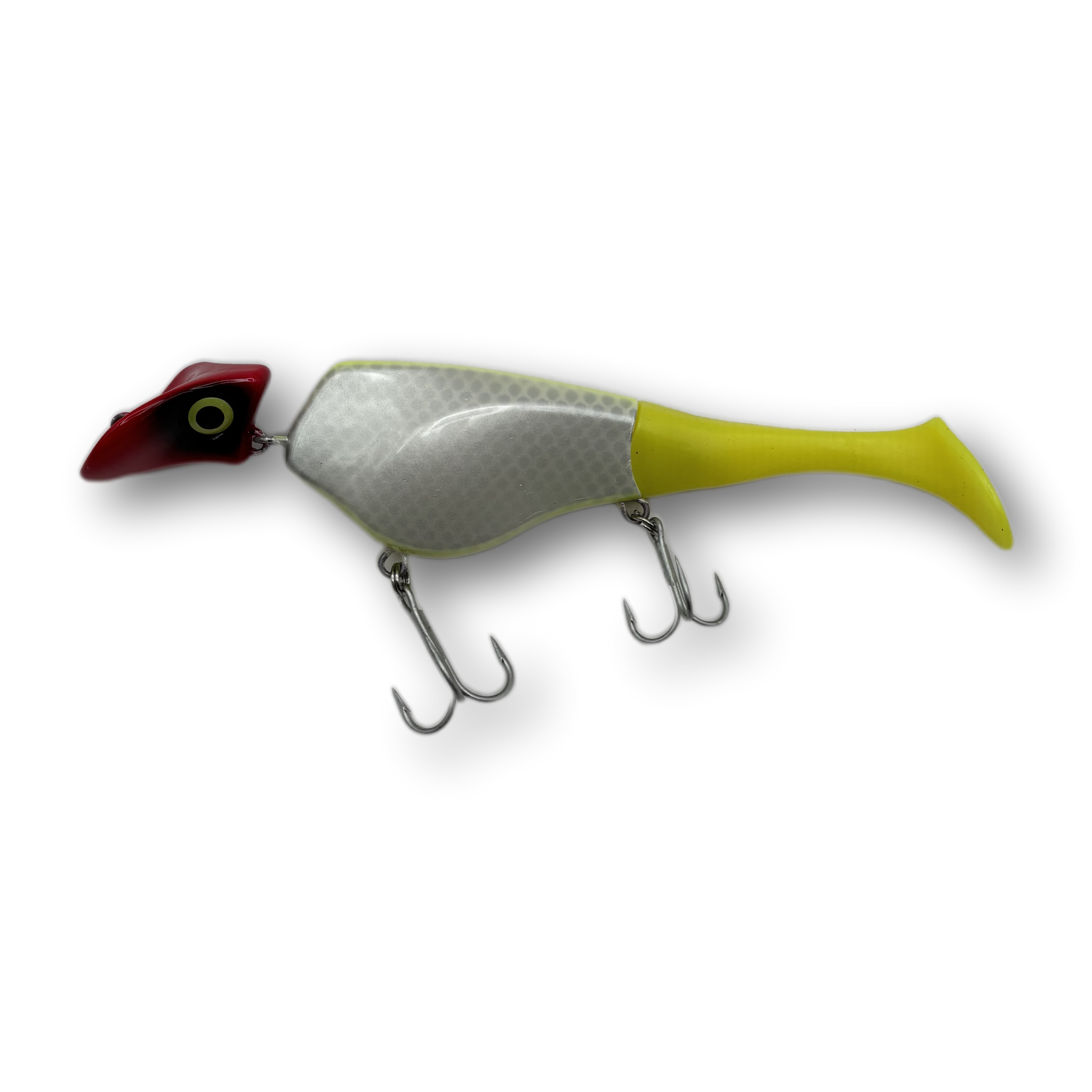 A simple straight retrieve of the Headbanger Shad produces an action that mimics the erratic and evasive movement of a spooked smaller bait fish, and adding a pause or two makes it irresistible to any nearby predator. Available in three different buoyancies for different depths and styles of fishing, it is typically used to target northern pike, muskellunge and lake trout.