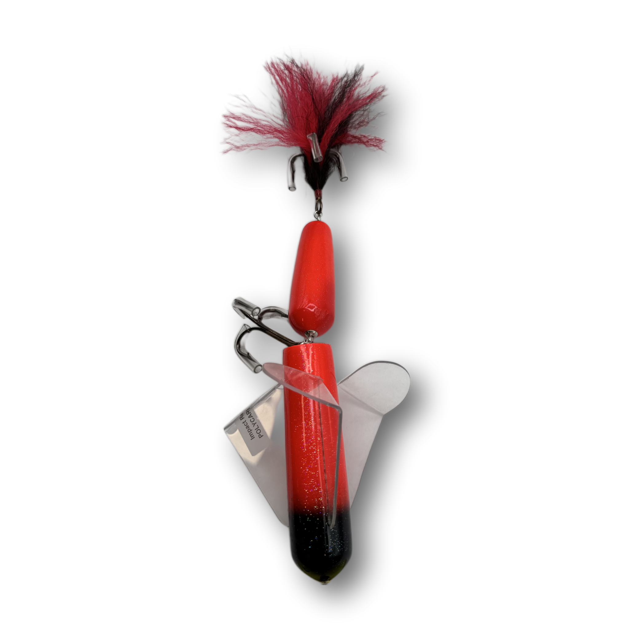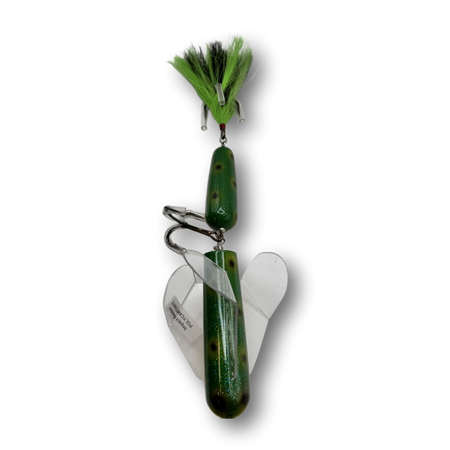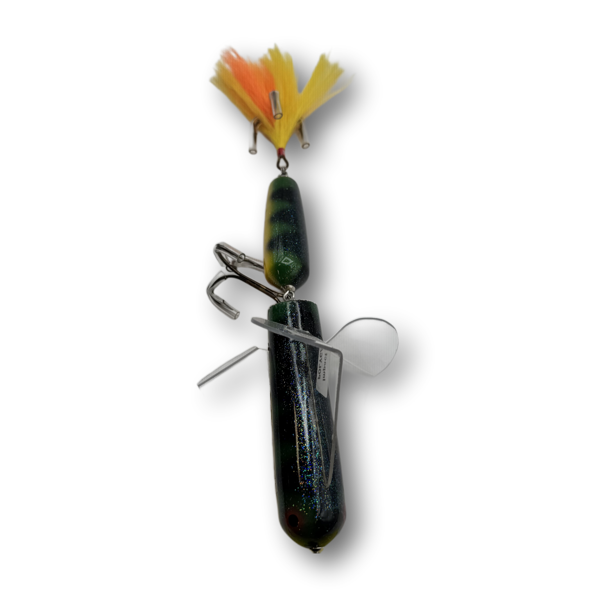 Guide's Choice Pro Shop has 3 colors in stock of this hard to find bait, the Magnum Musky from High Roller. Wooden, hand made bait, VMC 7/0 hooks, Sampo swivels, HD split rings, all fasteners epoxied into the wood.