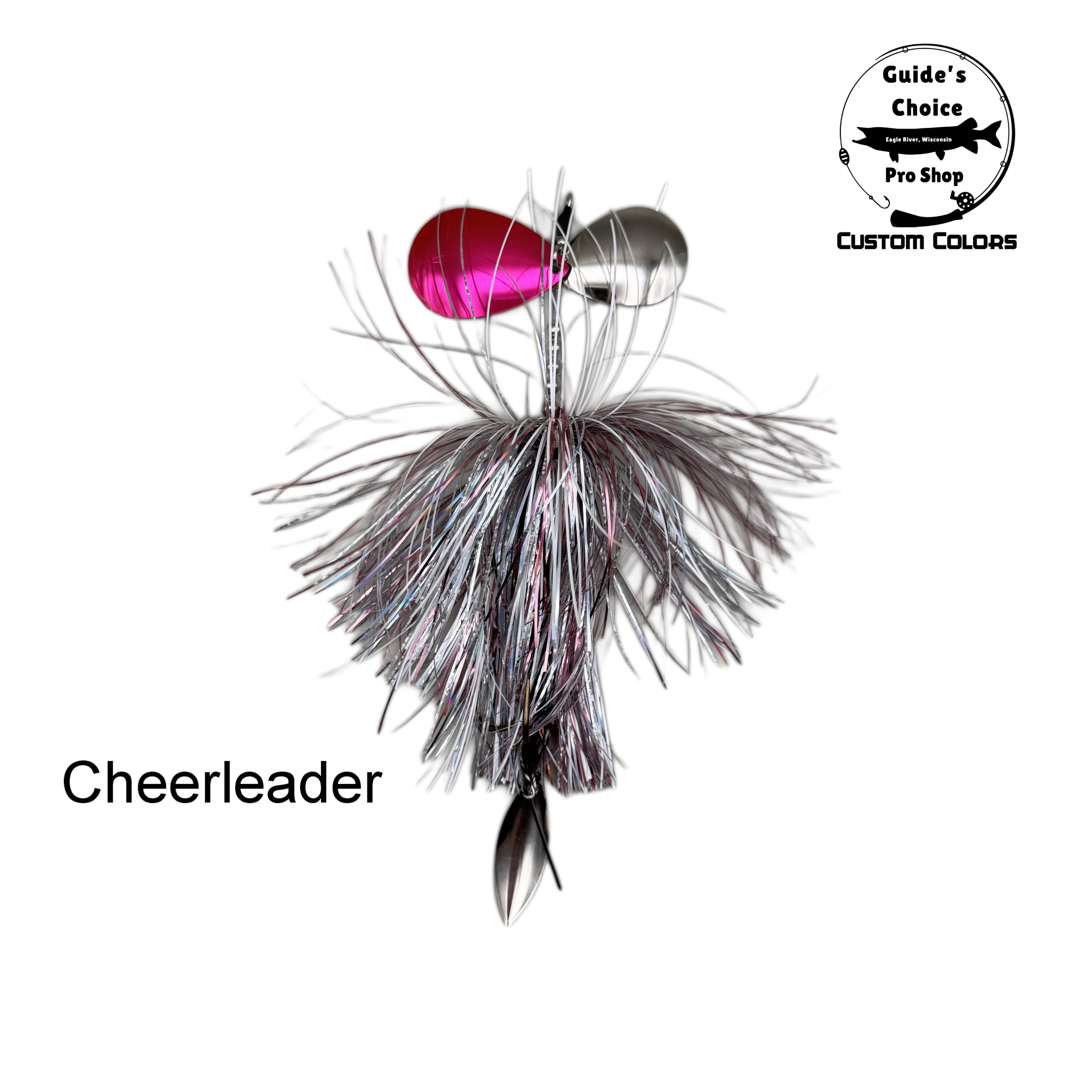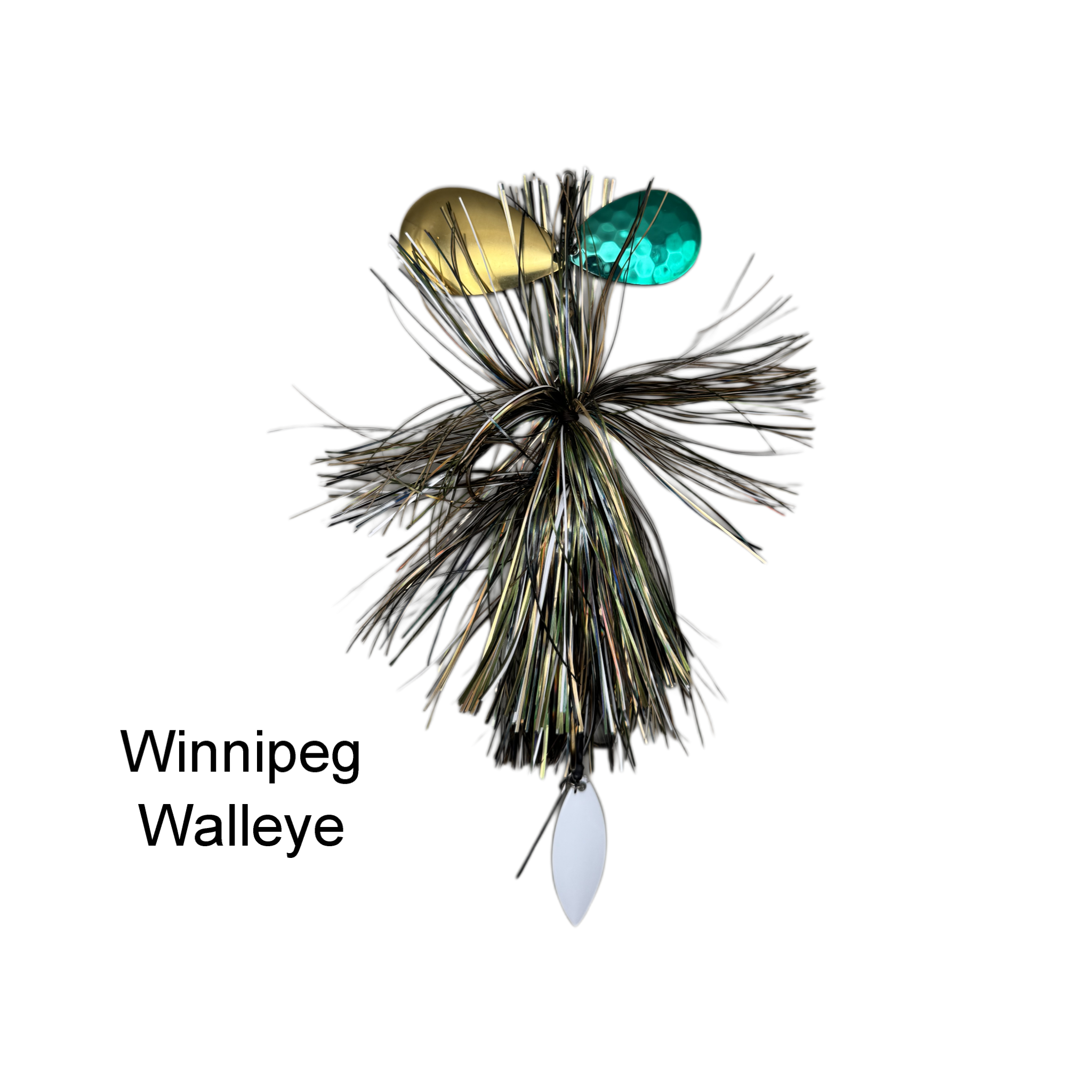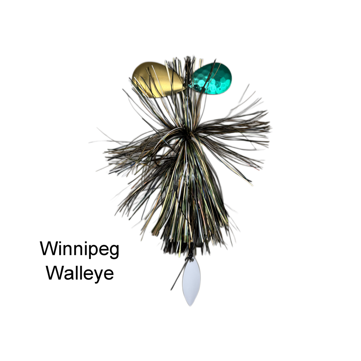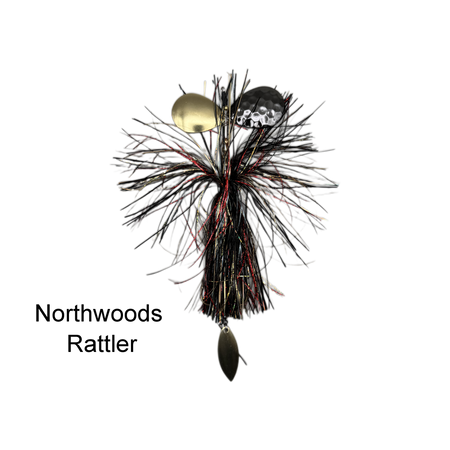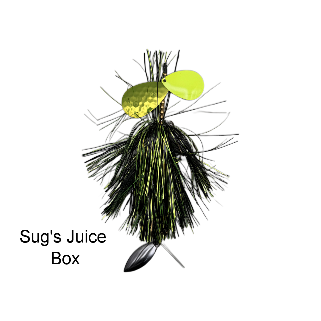 Introducing the 7/8 Banger from HunsyTails Bait Co., a standout bladed bait for musky fishing. Unlike standard bucktails, it features two different-sized Colorado blades and a willow trailer with a ticker. The rear blade’s ticker adds unique noise, enhancing flash and vibration beyond typical bladed baits. Measuring 10 inches long and weighing 2.1 ounces, the 7/8 Banger is designed to attract big muskies with its distinctive action and sound.