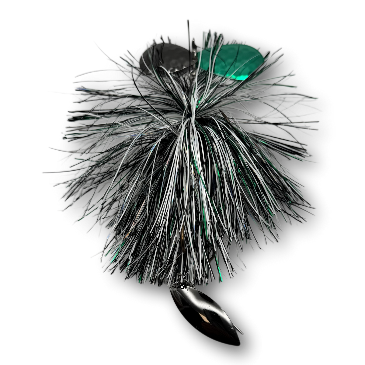 Introducing the 9/10 Banger from Hunsy Tails Bait Co., available at Guide's Choice Pro Shop in Eagle River, WI. This premium bladed bait for musky fishing offers more than your standard bucktail. Equipped with two different-sized Colorado blades and an added willow trailer with a ticker, the 9/10 Banger delivers powerful flash and vibration. The ticker on the rear blade creates an extra level of noise and action that you won’t find on many other bladed lures. Designed with an extra skirt, hook, and additional weight, it features a larger profile than the traditional 7/8 Banger. Plus, at Guide’s Choice Pro Shop, you can get this bait in our exclusive color options, making your tackle box stand out on the water.