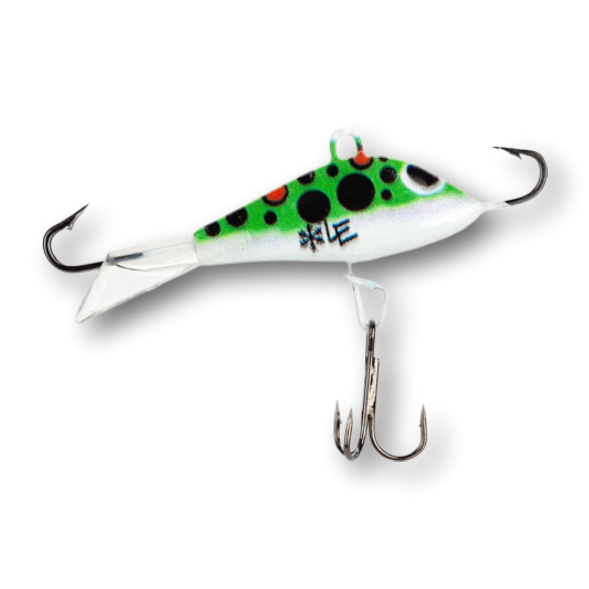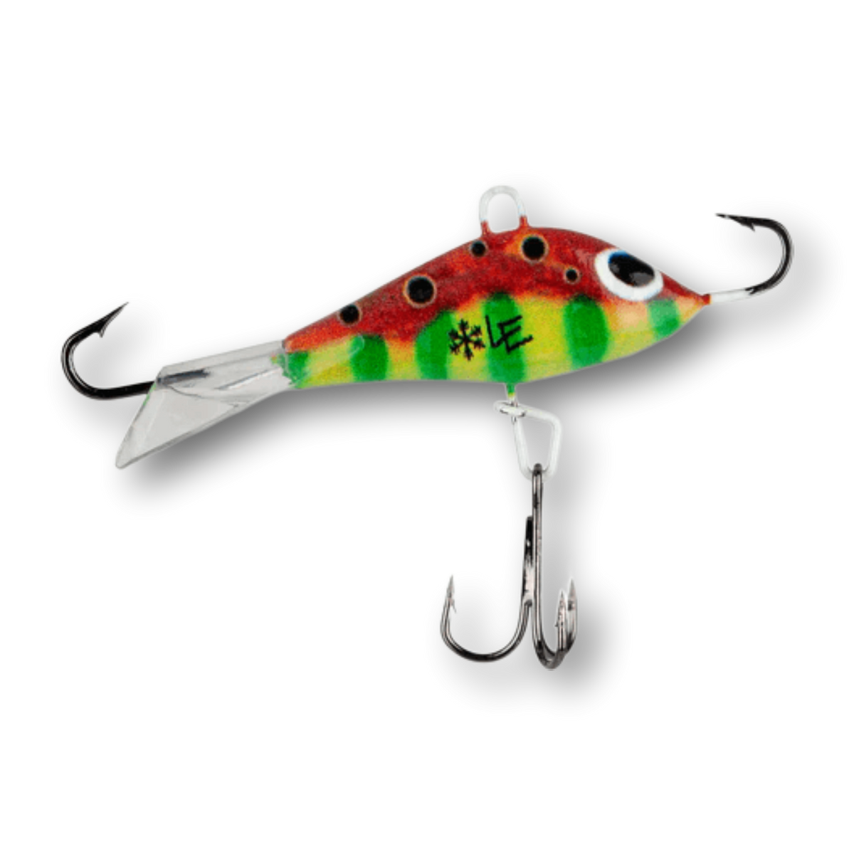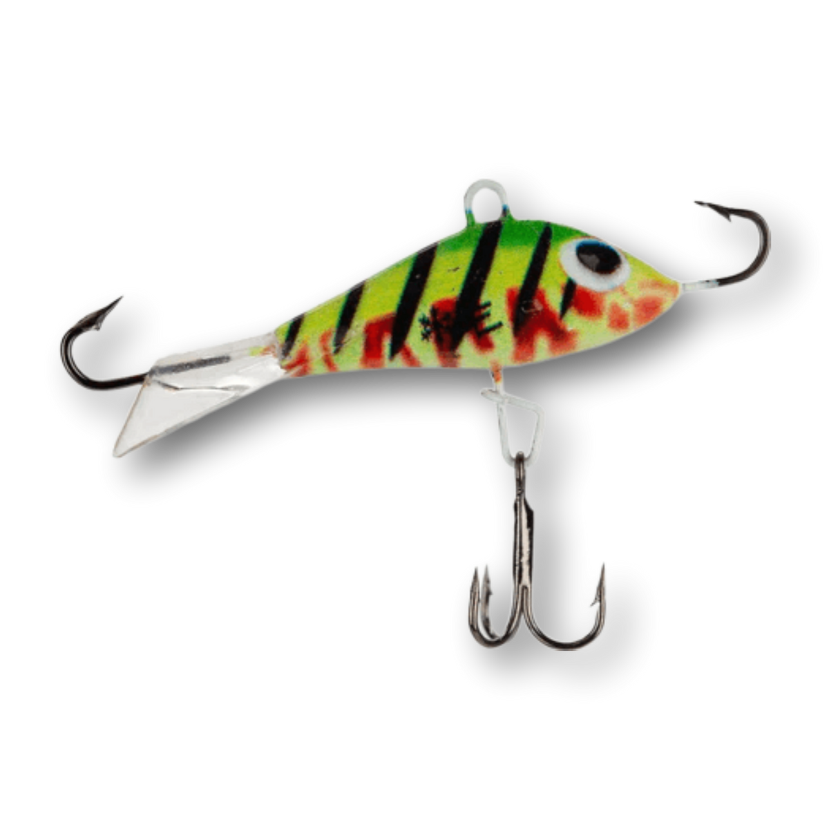 Eye Catchers are designed to provide the optimal presentation for predator fish such as Walleye or Northern Pike while also being versatile enough to target smaller fish such as Perch and Crappie. This bait is painted with HD patterns and hyper glow paints and will be offered with standard color or blood red hooks.