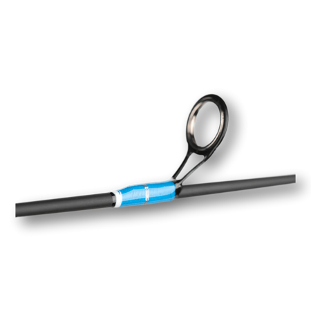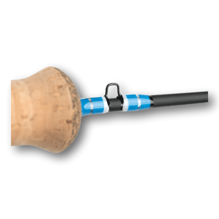 The Lake Effect blizzard blue reel seat, windings, and rod tip set off this high-performance full graphite blank. The open-eye design reduces ice buildup in sub zero temperatures to improve angler success.