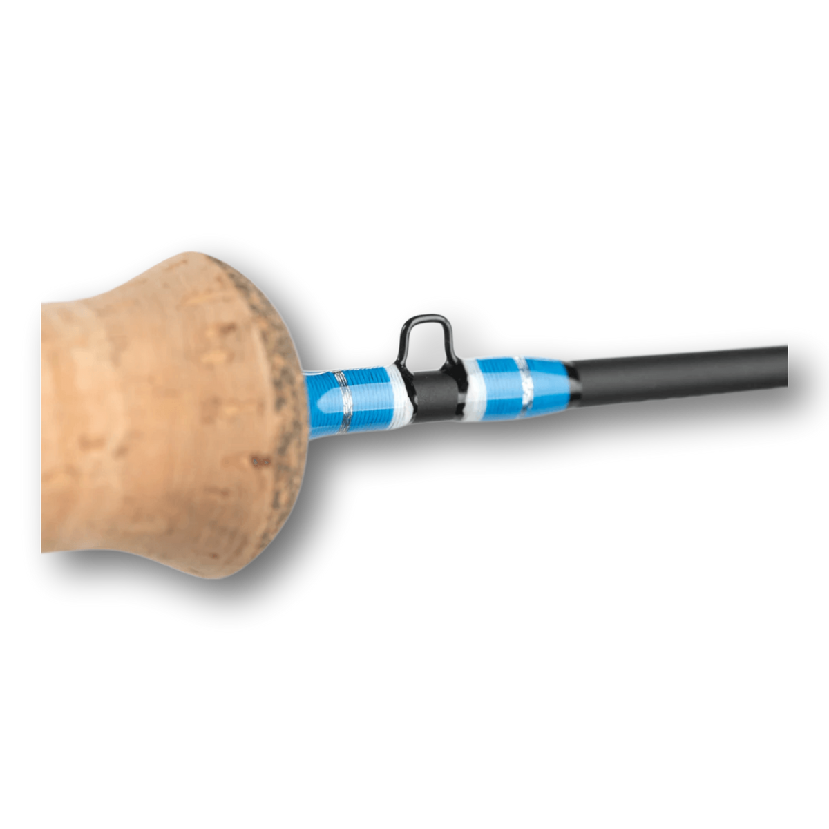 Pannie Popper Ice Rods are made with fully customized Lake Effect cork handles and polished stainless guides. Our guides are double diamond coated to deliver the durability you deserve.