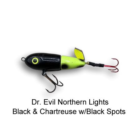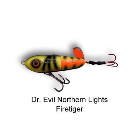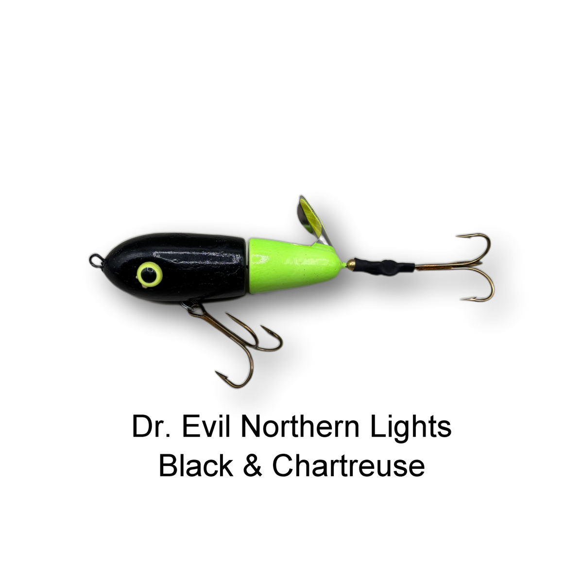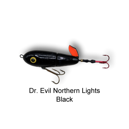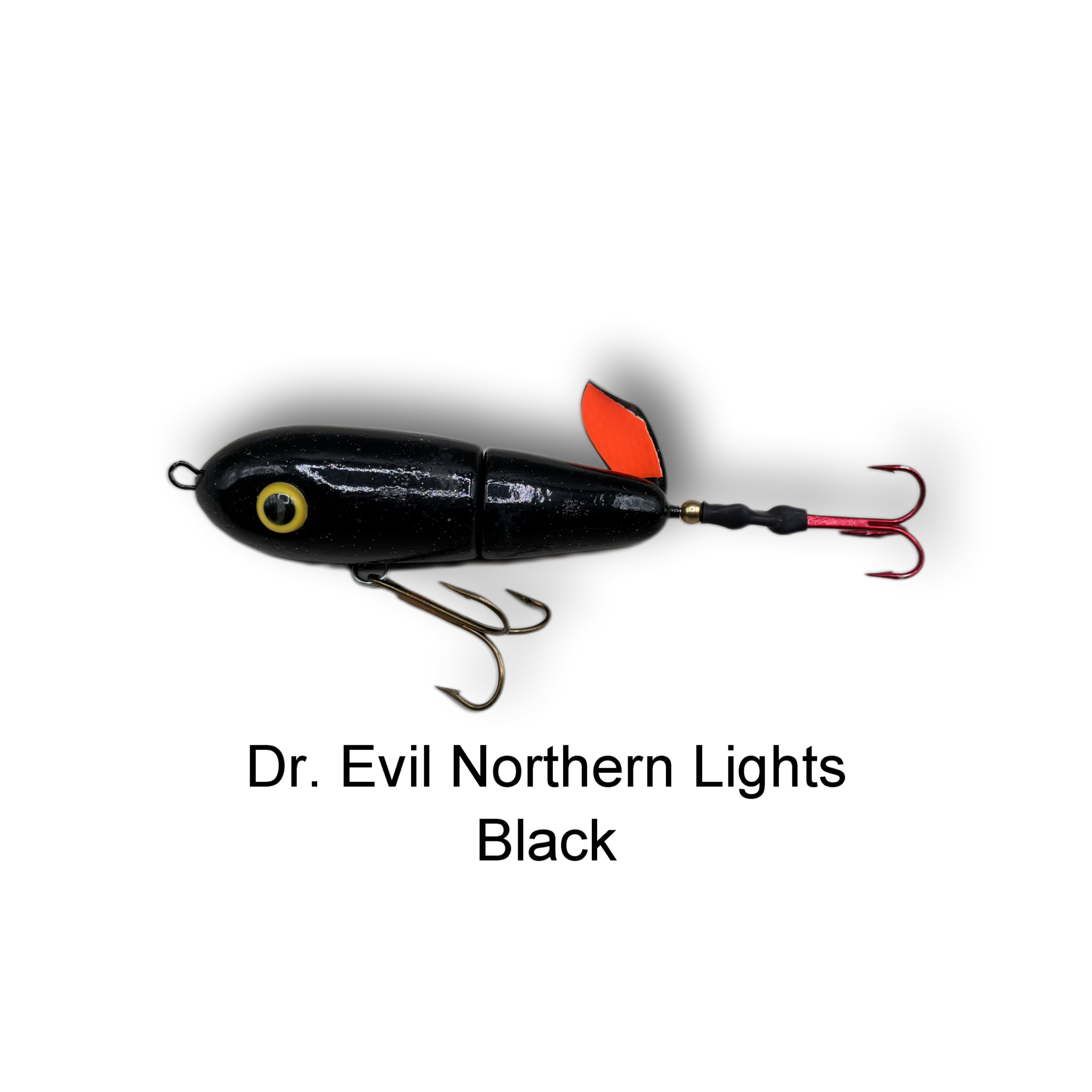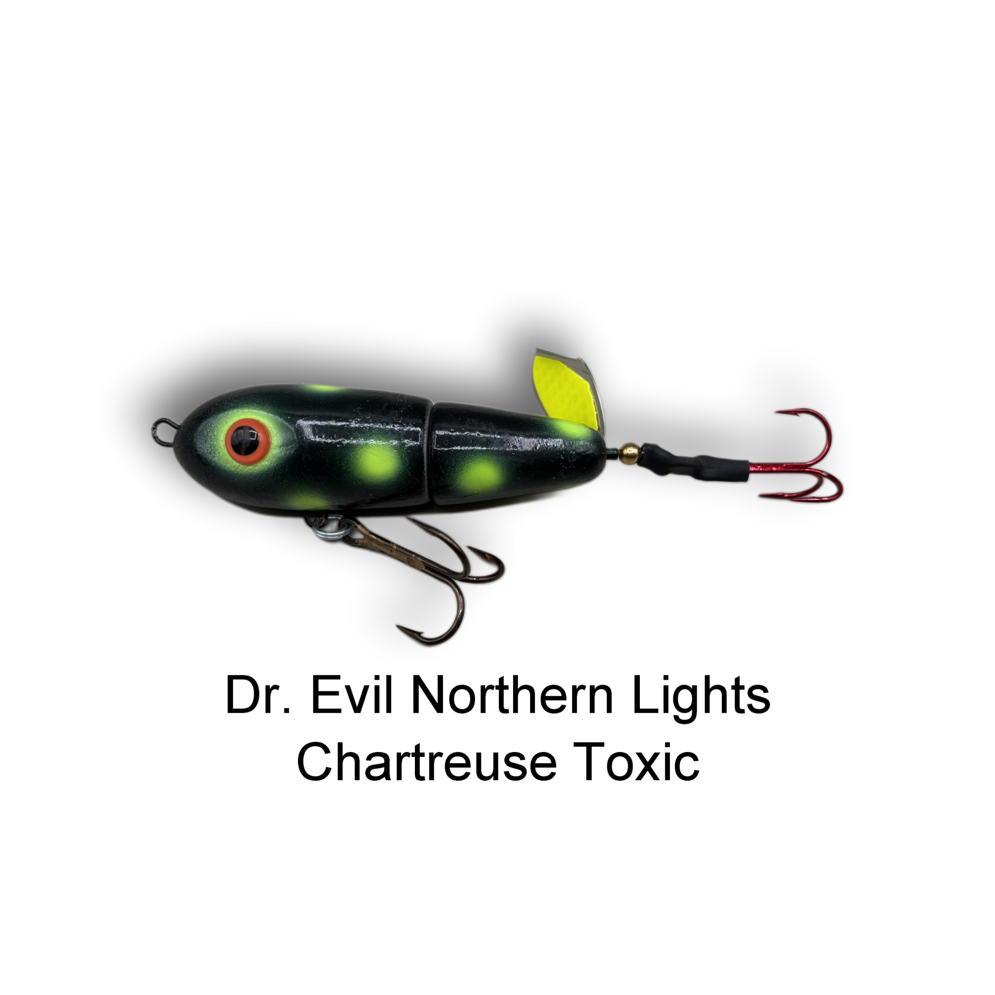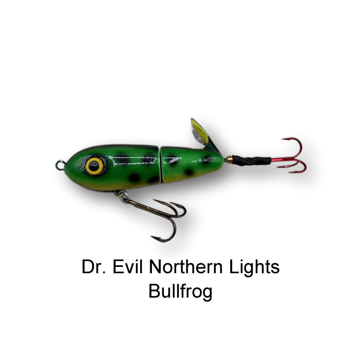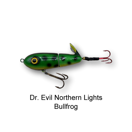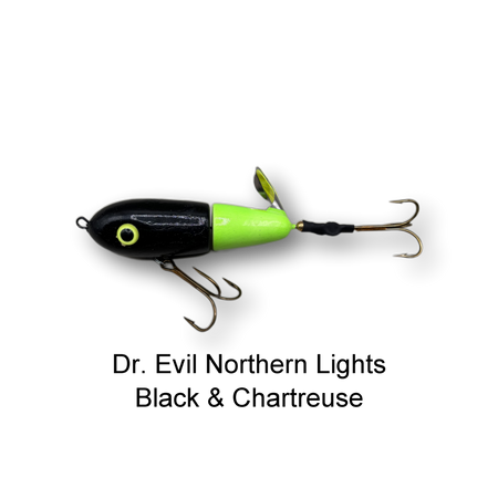 The Dr. Evil from Lake X Lures may be smaller than its siblings but it delivers a loud sound and great results. It's a solid plastic surface bait with thru wire construction.