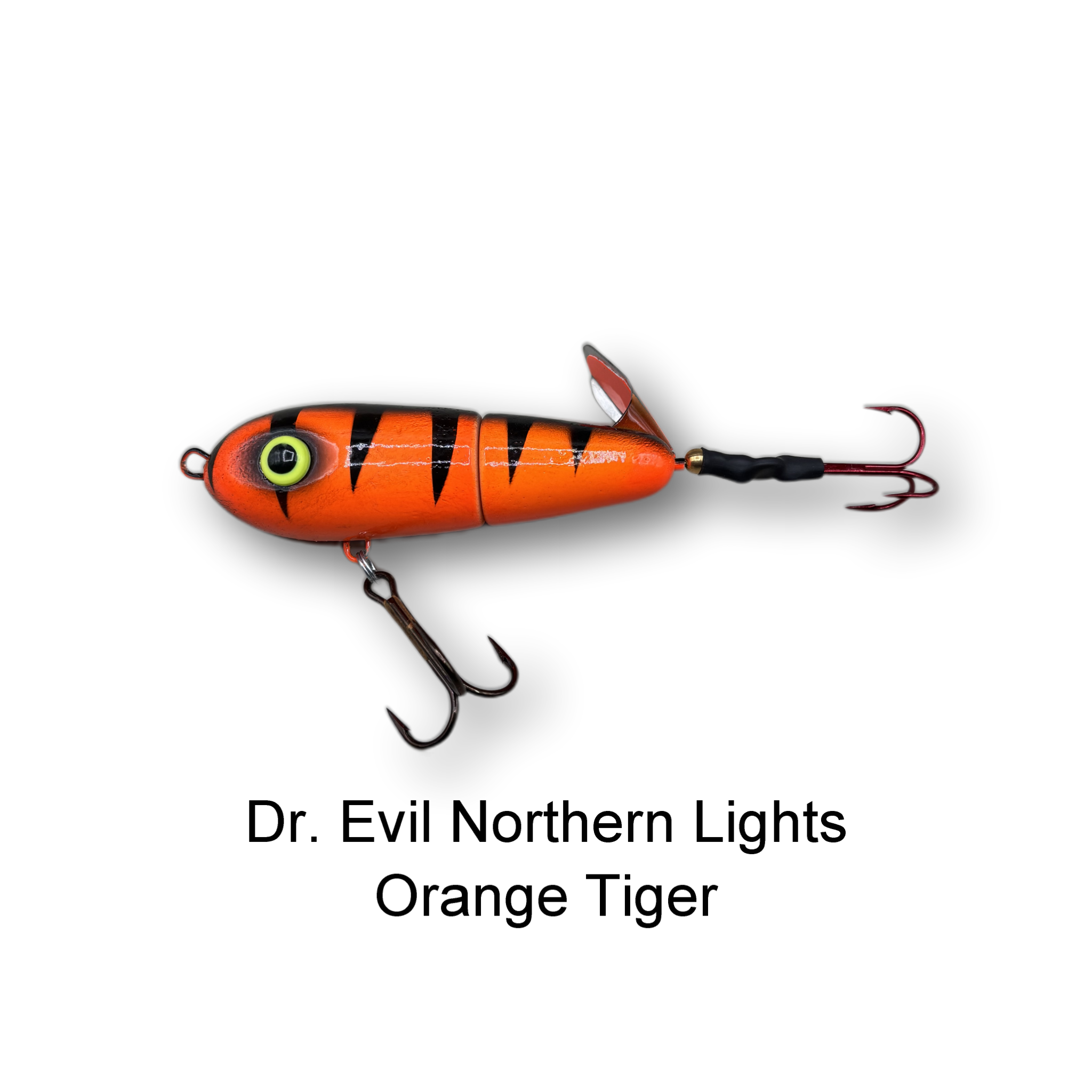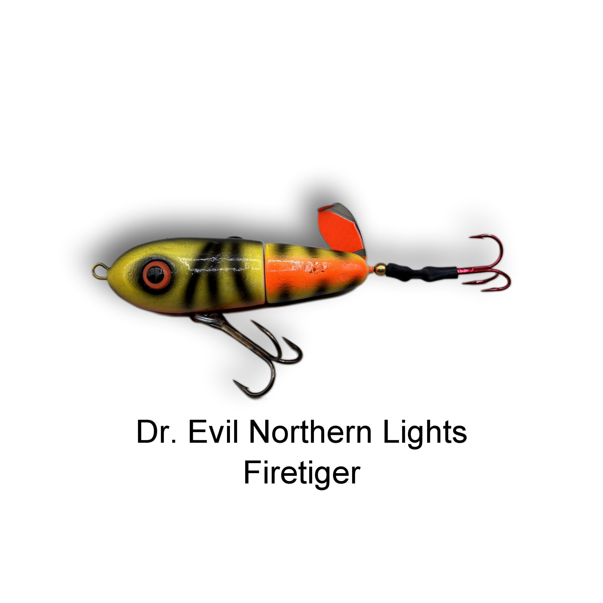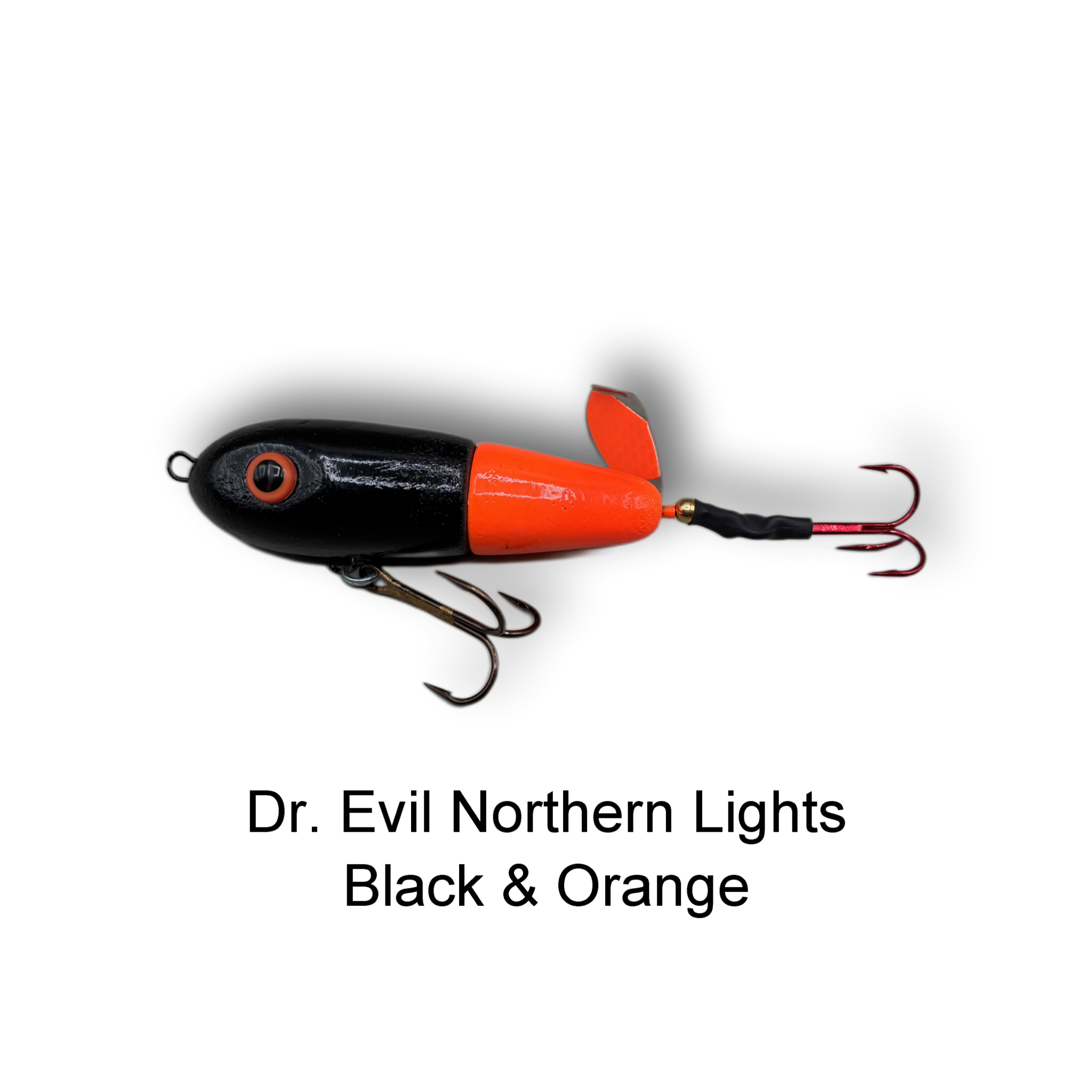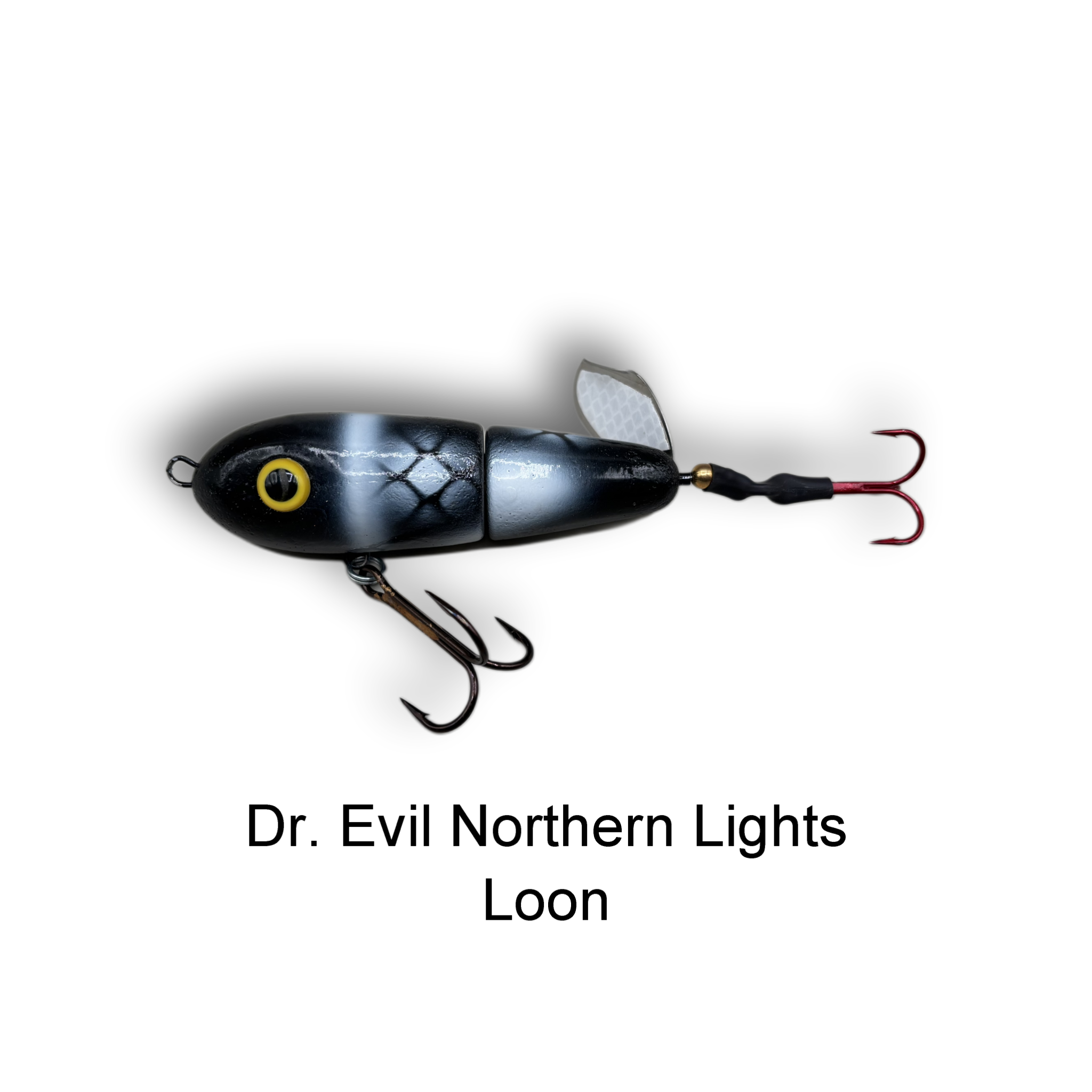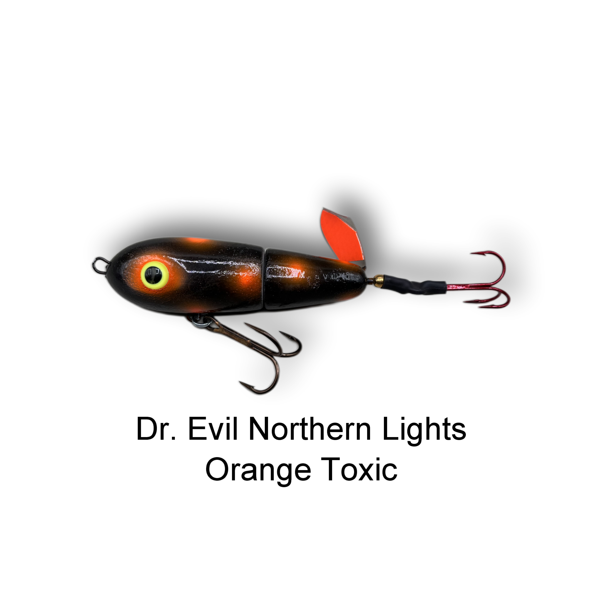 The Dr. Evil from Lake X Lures may be smaller than its siblings but it delivers a loud sound and great results. It's a solid plastic surface bait with thru wire construction.