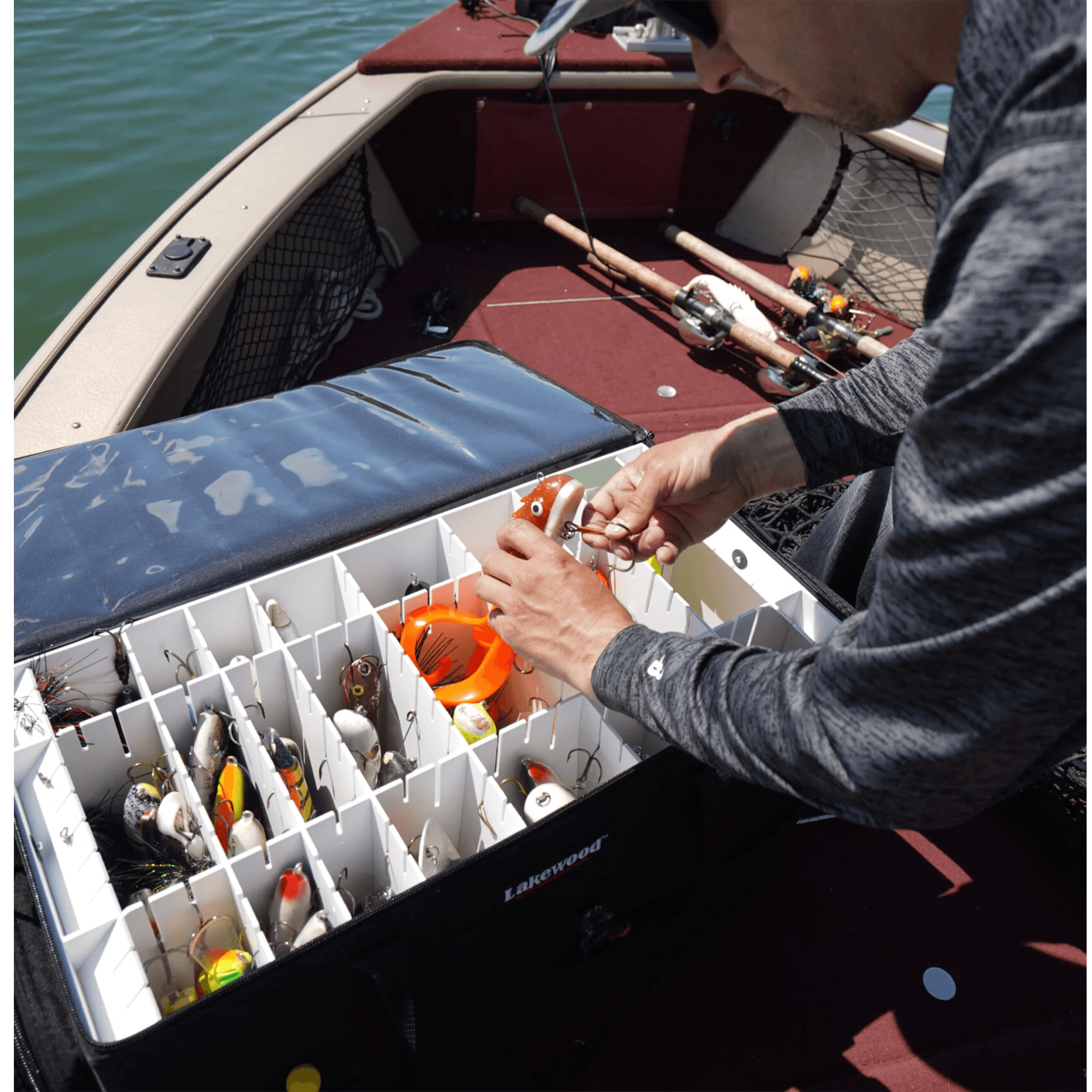 - 4 removable/adjustable and 4 solid hanging lure dividers