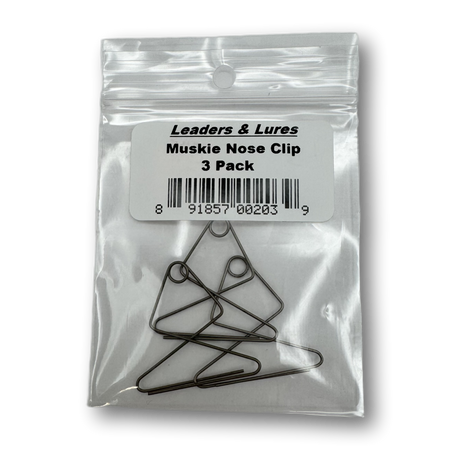 3-pack of 174# x 1" nose clip for suckers 3" to 15". Made of brown stainless spring steel, corrosion resistant, perfect for toothy fish.