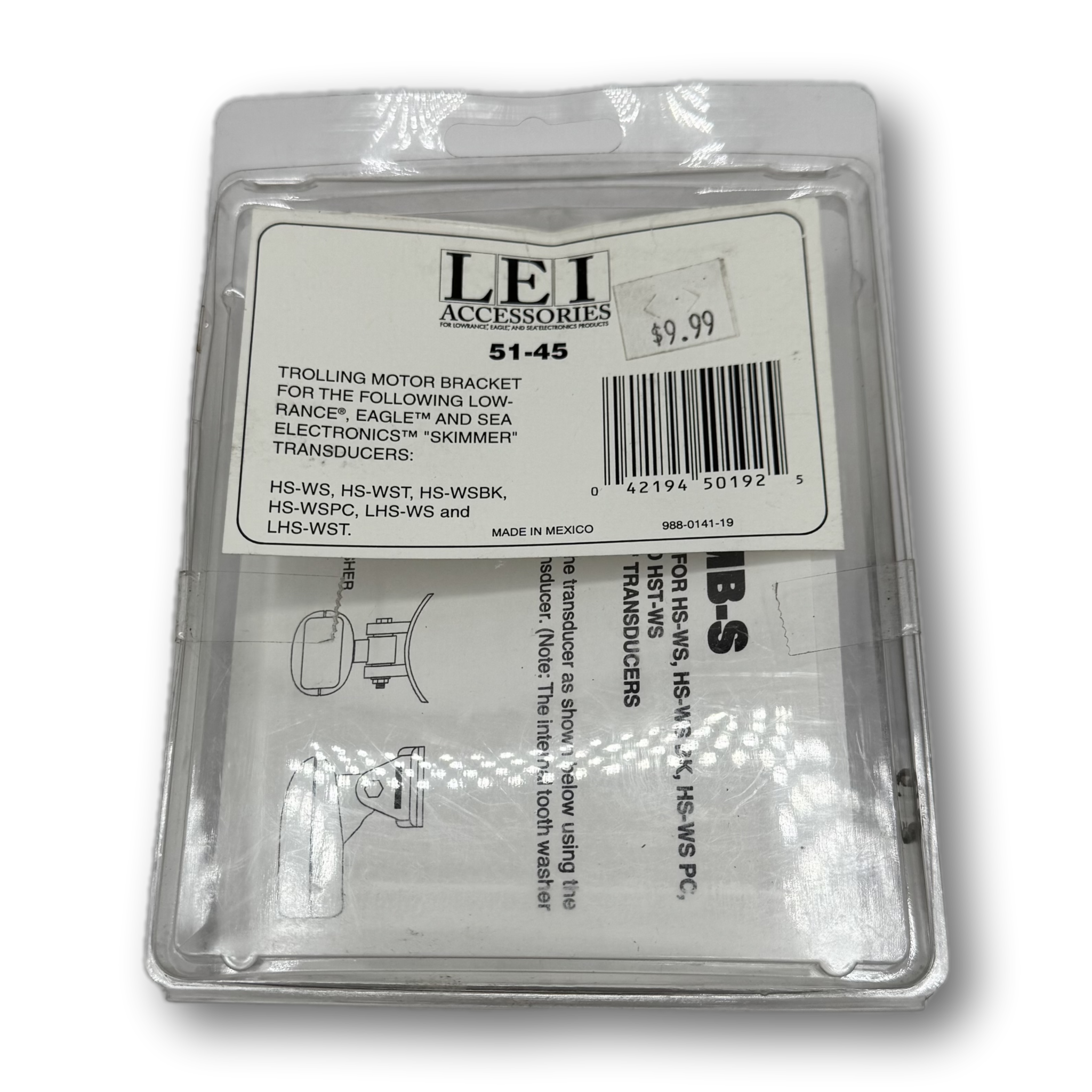 Upgrade your sonar setup with the LEI Accessories TMB-S, the reliable solution for mounting "Skimmer" style transducers. This bracket allows you to position your transducer on the lower unit of your trolling motor, giving you a real-time underwater view from the bow of your boat.