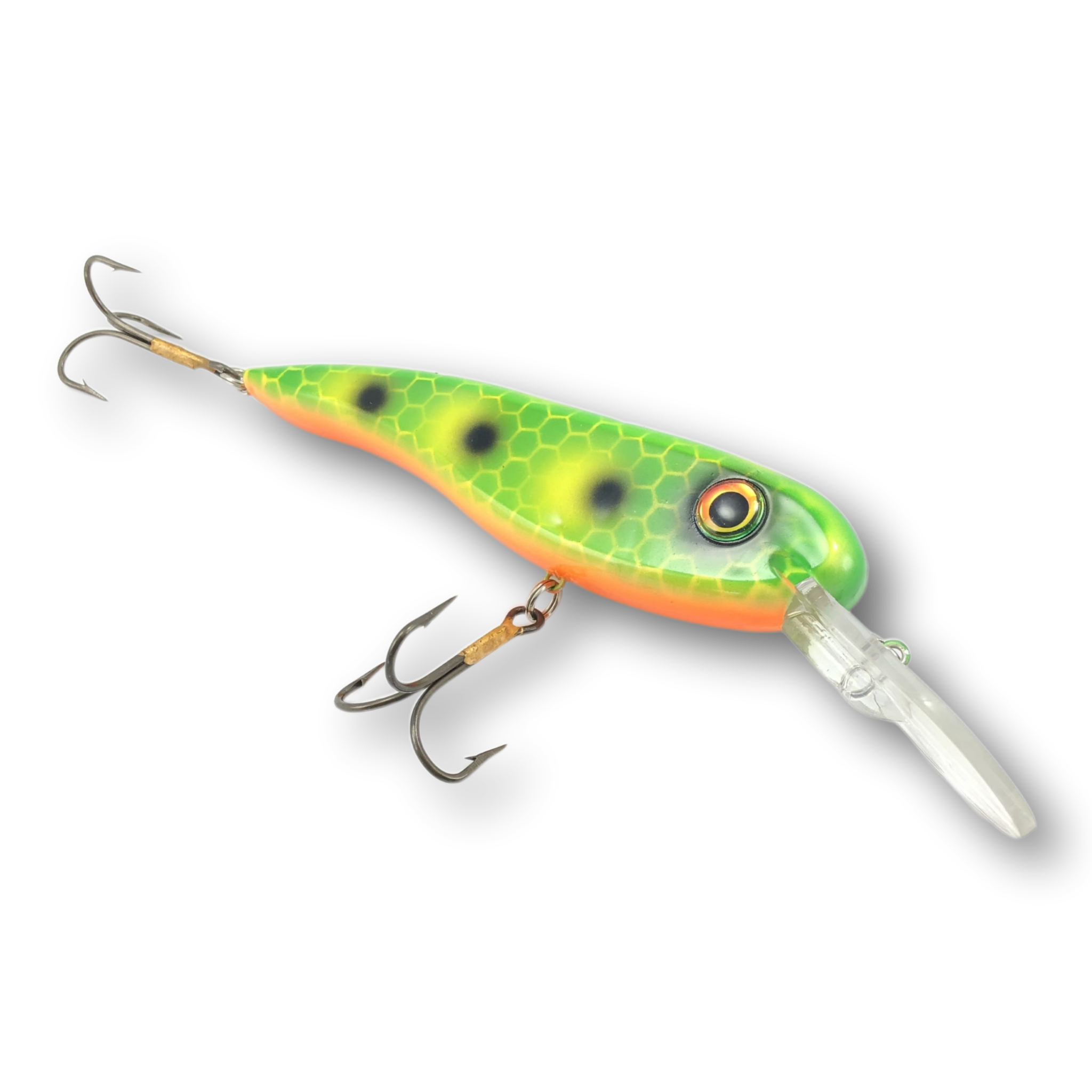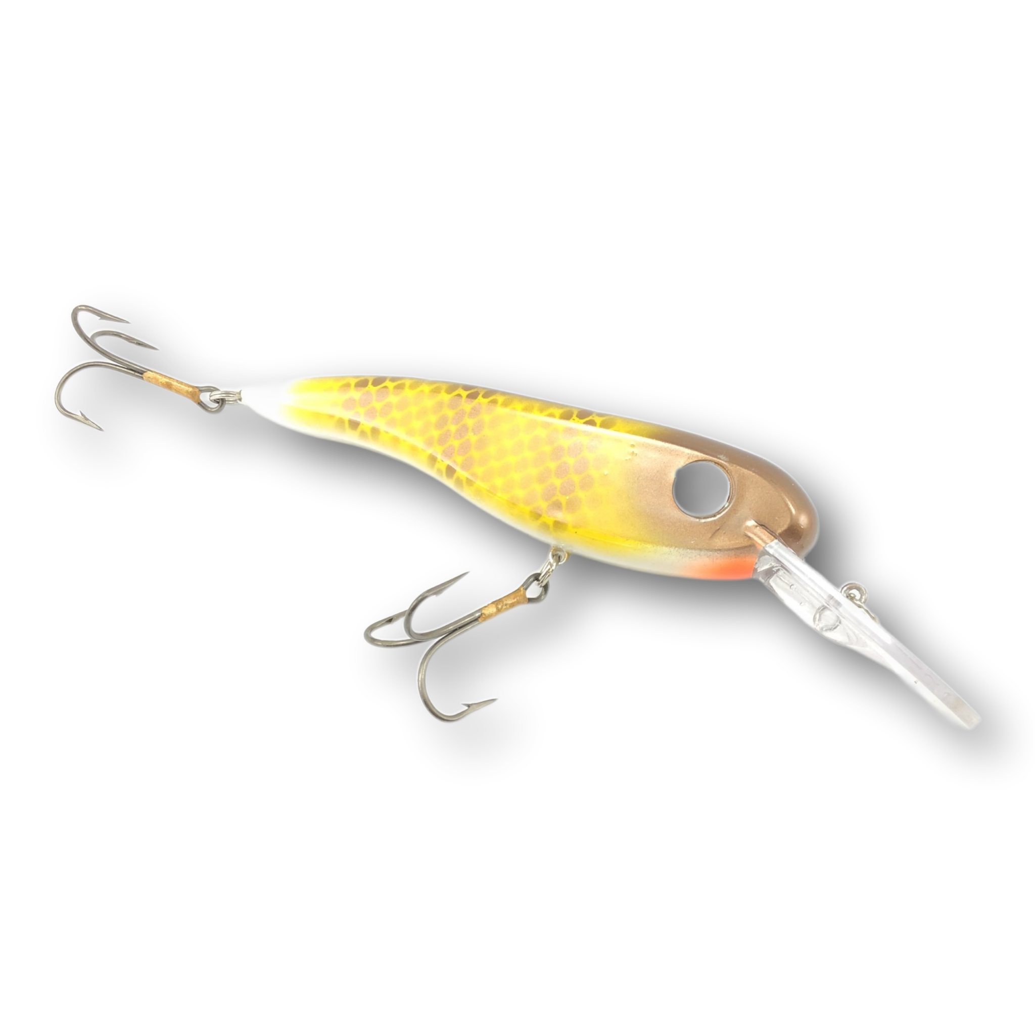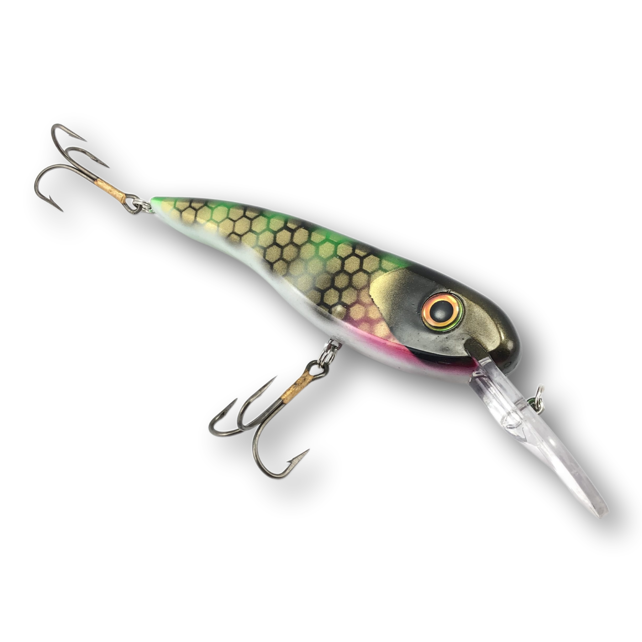 The .22 Long, designed by Chad Harmon, is a proven winner with Guide's Choice Pro Shop and a game-changer for targeting deep water structure. Its aggressive lip angle allows anglers to effectively reach those challenging depths. Once in the water, this bait displaces an impressive amount of water, drawing the attention of predatory fish that rely on their lateral line to detect movement. The unique rattle placement further enhances its appeal, with the pitch and frequency shifting during figure-eight applications to trigger explosive boat-side strikes. This mid-sized crankbait delivers a powerful punch, and its exaggerated belly roll creates an irresistible thumping action that fish can’t resist!