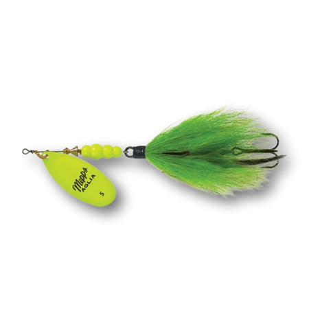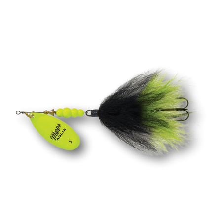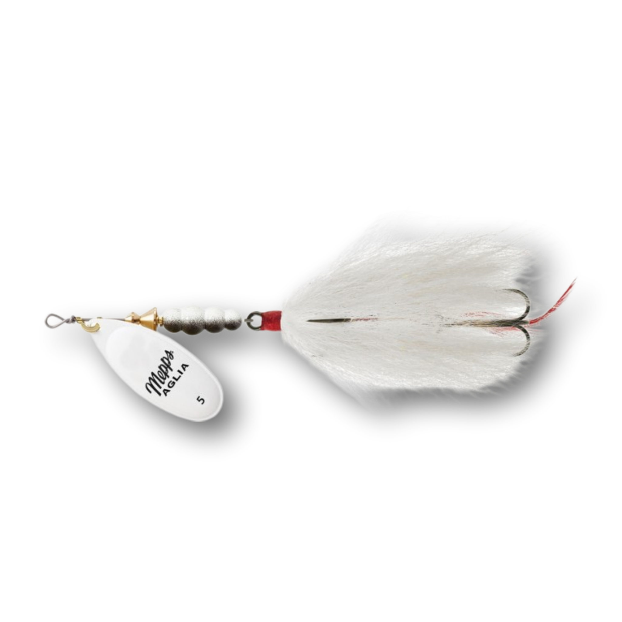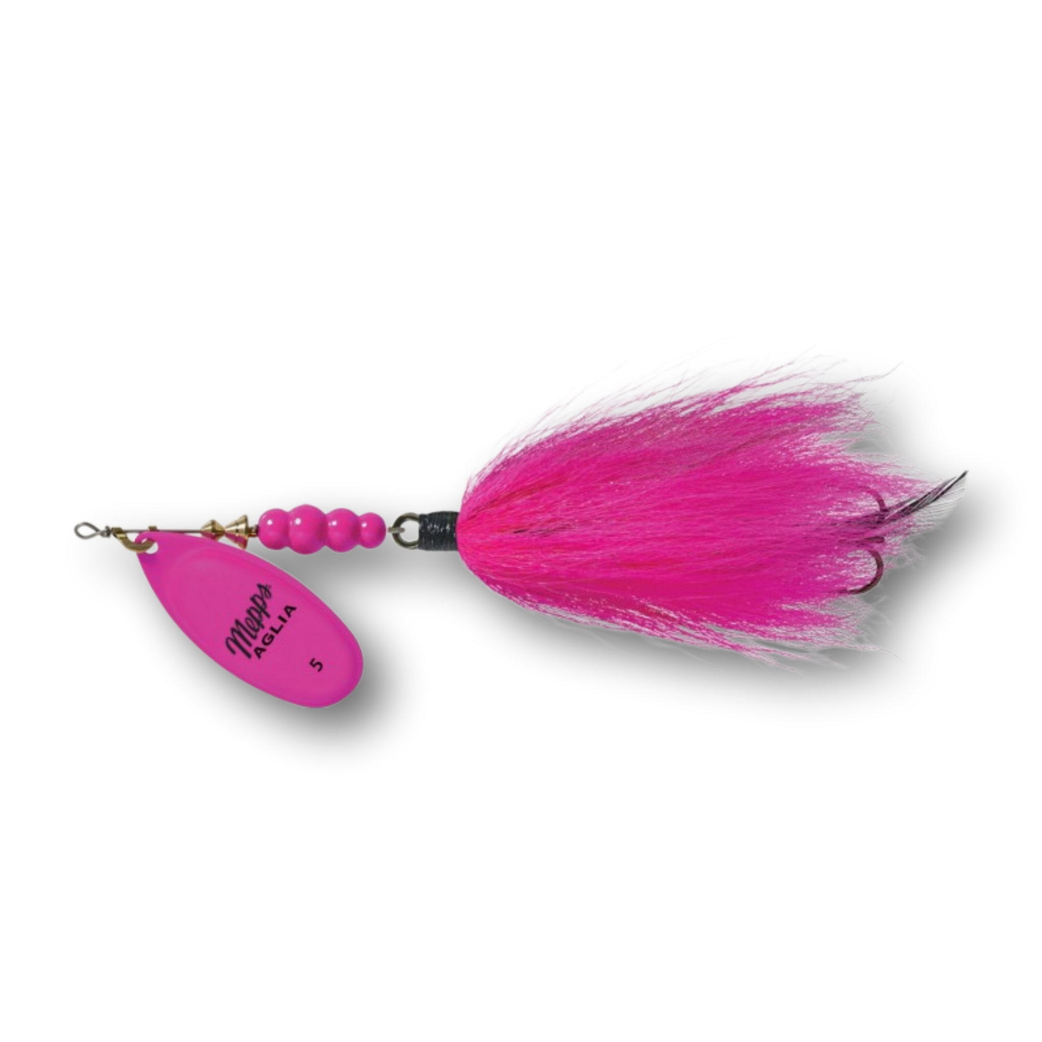 Mepps, the world leader in musky bucktails is now offering a scaled-down model of its classic tandem bucktail. The Mepps #5 Aglia Tandem is perfect for large bass, trophy northern pike and early season musky. All Aglia Tandems feature a heavy-duty #1/0 bronze treble hook with a #2 treble hook trailer.