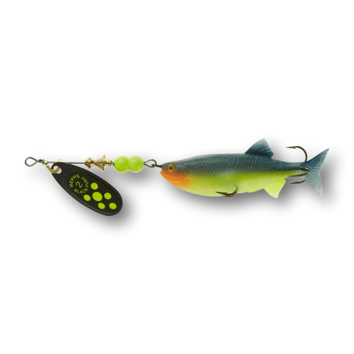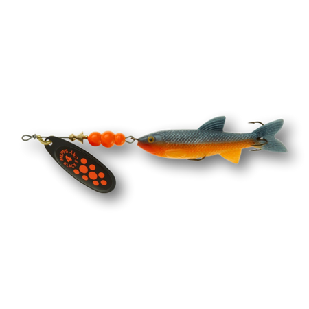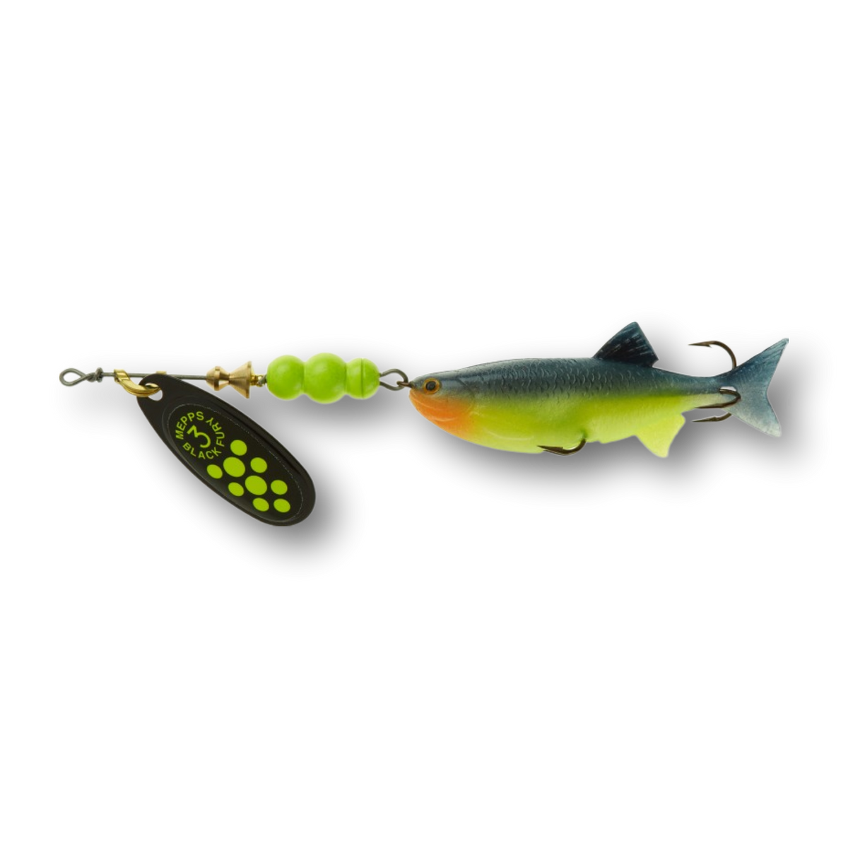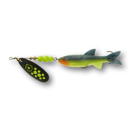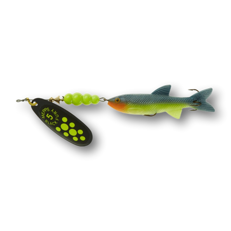 The Black Fury® Mino combines our popular Black Fury® blade with a painted bump body and a shad mino that includes painted accents to match the blade color. Guide's Choice stocks blade sizes #1 - #5 making it perfect for all species, whether you are casting or trolling. The lure runs at mid-depth in the water and has an erratic swimming action which gives the Black Fury® Mino the appearance of an injured bait fish, which predator fish see as an easy next meal.