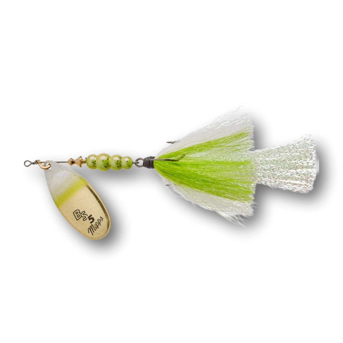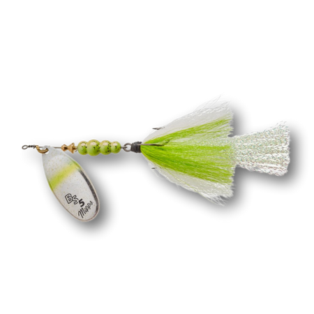 - Perfect balance of premium hand-tied bucktail & flashabou. The flashabou is designed to be more pronounced in the middle, creating extra tail action & more flash when swimming through the water.