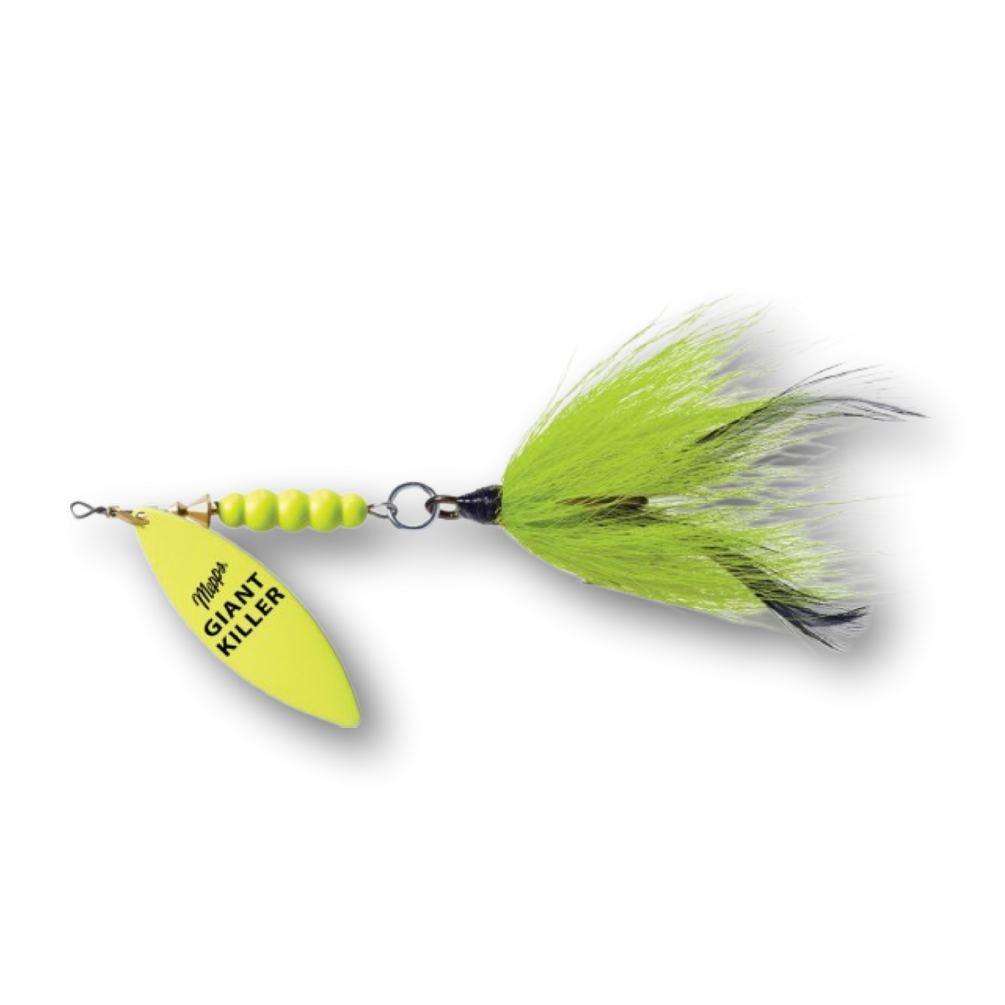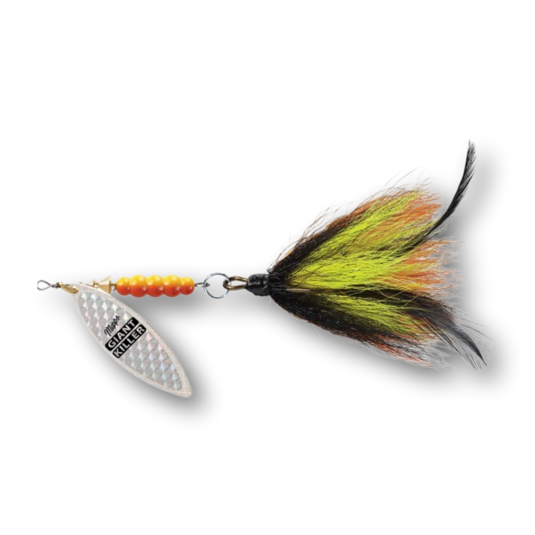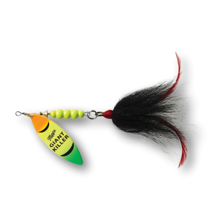 The Mepps Giant Killer is an extremely versatile big-game lure that is effective in both fresh and saltwater. Bucktail Giant Killers are top producers of musky and northern pike. They also will catch striped bass and other saltwater predators.