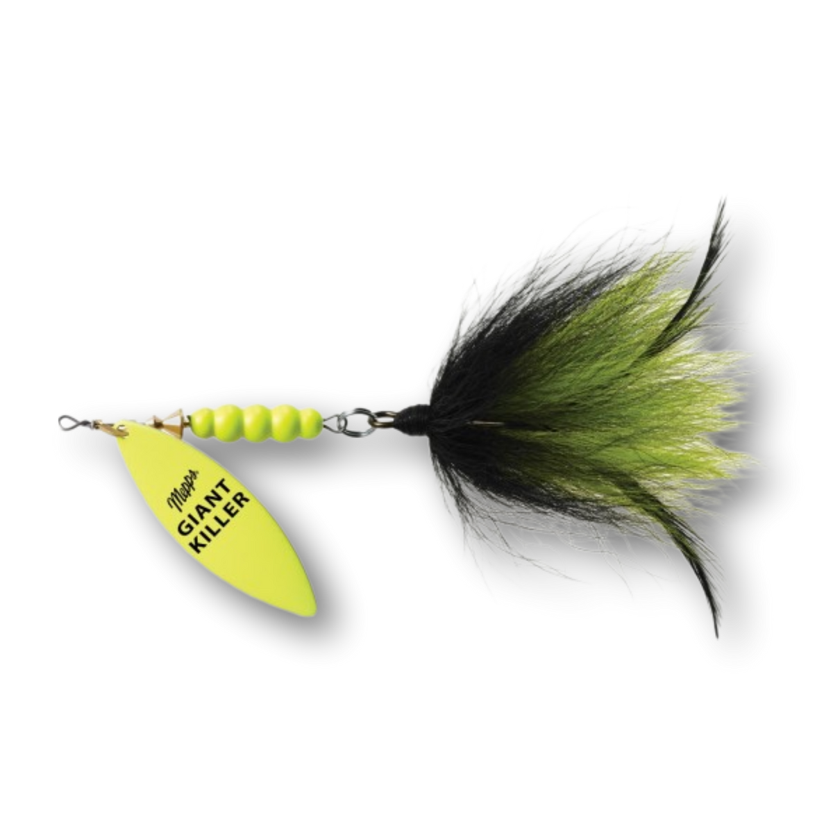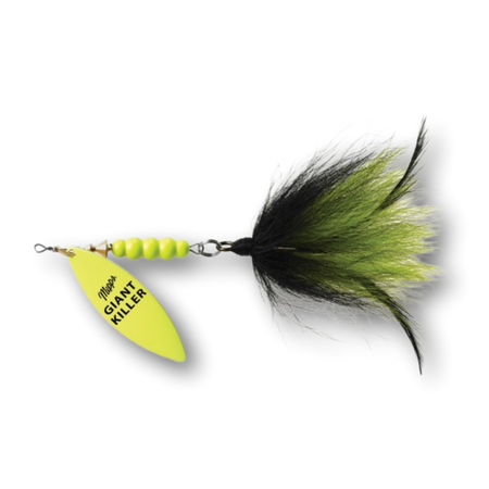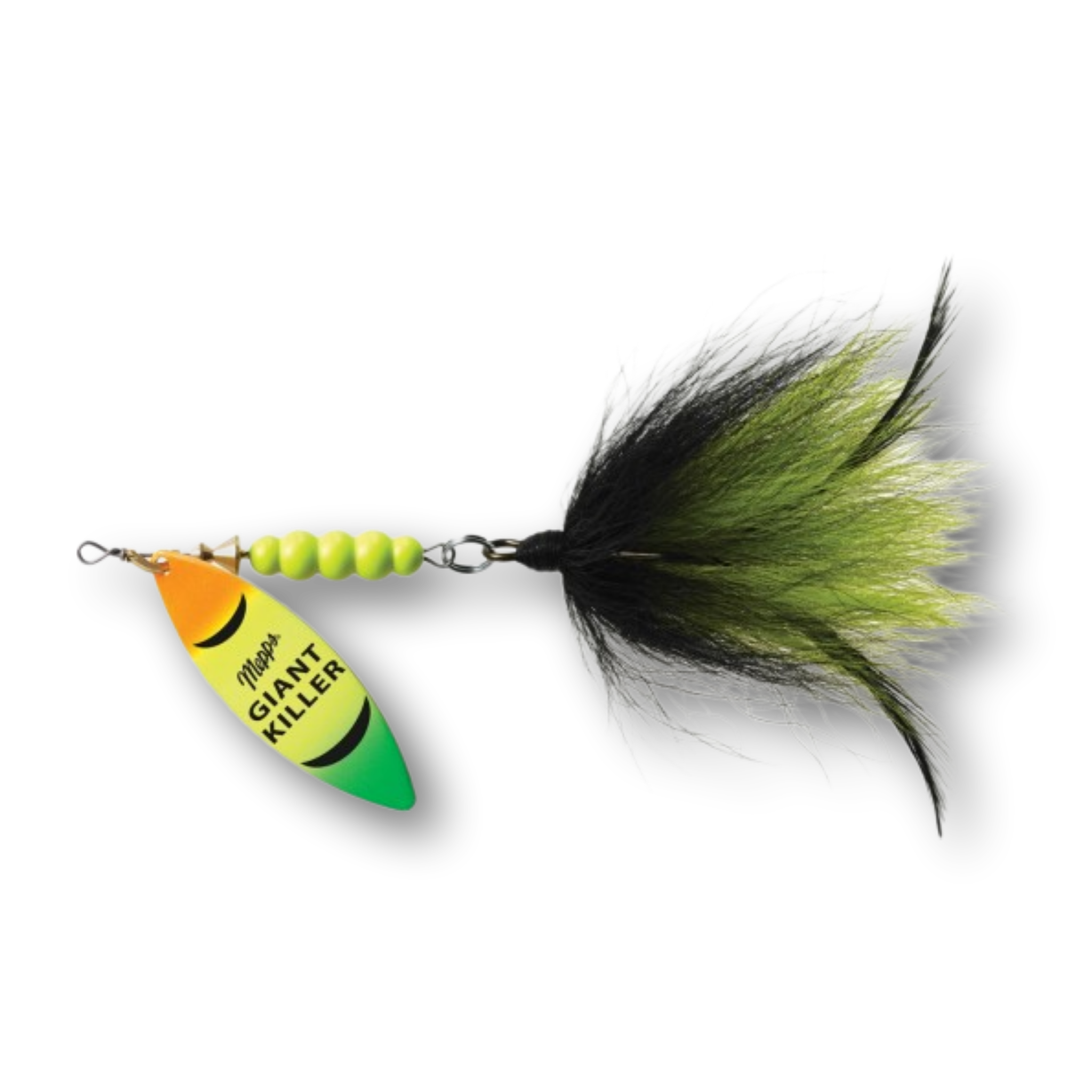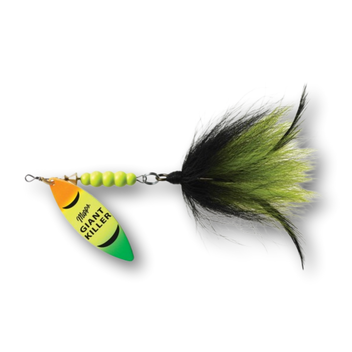 The Mepps Giant Killer is an extremely versatile big-game lure that is effective in both fresh and saltwater. Bucktail Giant Killers are top producers of musky and northern pike. They also will catch striped bass and other saltwater predators.