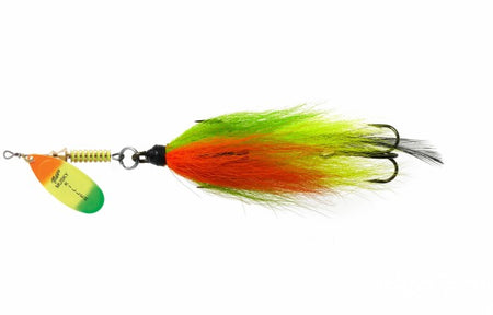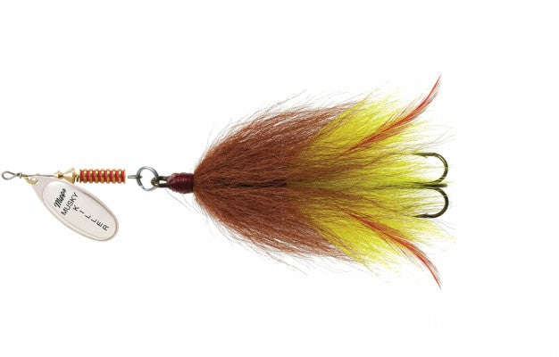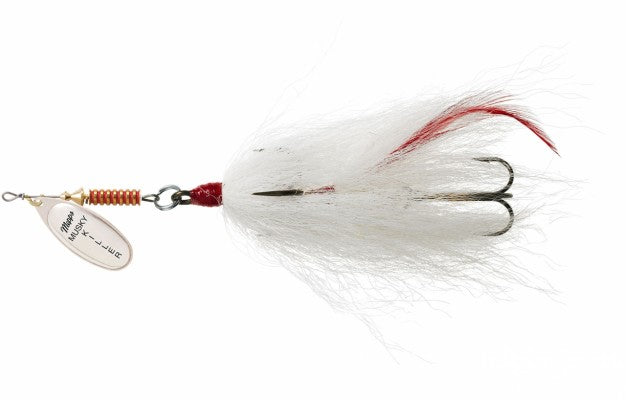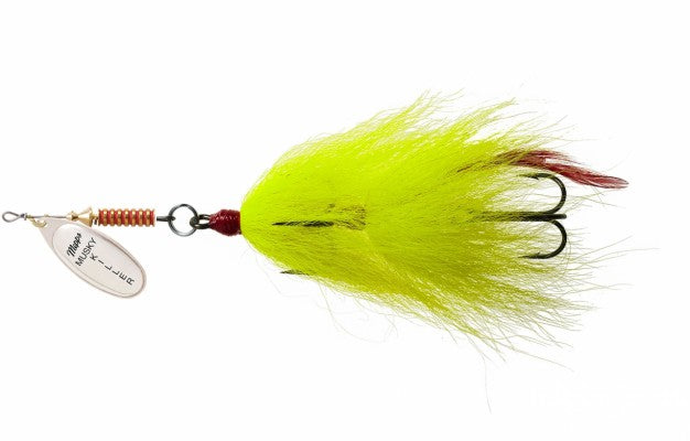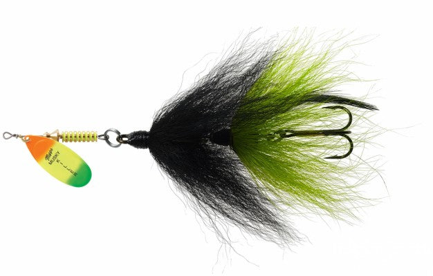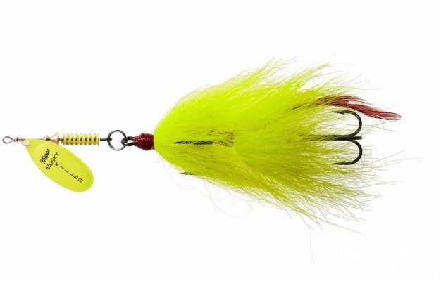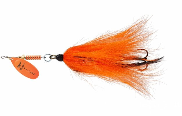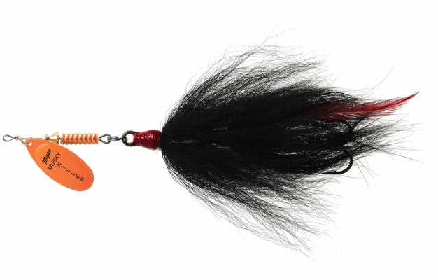 The Mepps Tandem Musky Killer features a extra heavy-duty super sharp premium 5/0 hook and heavy-duty 3/0 trailer hook. This is the perfect lure for trophy musky and monster northern pike when a larger profile lure is needed to match the size of the the forage.
