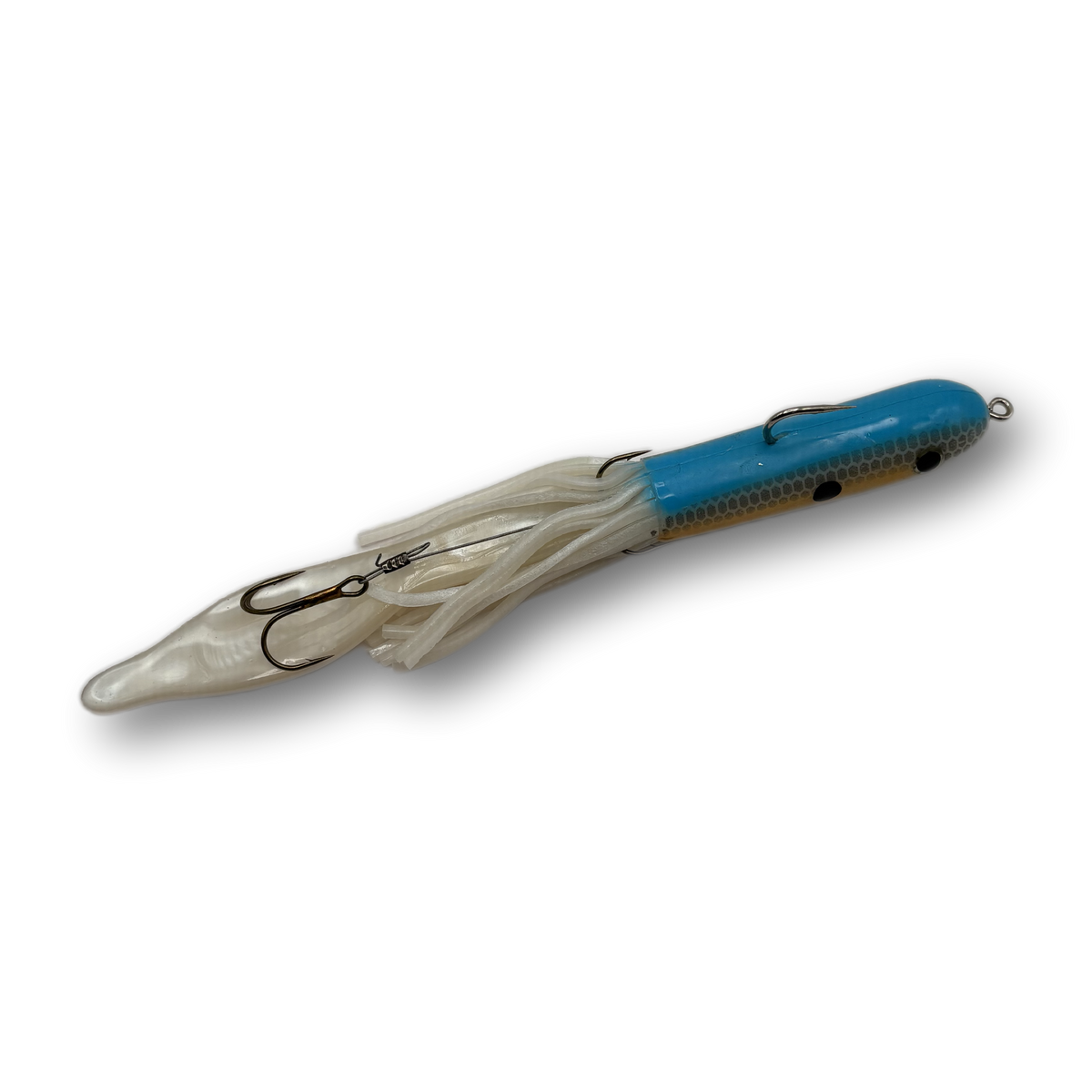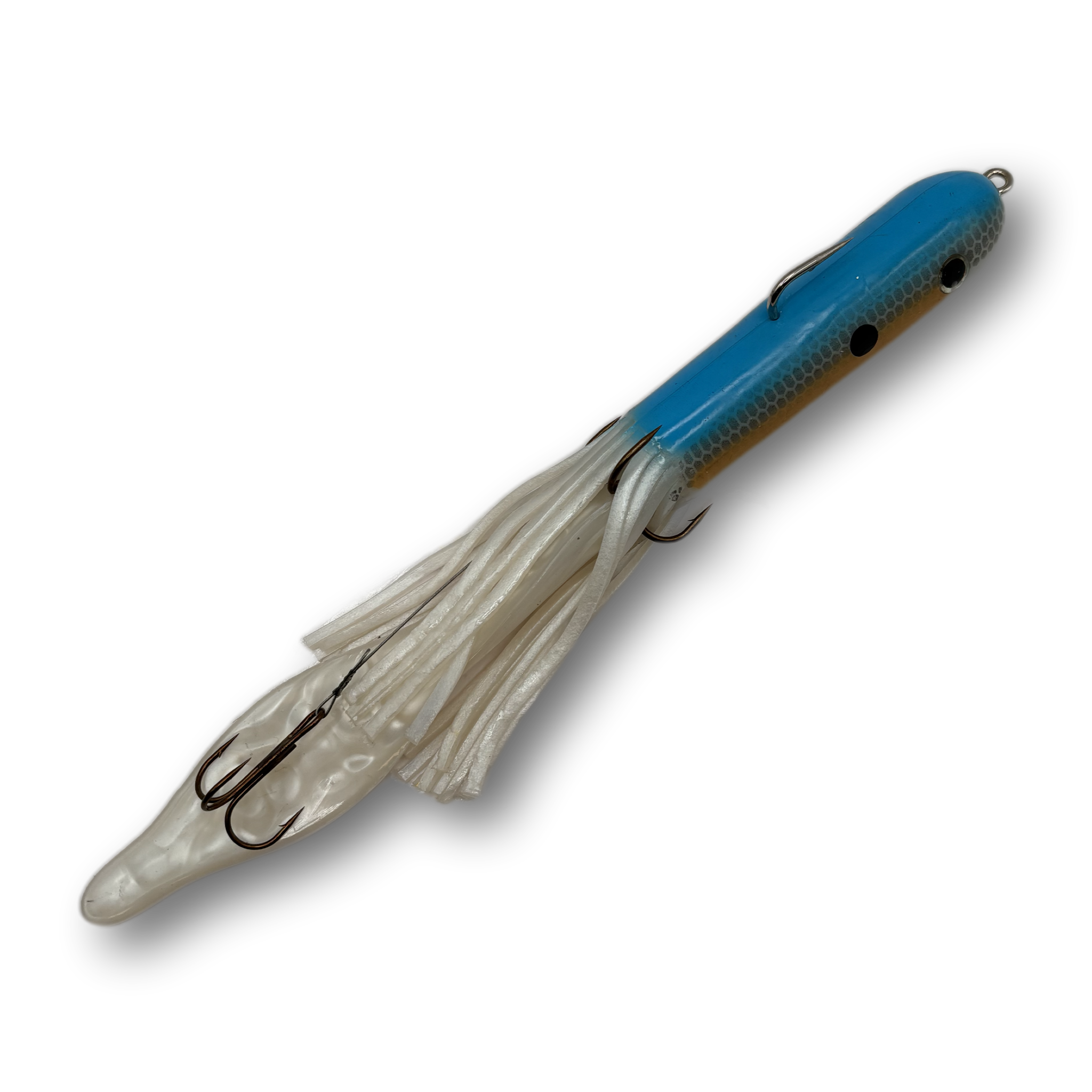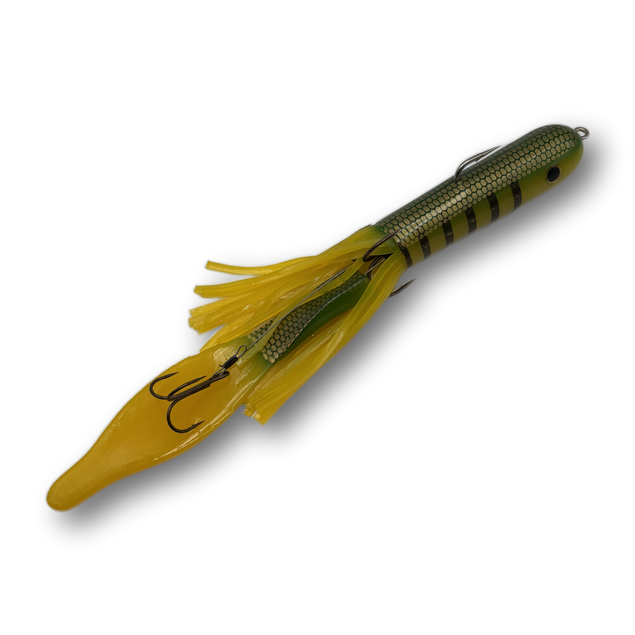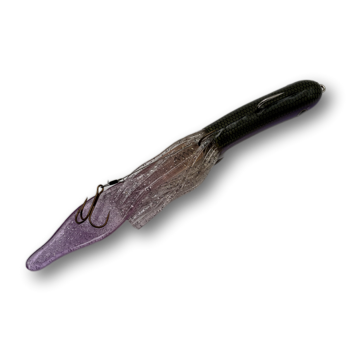 The Musky Innovations Jimmy, a unique tube-and-reaper-tail hybrid, is your go-to for luring fish to your boat. Its dynamic action allows flexibility—jig it smoothly like a tube or twitch it sharply like a jerkbait. Available in seven colors, Guide's Choice Pro Shop is a top spot to grab this hard-to-find gem.