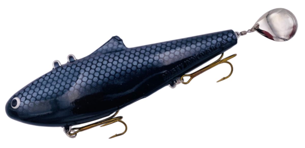 The Musky Innovations Rippin Dawg, measuring 10" (including the blade) and weighing 5.7 oz., is a must-have bait for musky anglers who favor high-energy, aggressive techniques. Designed with a unique hard-body construction and a spinning blade, the Rippin Dawg delivers intense flash, vibration, and water displacement. Its lifelike action makes it irresistible to muskies prowling for their next meal.