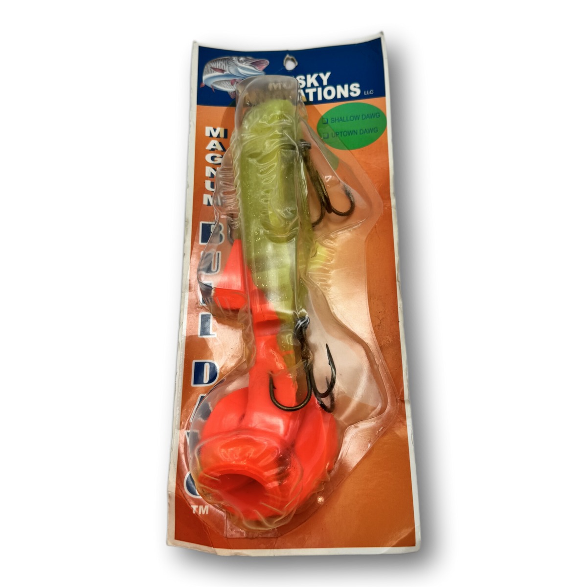 The power of the Bull Dawg is the way it displaces water and the way it "feels" to the fish. The fish usually cannot get conditioned to Bull Dawgs. As the pro staff puts it, "there is no wrong way to fish a Bull Dawg, just throw it out, work it in, and hold on!"