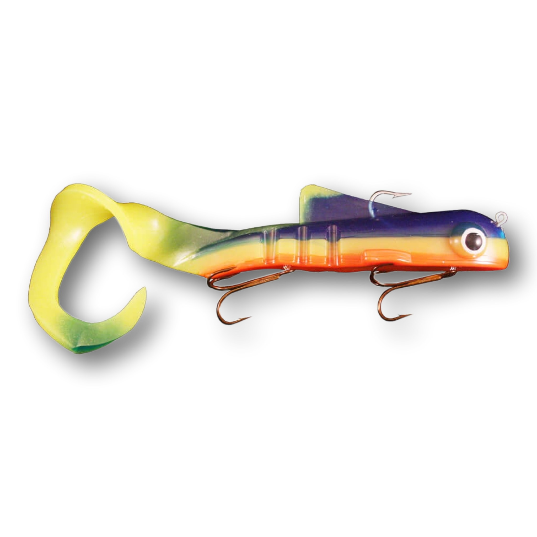 Created in 1993, the Bull Dawg is the original soft plastic jerk bait. One of the most versatile lures on the market, the Bull Dawg can be straight cranked, jerked, twitched, or even trolled. A favorite technique is to rip the bait with a rod sweep, then pause and repeat. The strike often comes on the pause. Do this technique fast in warm water and slow in cold water. Set the hook hard when you feel anything different.