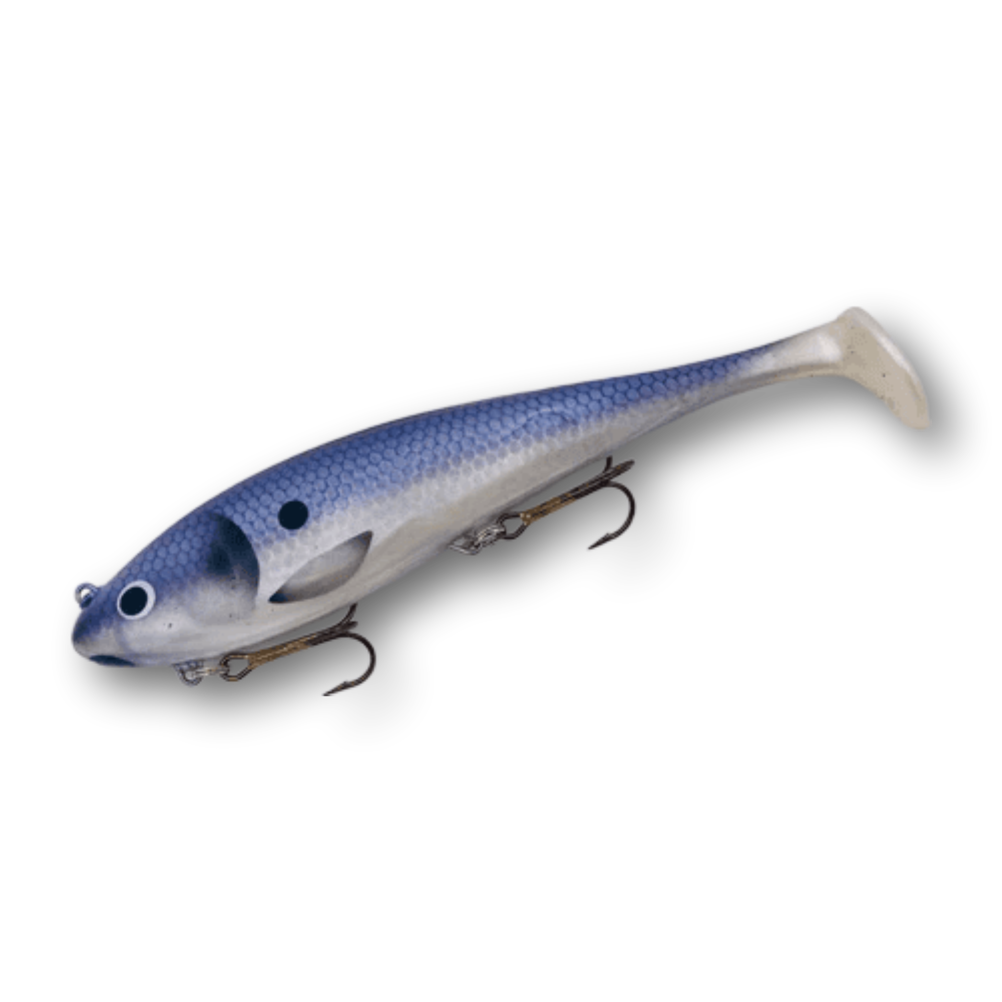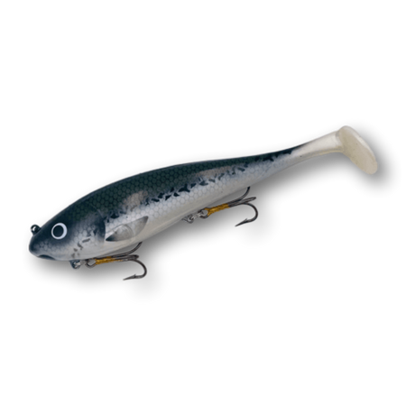 Designed by swim bait guru Luke Ronnestrand. Forward front hook design for better hook ups especially on head hunting fish. Flexible "pro" harness for better swimming action and maximum thump. Straight retrieve or pull pause, still swims on the fall.