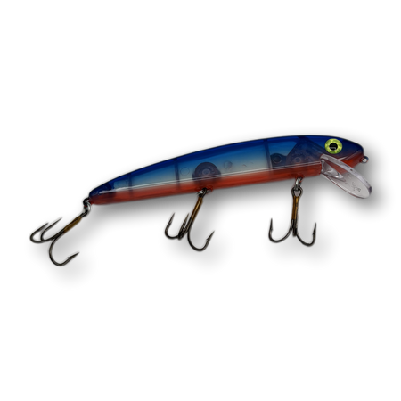 The 8" Jake is the perfect middleweight champion in the Jake lineup—big enough to tempt trophy-class muskies, yet versatile enough for a wide range of conditions. With its flat-sided body and custom-designed lip, the 8" Jake delivers an aggressive wobble and flash that mimics a wounded baitfish struggling to swim upright. That action draws the attention of hungry predators from a distance.