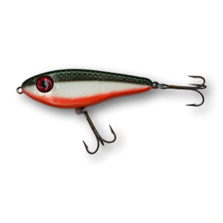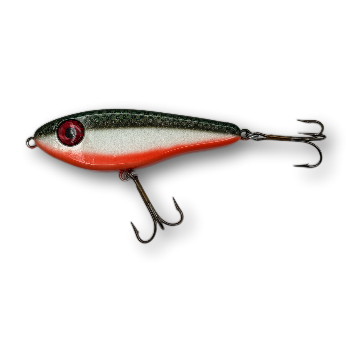 The Magic Maker™ is a walk-the-dog glide bait that fish simply can’t resist. The original version was constructed of wood, carefully weighted to provide a wide gliding action with the simple twitch of the rod tip. In 2004 the classic was tooled in a plastic version with a rattle, one of the first plastic glide baits on the market. The result was a consistent lure that glides wide, from side to side, and rolls with a legendary belly flash that drive fish insane. The plastic version is more durable and holds up fish after fish. The tough ABS plastic minimizes tooth penetration resulting in better hooking percentages and the hook hangers never pull out.