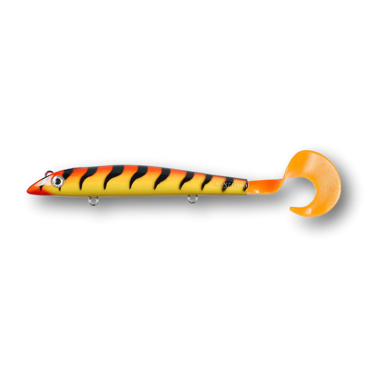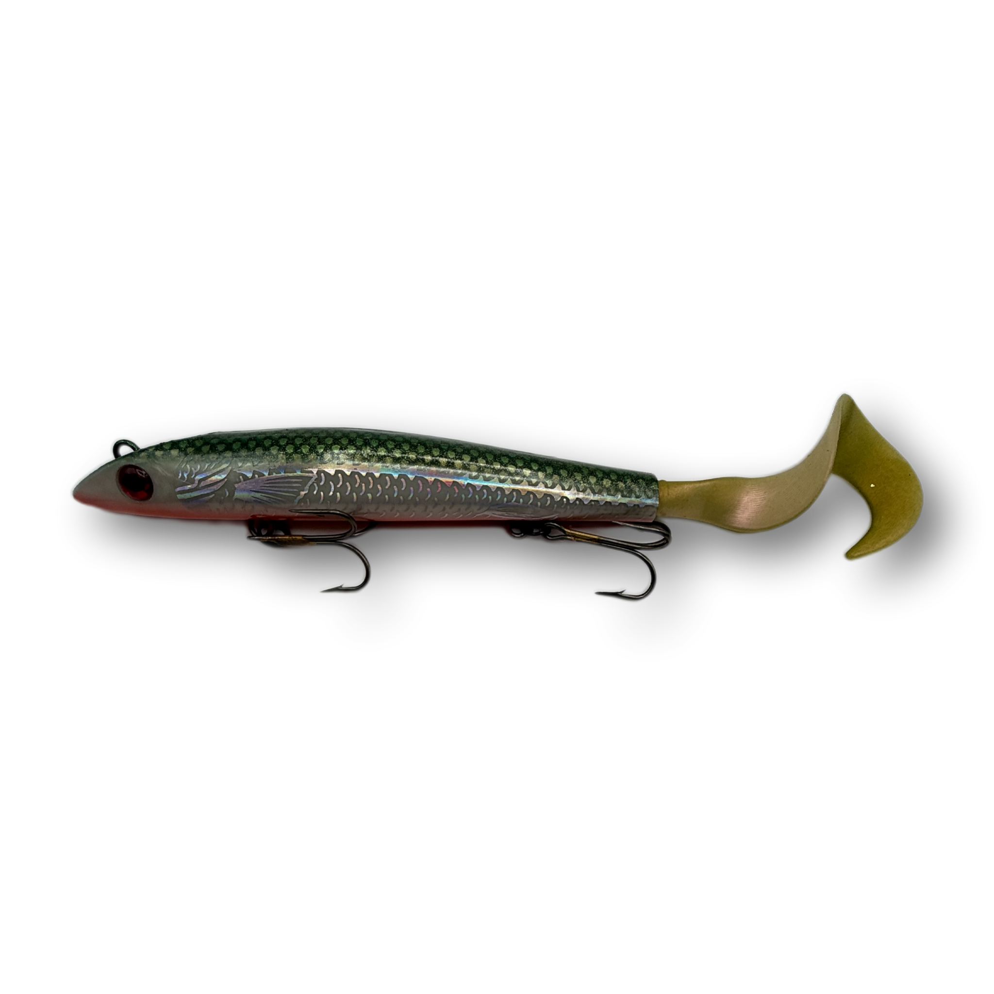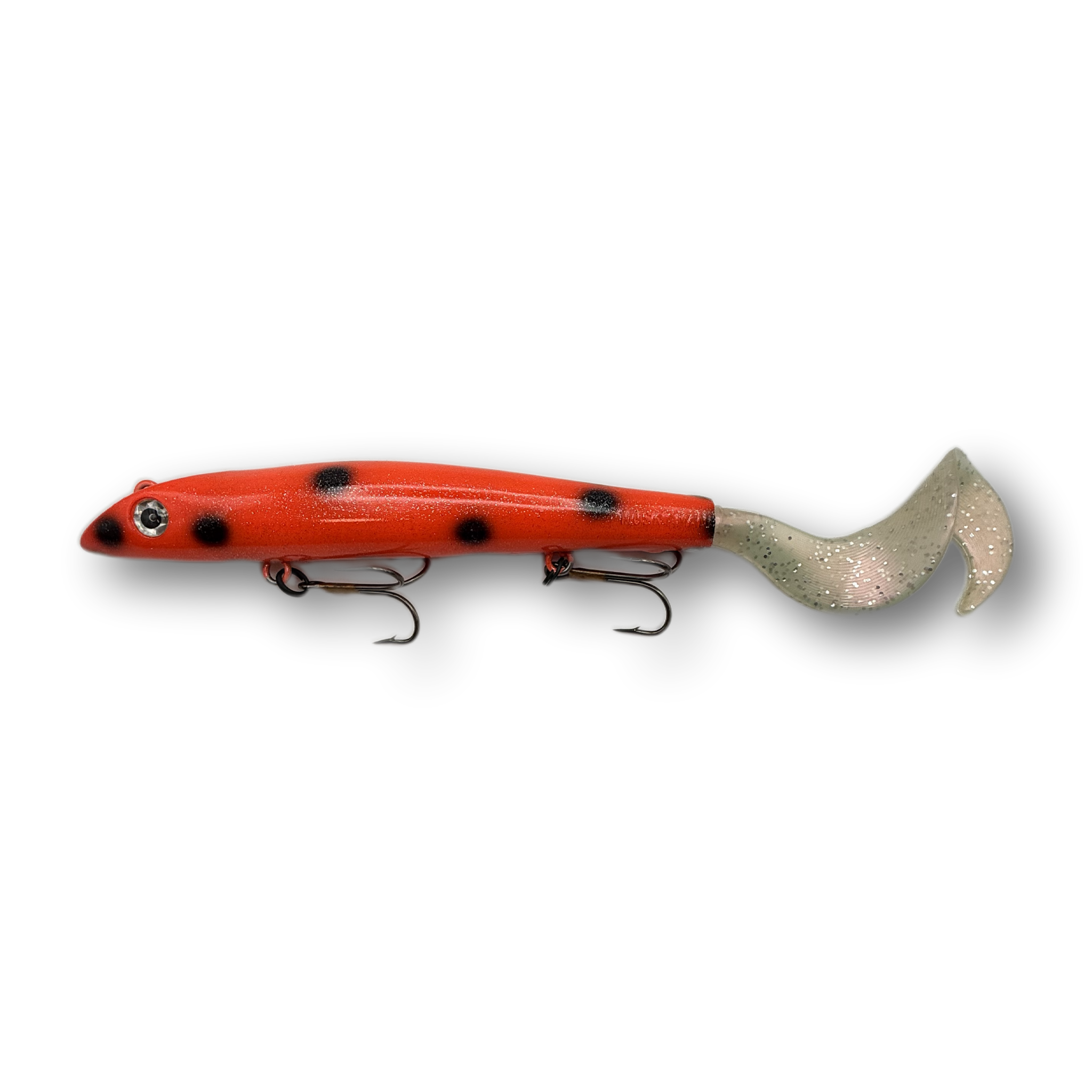 The Squirrely Burt Musky Lure takes the classic dive-and-rise action of the legendary Burt and supercharges it with a lifelike, soft tail for extra movement and vibration. This slow-rising jerkbait darts and hovers unpredictably, mimicking an injured baitfish—exactly what big muskies are waiting to crush. The added tail provides an irresistible wiggle on the pause, making it even deadlier for triggering strikes from finicky predators.