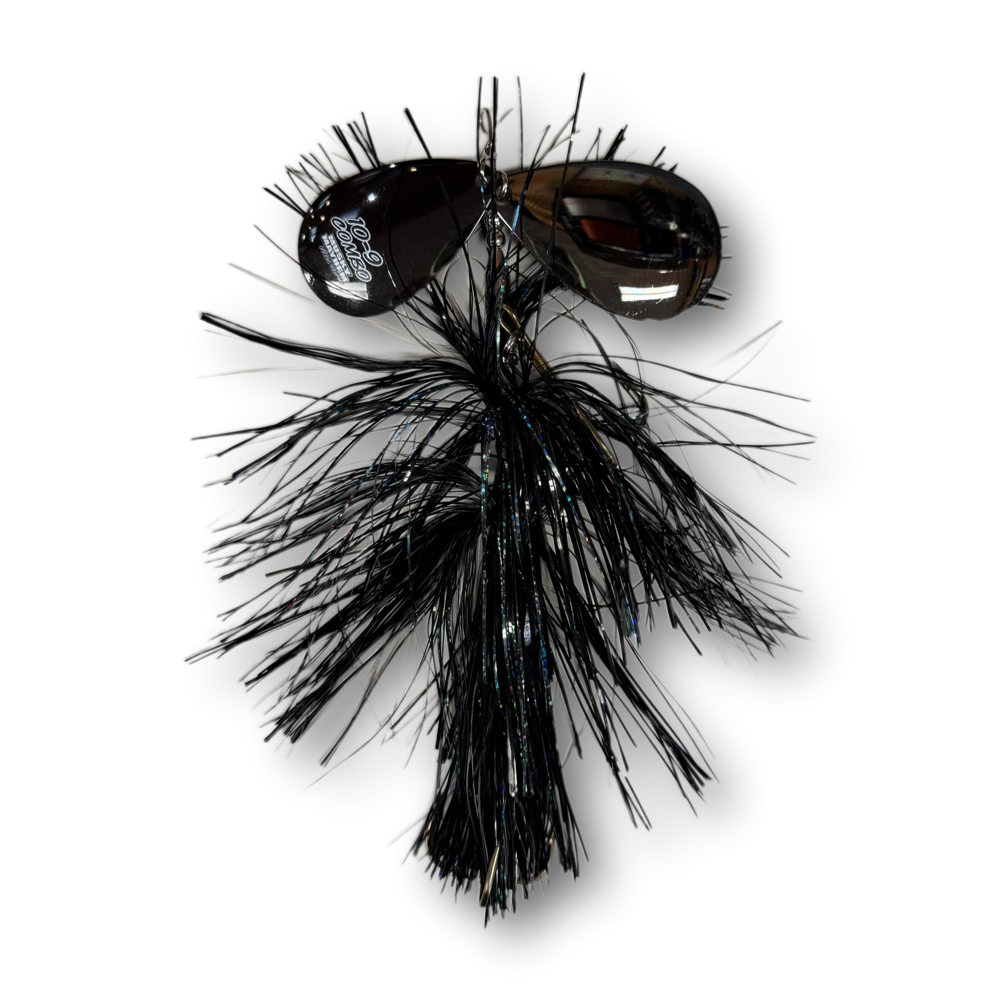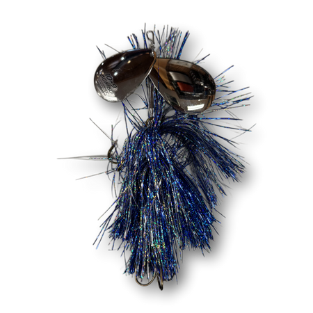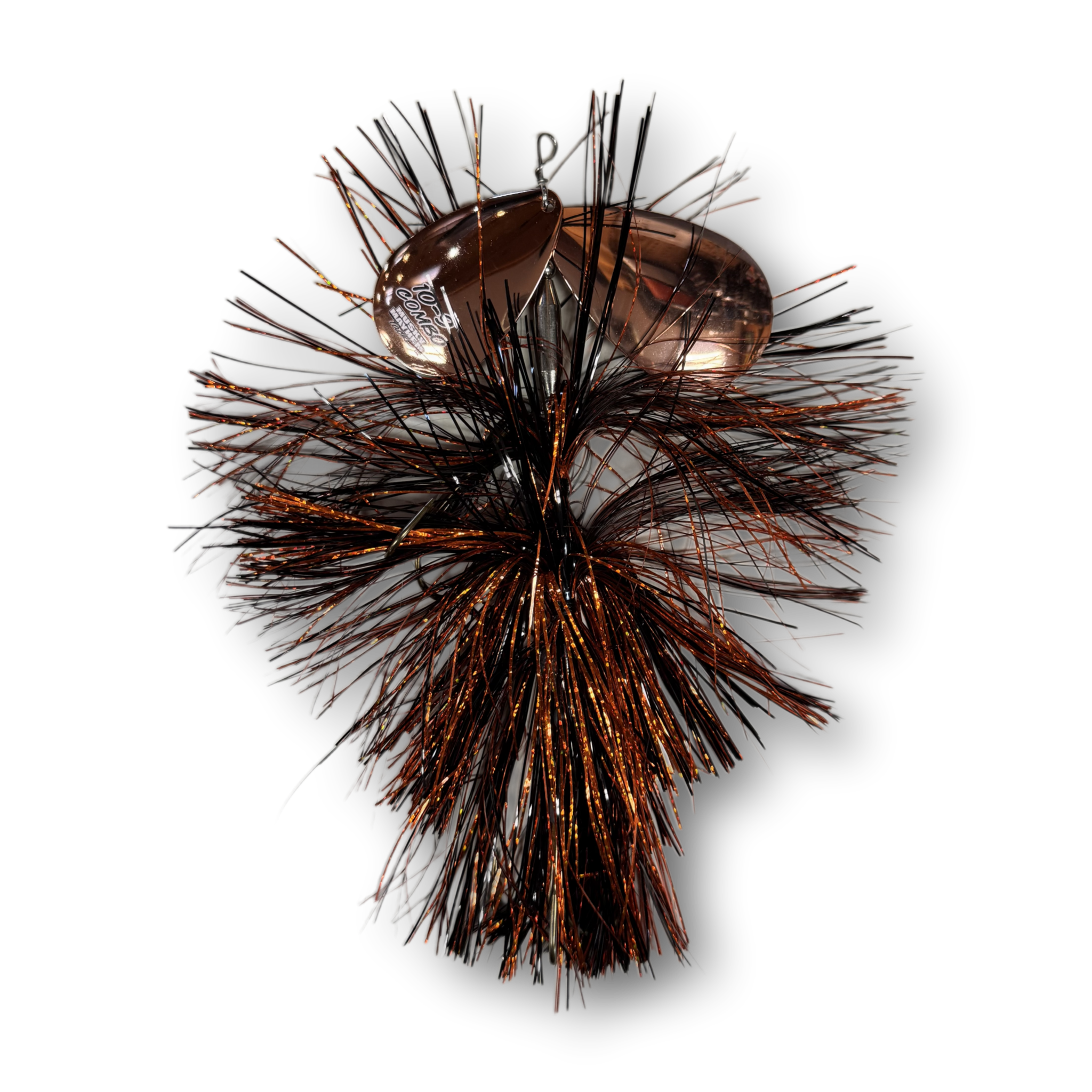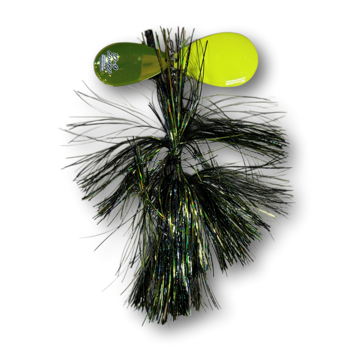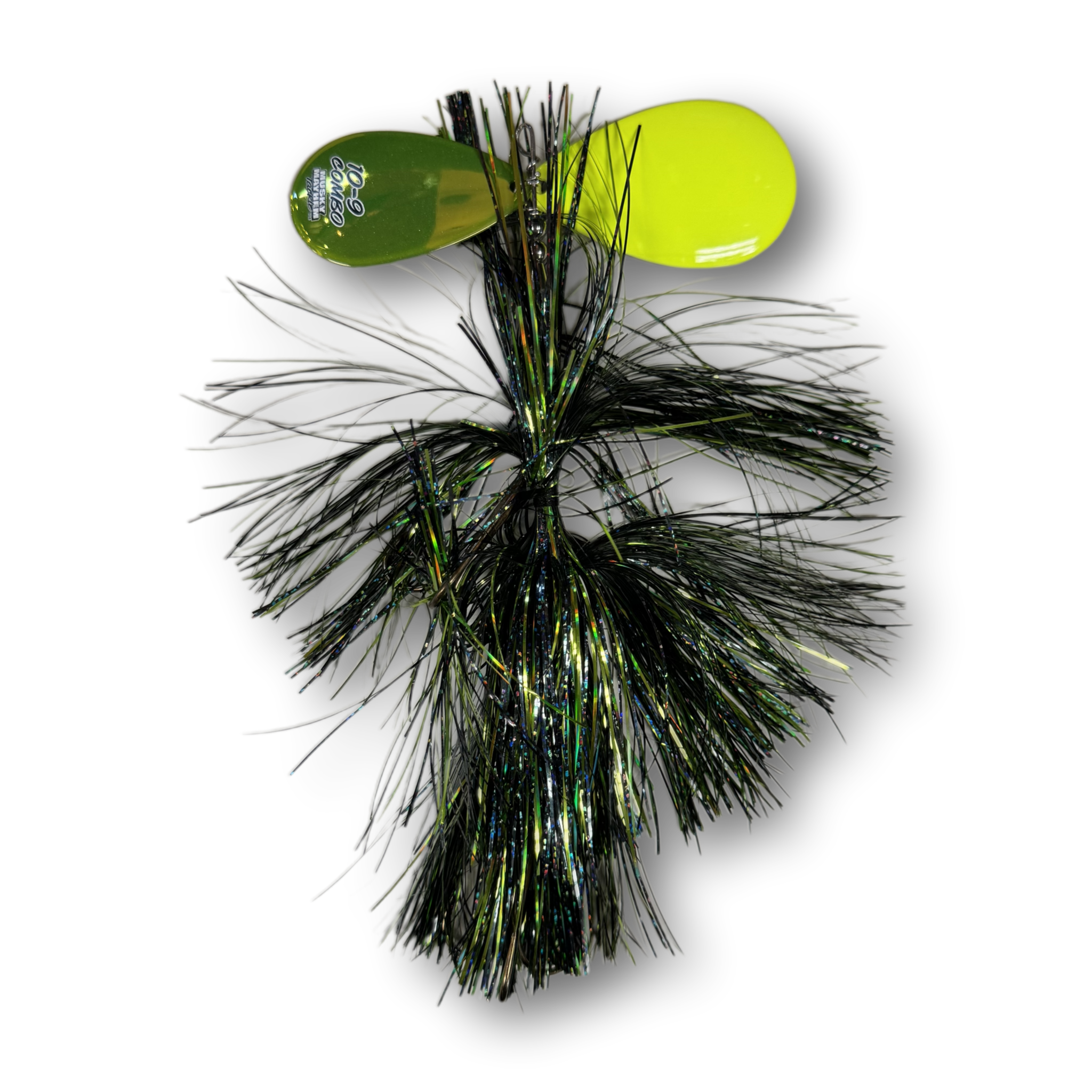 The NEW 10-9 Combo is now available. The 2 different sized spinner blades create a unique thump and vibration in the water all its own. The Classic Flashabou skirting gives it color, lifelike action and a huge profile, putting it right up there next to the Double Cowgirl as the best baitfish simulating inline spinner on the market today. Two 7/0 Mustad hooks give it an excellent hooking percentage, so you are sure to catch the big one.