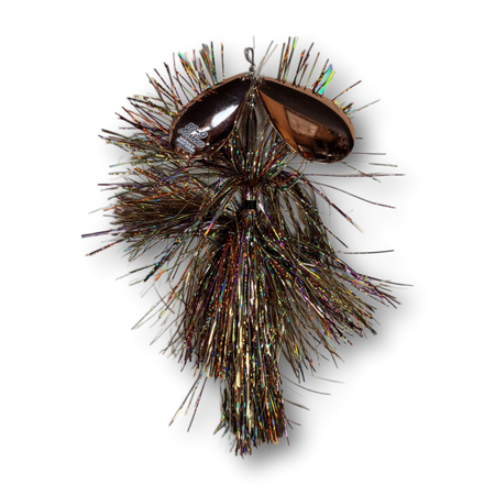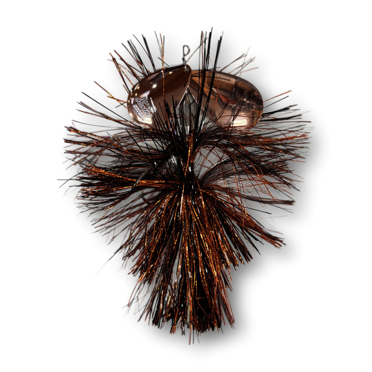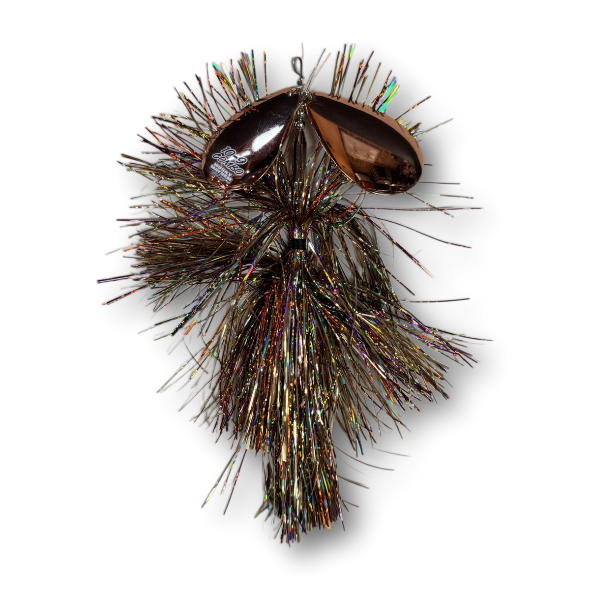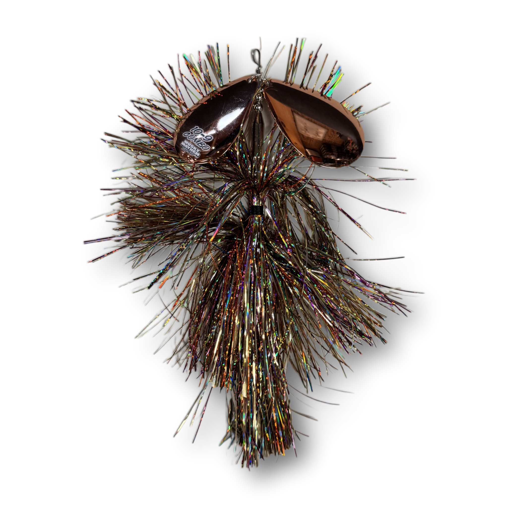 The NEW 10-9 Combo is now available. The 2 different sized spinner blades create a unique thump and vibration in the water all its own. The Classic Flashabou skirting gives it color, lifelike action and a huge profile, putting it right up there next to the Double Cowgirl as the best baitfish simulating inline spinner on the market today. Two 7/0 Mustad hooks give it an excellent hooking percentage, so you are sure to catch the big one.