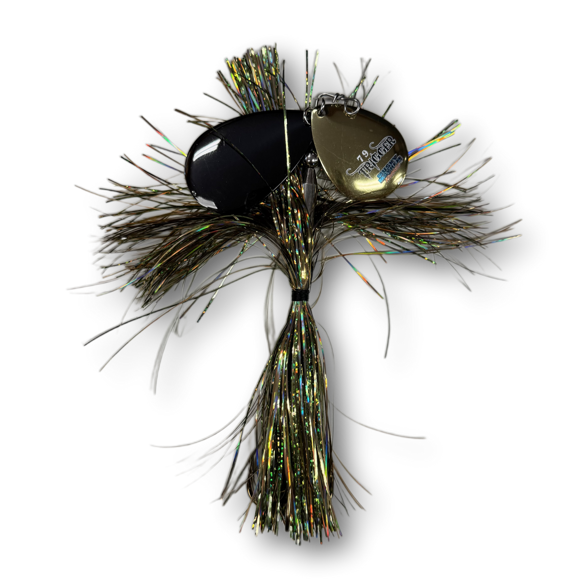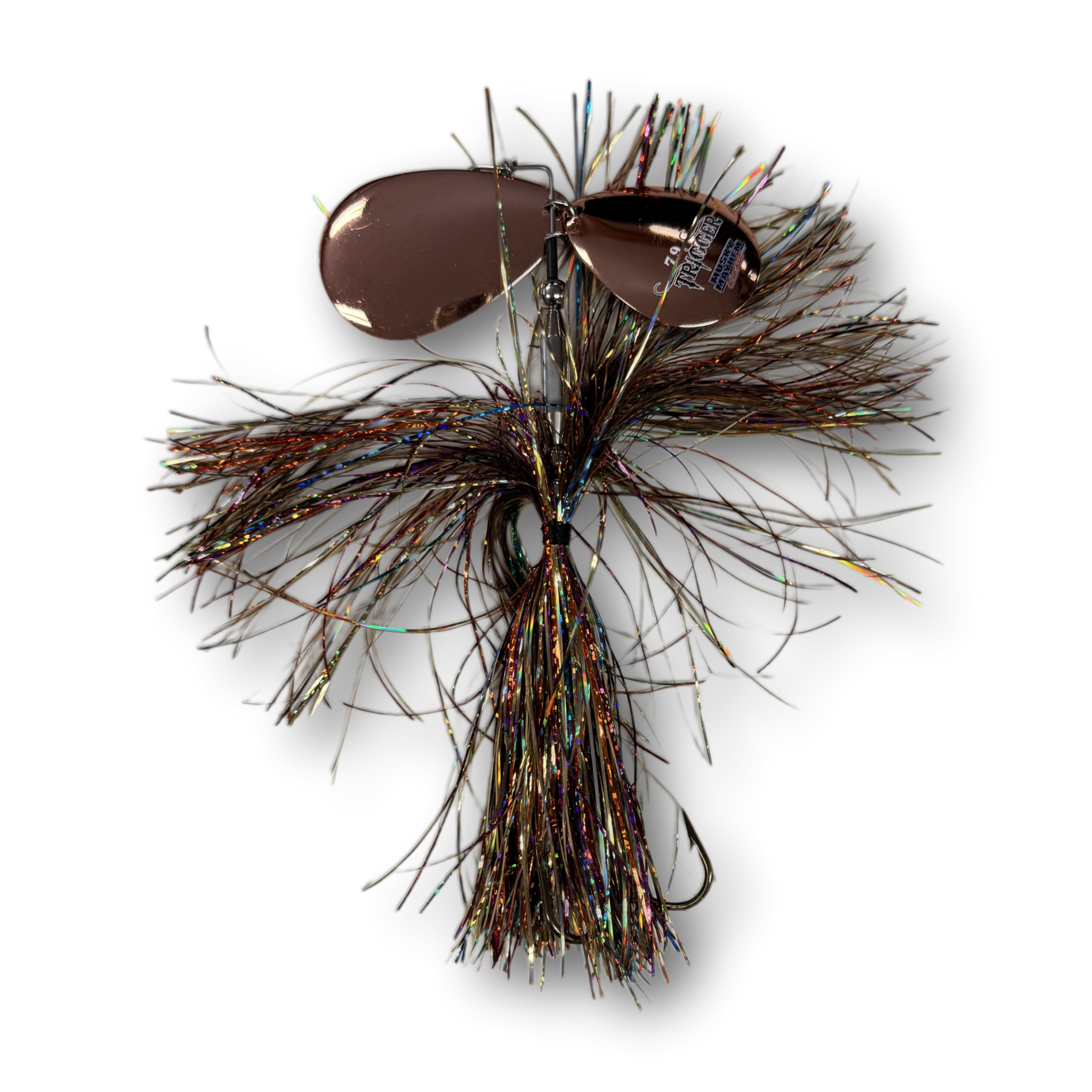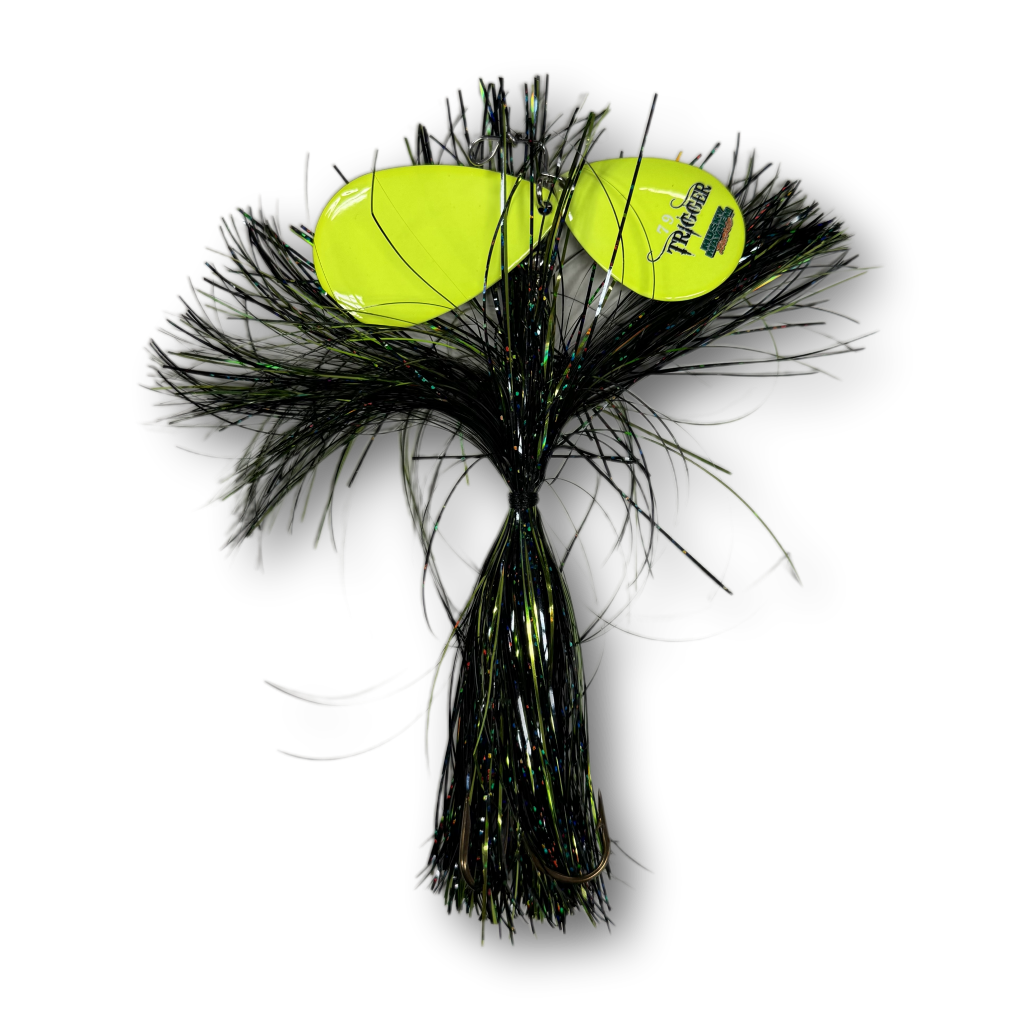 The new 7/9 Trigger isn't your standard staggered bucktail. Its unique loud grind and thump provided by the offset 7 Colorado and 9 Magnum blades drives fish insane. With the same great big fish catching qualities of the Double Cowgirl and Double Showgirl this lure allows you to show the fish something that they've never felt, seen or heard before. Let's just say it really triggers them to bite!