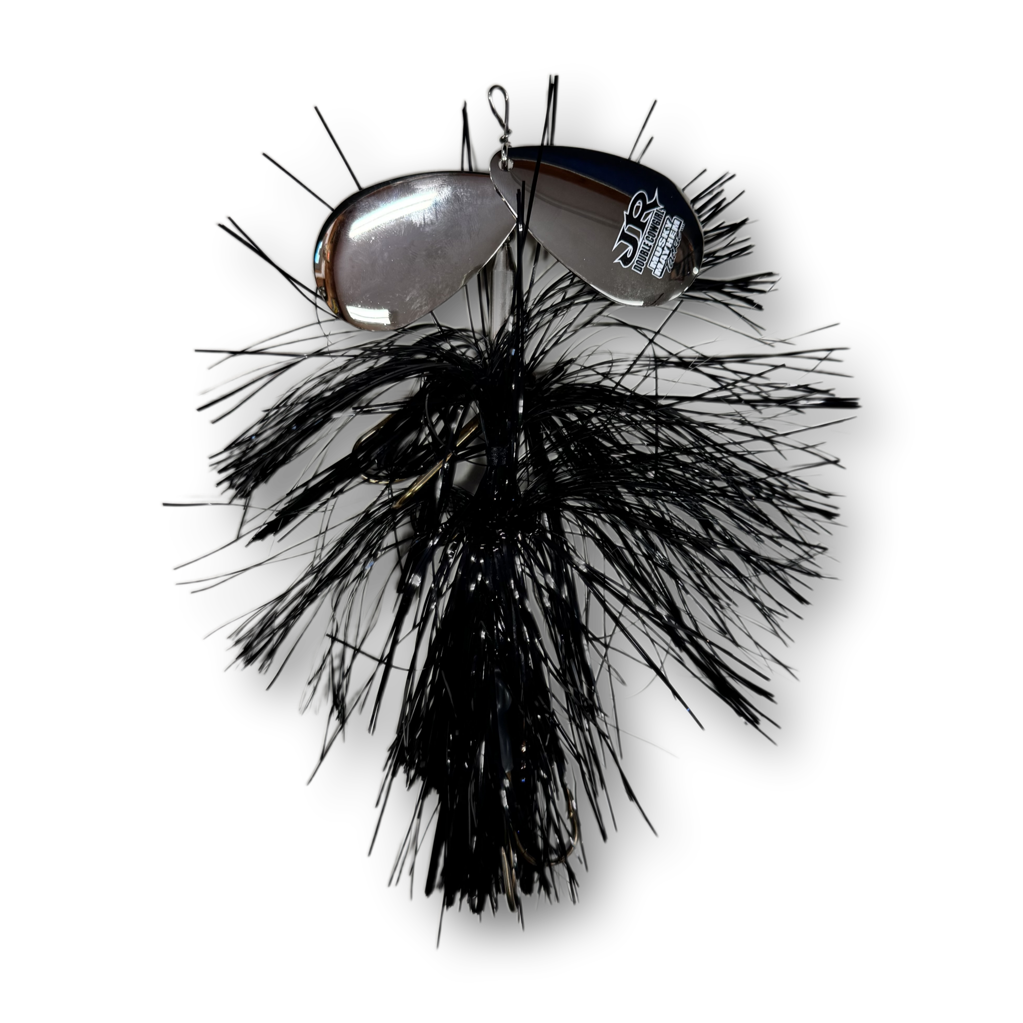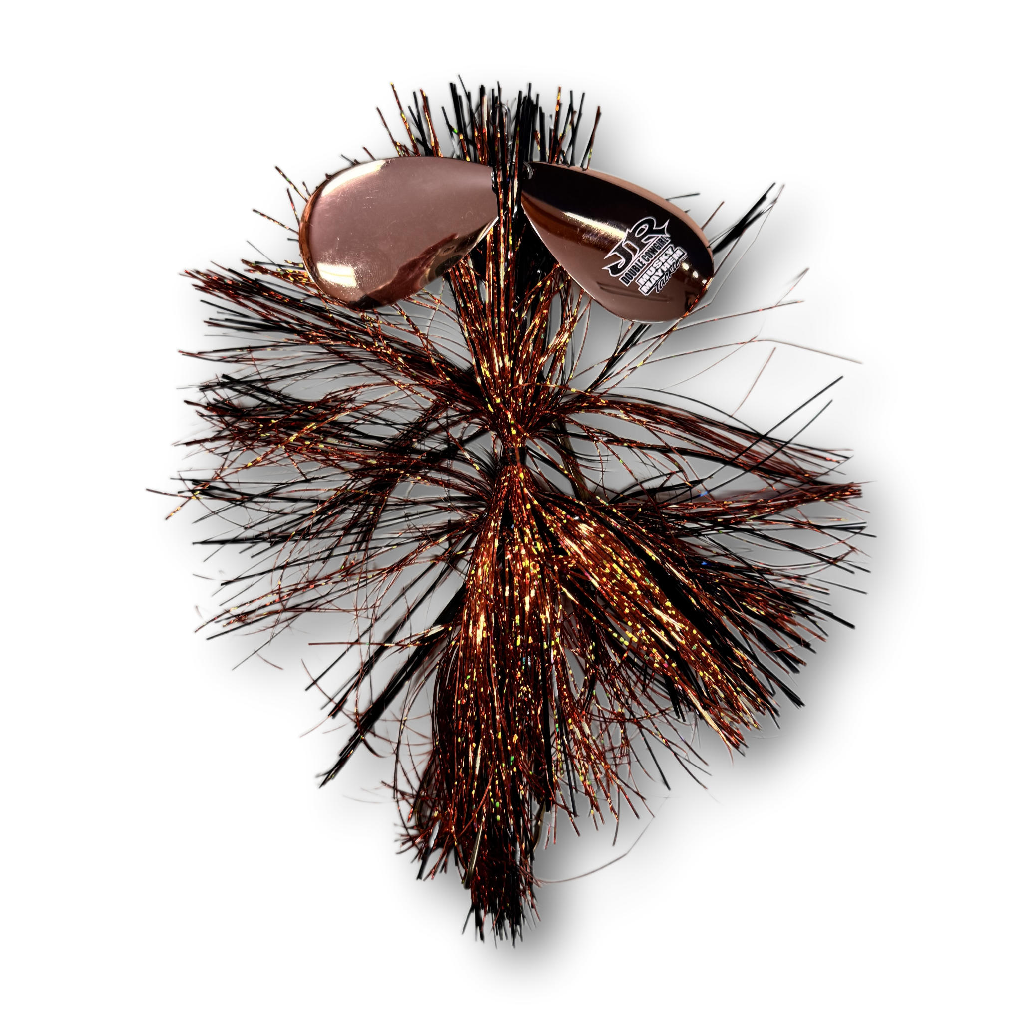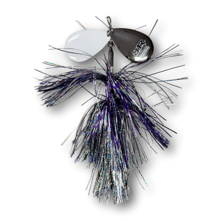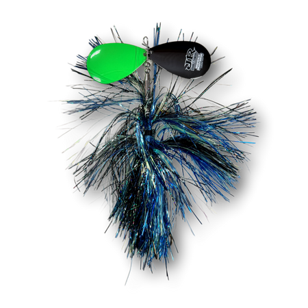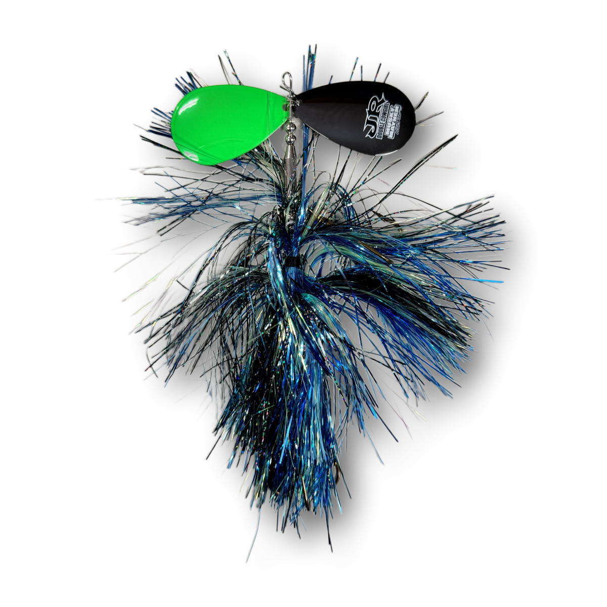 The JR Double Cowgirl is sure to be a big fish lure just like the Double Cowgirl. An inch shorter it sports 10% smaller spinner blades that create a tremendous vibration in the water just like the Double Cowgirl without all the pull. Flashabou skirting gives it color, lifelike action and a huge profile.