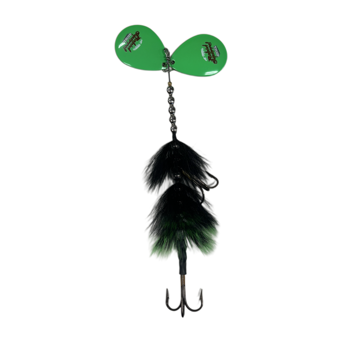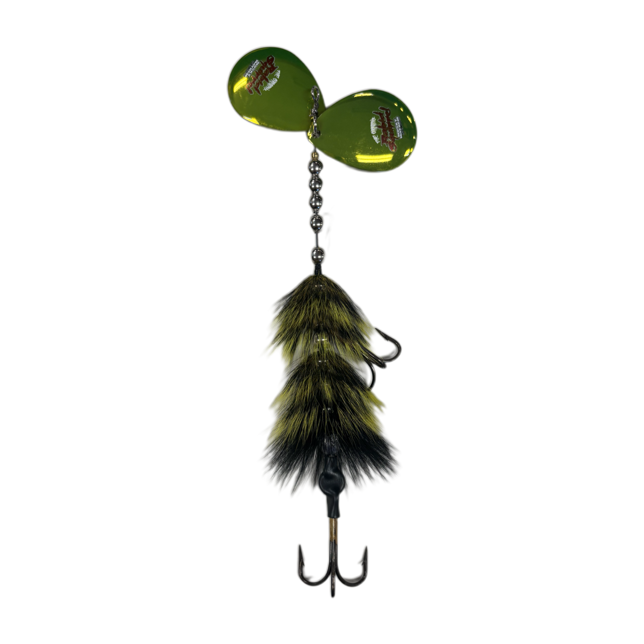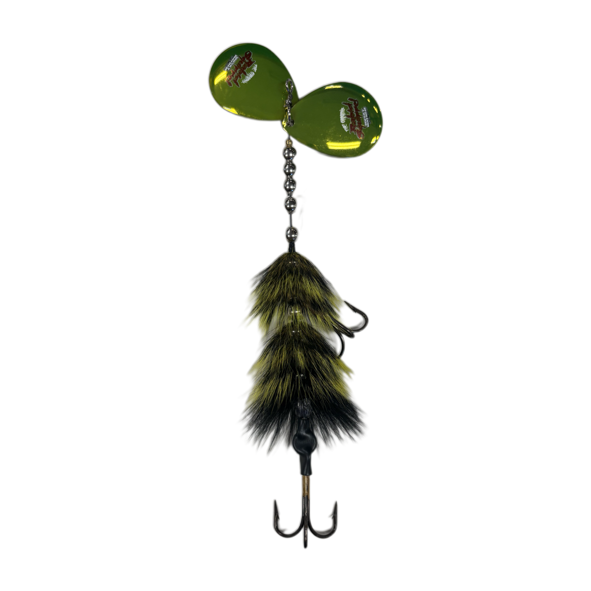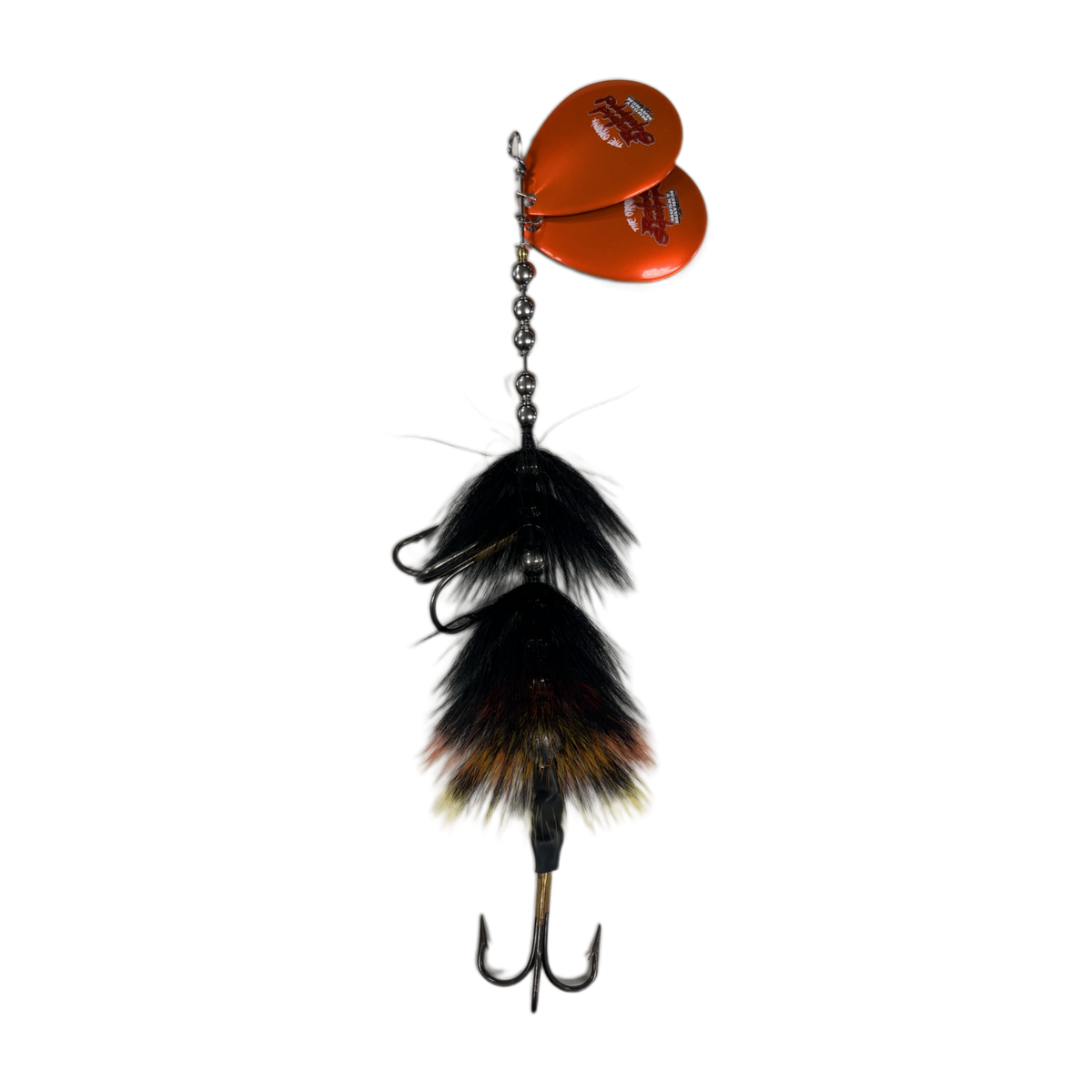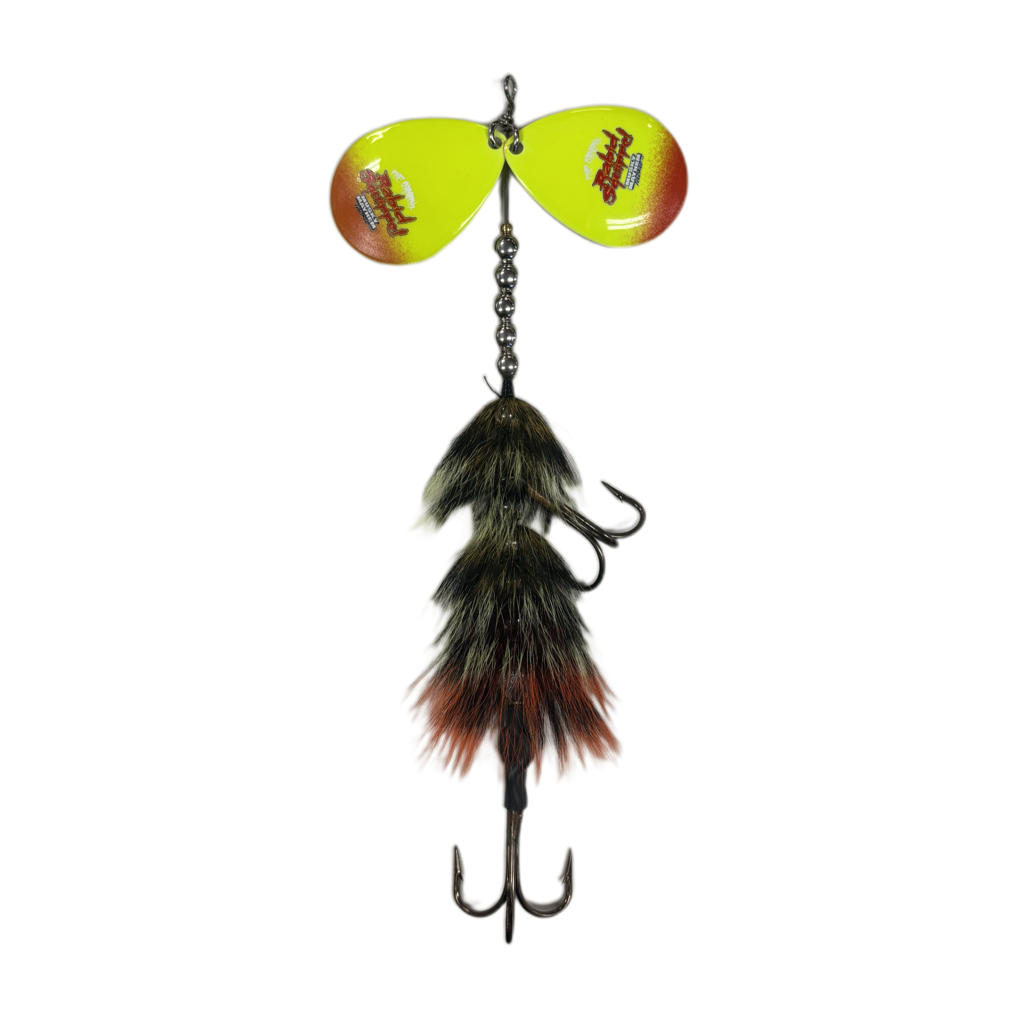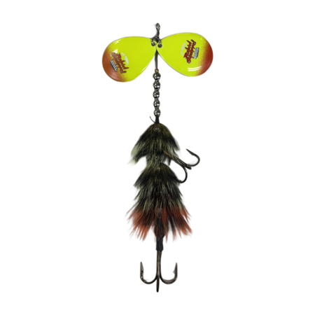 Formerly from Monster Lures, Musky Mahem is the proud new owner of the the original Rabid Squirrel. "We currently manufacture 4 sizes of the Rabid Squirrel. There is an 8" Single Blade, 8" Double Blade and a 5" Single Blade and a 5" Double Blade. This is the same Colorado blade we use on our Double Showgirl. This great bucktail is made with real squirrel hair and is a proven producer from the start of the season until the end. The thump and vibration to really attract the muskies. Both Sizes are great for speed when you are looking for the reaction strike. All sizes are available in 8 colors."