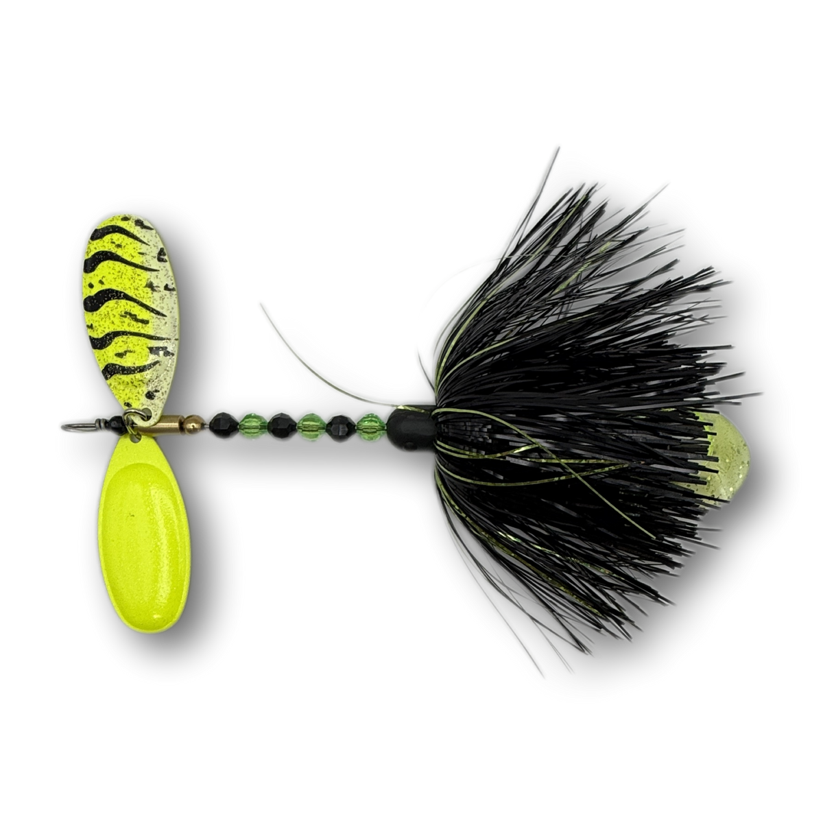 Elevate your musky fishing with the Musky Safari Double Bladed French Hypnotizers, available now at Guide's Choice Pro Shop! Crafted to captivate and trigger aggressive strikes, these lures feature dual blades that produce intense spinning action and flashing reflections, mimicking fleeing baitfish. Eye-catching designs makes them irresistible to muskies looking for their next meal. Built with premium, durable components, the French Hypnotizers are perfect for covering water quickly and enticing strikes in a variety of conditions. Experience the thrill of the strike and land that trophy musky—trust the Musky Safari Double Bladed French Hypnotizers to turn your day on the water into a legendary catch!