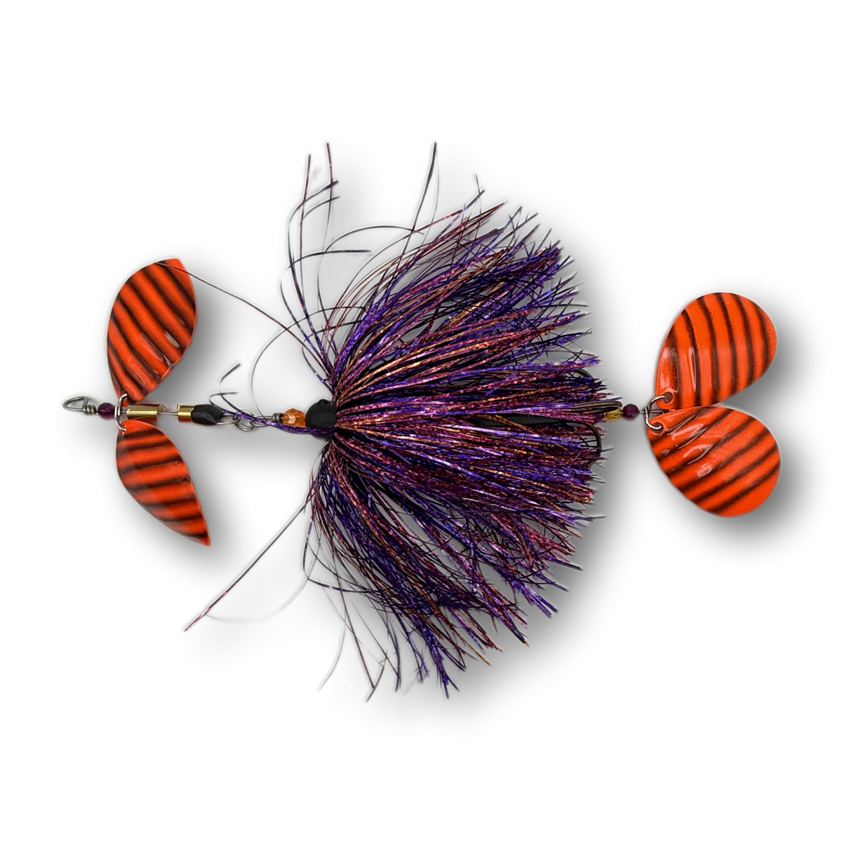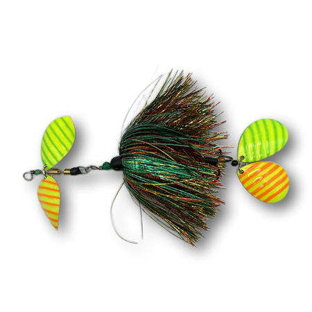 Discover the ultimate in musky fishing with the Musky Safari Double Bladed Jack Hammers, exclusively at Guide's Choice Pro Shop! Designed to deliver maximum flash and vibration, these powerful lures mimic the erratic movements of prey, enticing even the most cautious muskies. Featuring dual blades for enhanced spinning action and unmatched noise, the Jack Hammers create a chaotic water disturbance that draws attention from miles away. Built with durable, high-quality materials, they’re perfect for targeting muskies in a variety of conditions. Elevate your fishing game and land the trophy musky you’ve been dreaming of—trust the Musky Safari Double Bladed Jack Hammers to turn your day on the water into a success!