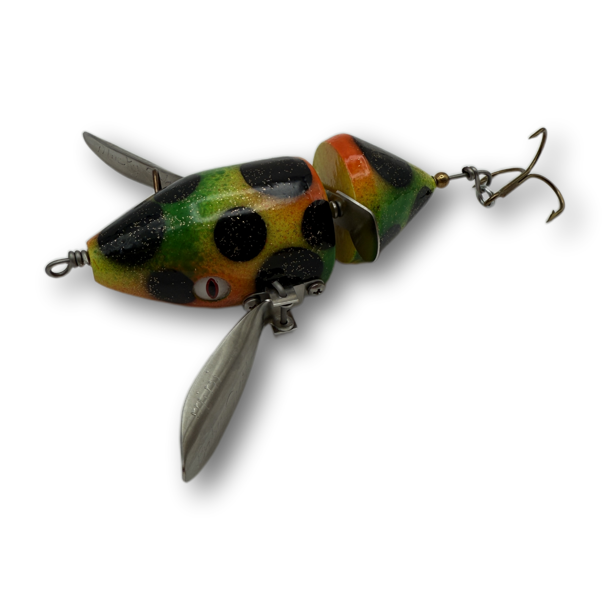 Musky Safari Mini Baby Spitzers: Unleash the Topwater Frenzy! Get ready to ignite the water with the Musky Safari Mini Baby Spitzers, the ultimate topwater lure designed to drive muskies wild! Handcrafted with precision by Musky Safari Tackle, this compact 5-inch, 3.1-ounce powerhouse delivers explosive action in a smaller package. Perfect for targeting aggressive muskies and pike, the Mini Baby Spitzers wiggle, roll, and churn with irresistible flair, whether you’re working it fast or slow. Its meticulously etched design and durable construction ensure it stands up to the fiercest predators. Cast it out, create a splash, and hold on tight—this lure is a musky magnet built for heart-pounding strikes